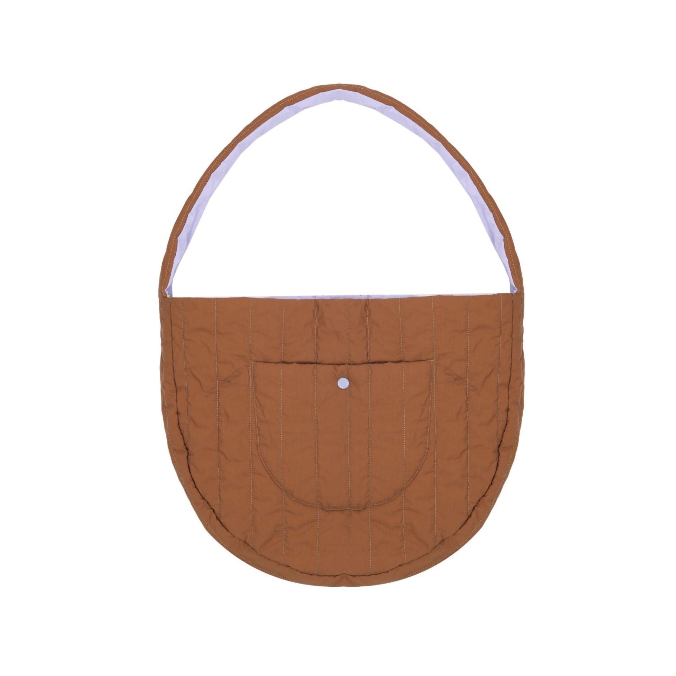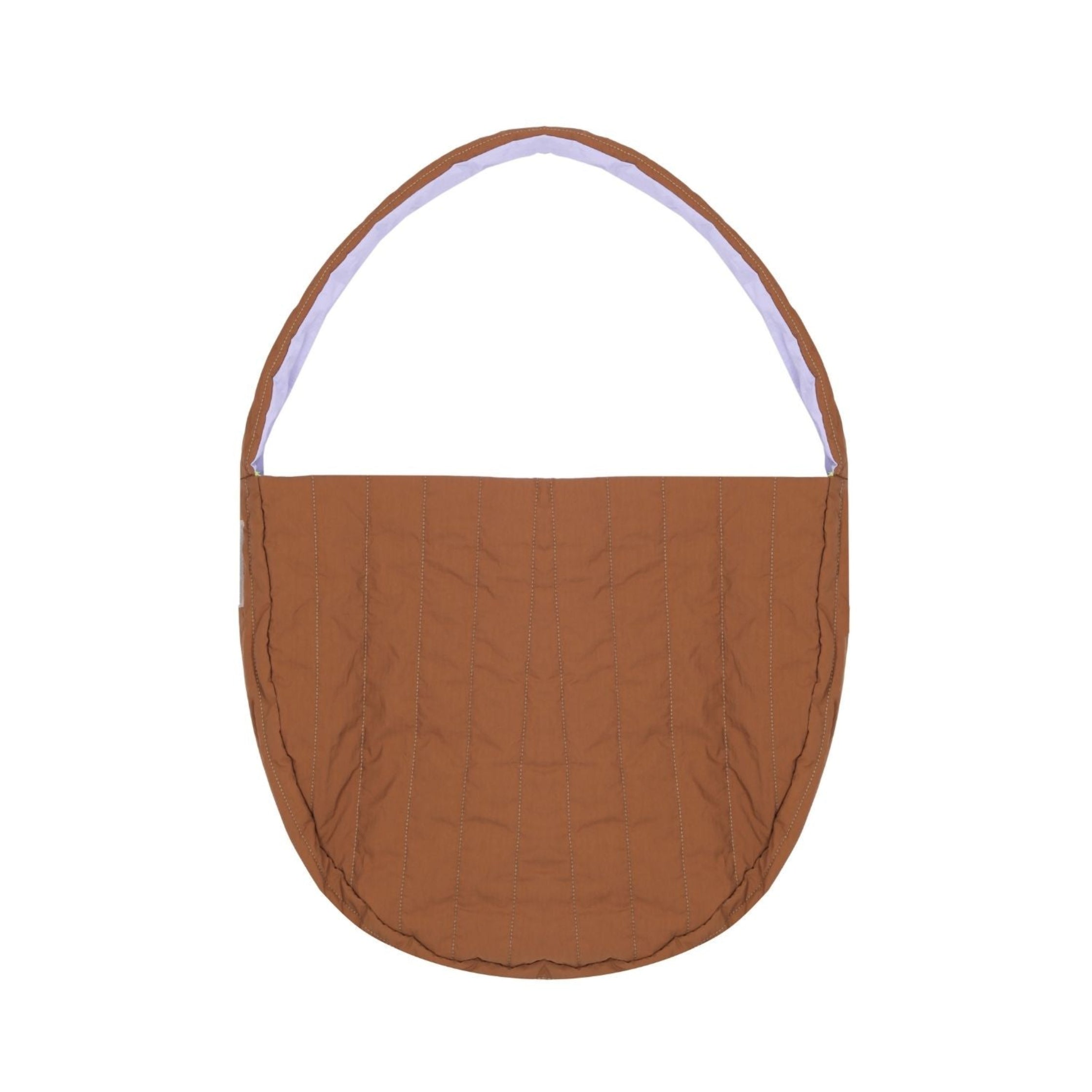 A bag in a half-moon shape with compartments, designed to be worn crossbody over your shoulder.