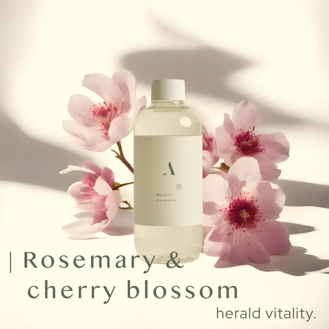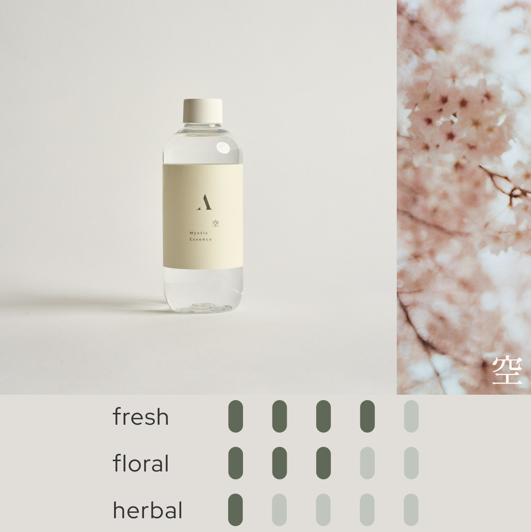 In Japanese culture, ‘空 (Kū)’ symbolises the boundless sky — where dreams soar and energy flows freely. The Mystic Essence 空 sakura reed diffuser captures this dynamic spirit. Inspired by Tokyo’s vibrant cityscape, this fragrance combines the delicate beauty of cherry blossoms with the freshness of rosemary.