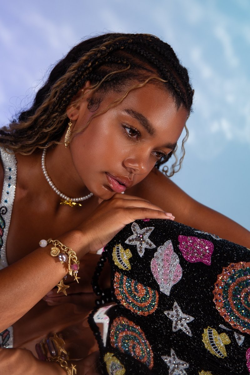 Designed to dazzle after dark, the New York Bag is a luxury hand-beaded shoulder bag crafted with sparkling seashell and star motifs in pastel tones. This statement evening clutch is the perfect party, cocktail or wedding accessory for women who love glamorous coastal-inspired resort-wear. Ideal for summer beach events, destination weddings, and vacation nights out, this handcrafted mini bag adds a bold and elegant touch to any look.