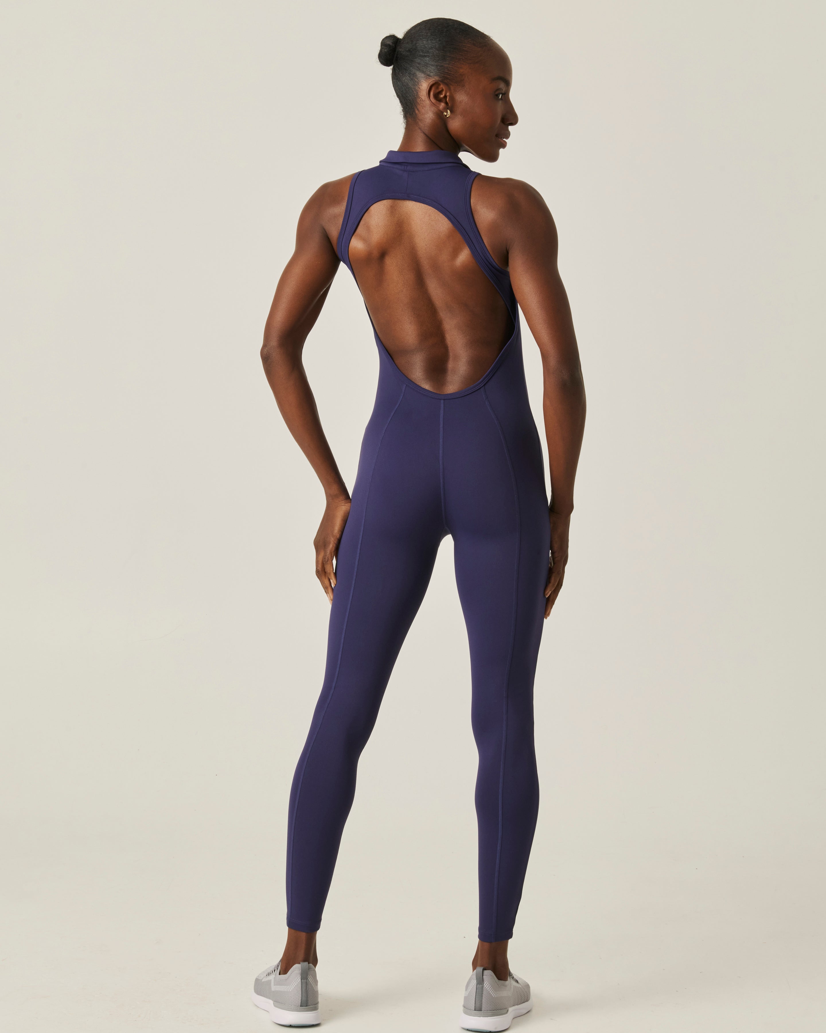 Sporty, compressive, and silky smooth — our coveted Nylon/Spandex blend returns in this full-length take on the iconic Next Level Onesie, a DL archived style. Finished with a collared neckline and a striking teardrop open-back for a bold yet polished look. Available in Black and Midnight Eclipse.