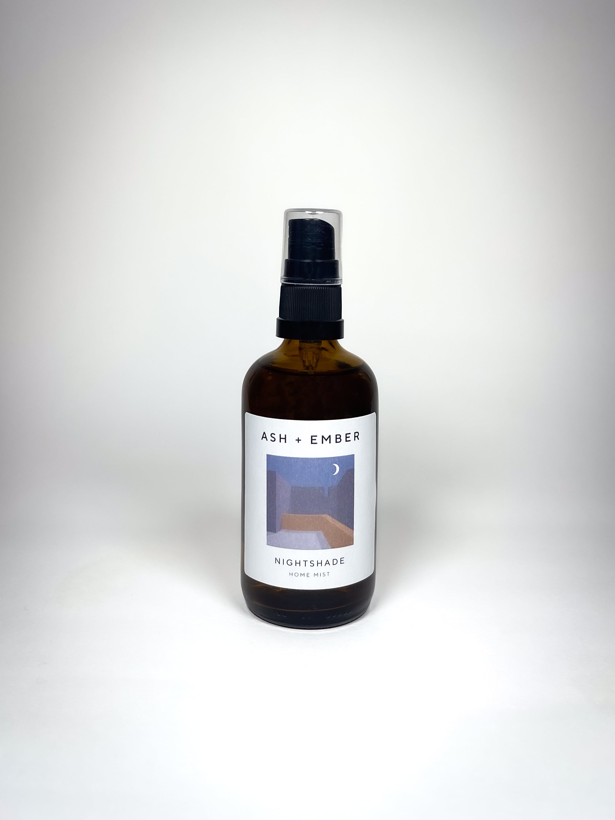 A special Home Mist using our signature Nightshade scent made with 100% natural fragrances. Essential oils including lavender, cedarwood and jasmin help calm the mind and prepare your room for a relaxing atmosphere. The oils have relaxing properties that help soothe anxiety, destress your mind and help combat insomnia.