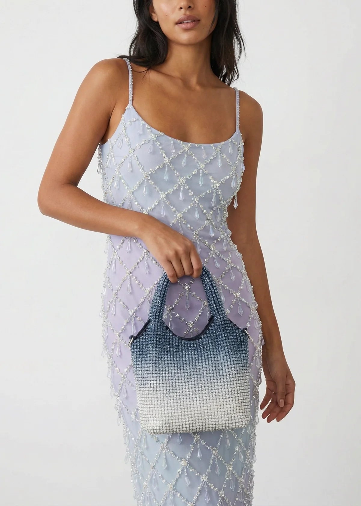 Elevate your resort wardrobe with the Oceanus Aura Fade Bag in Blue—a sophisticated accessory that seamlessly transitions from beach to evening.