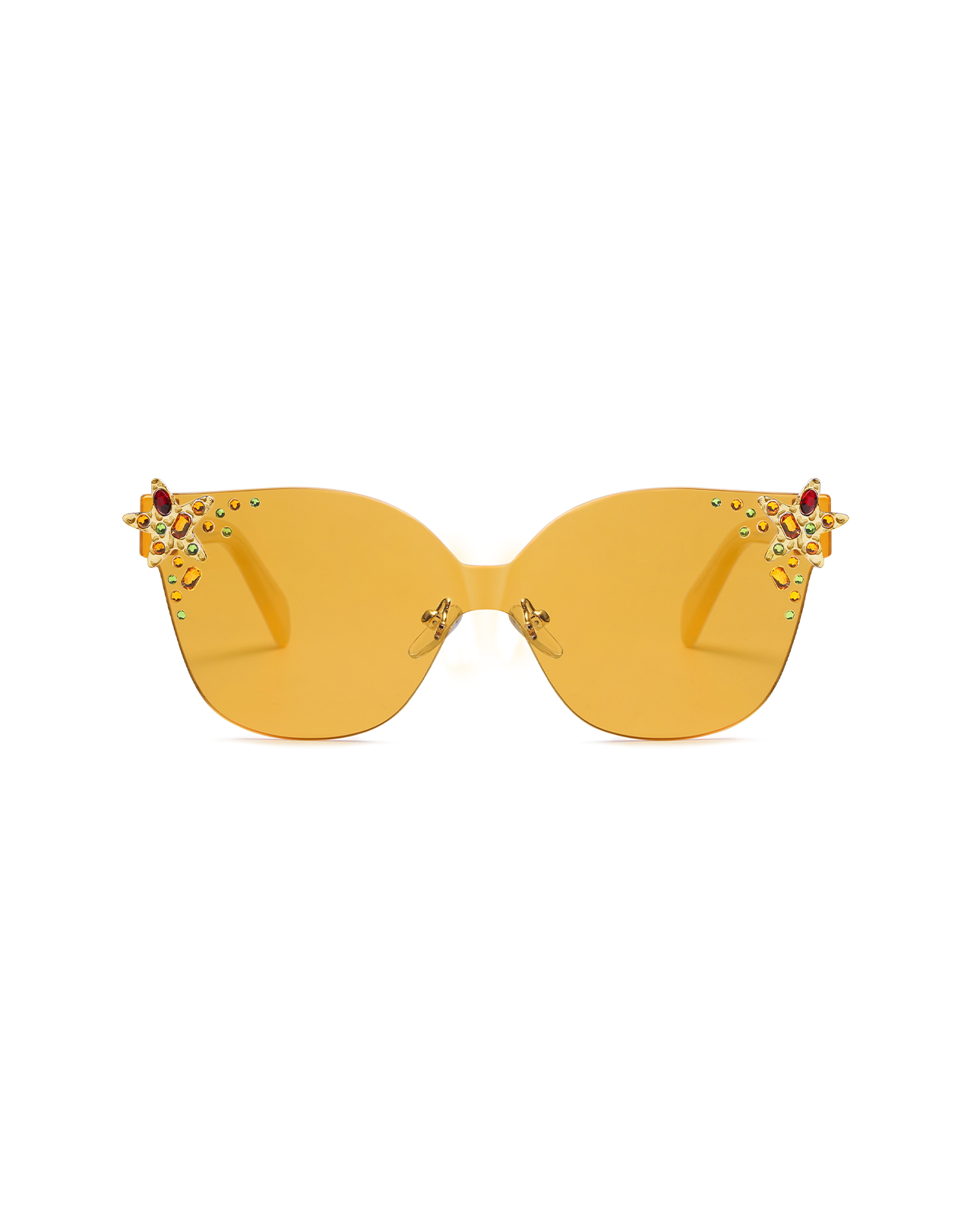 Boldly beachy meets glam — the Oceanus x SOJOS collab brings sun-soaked sparkle with starfish-studded frames and yellow tinted lenses. Dive into summer in style