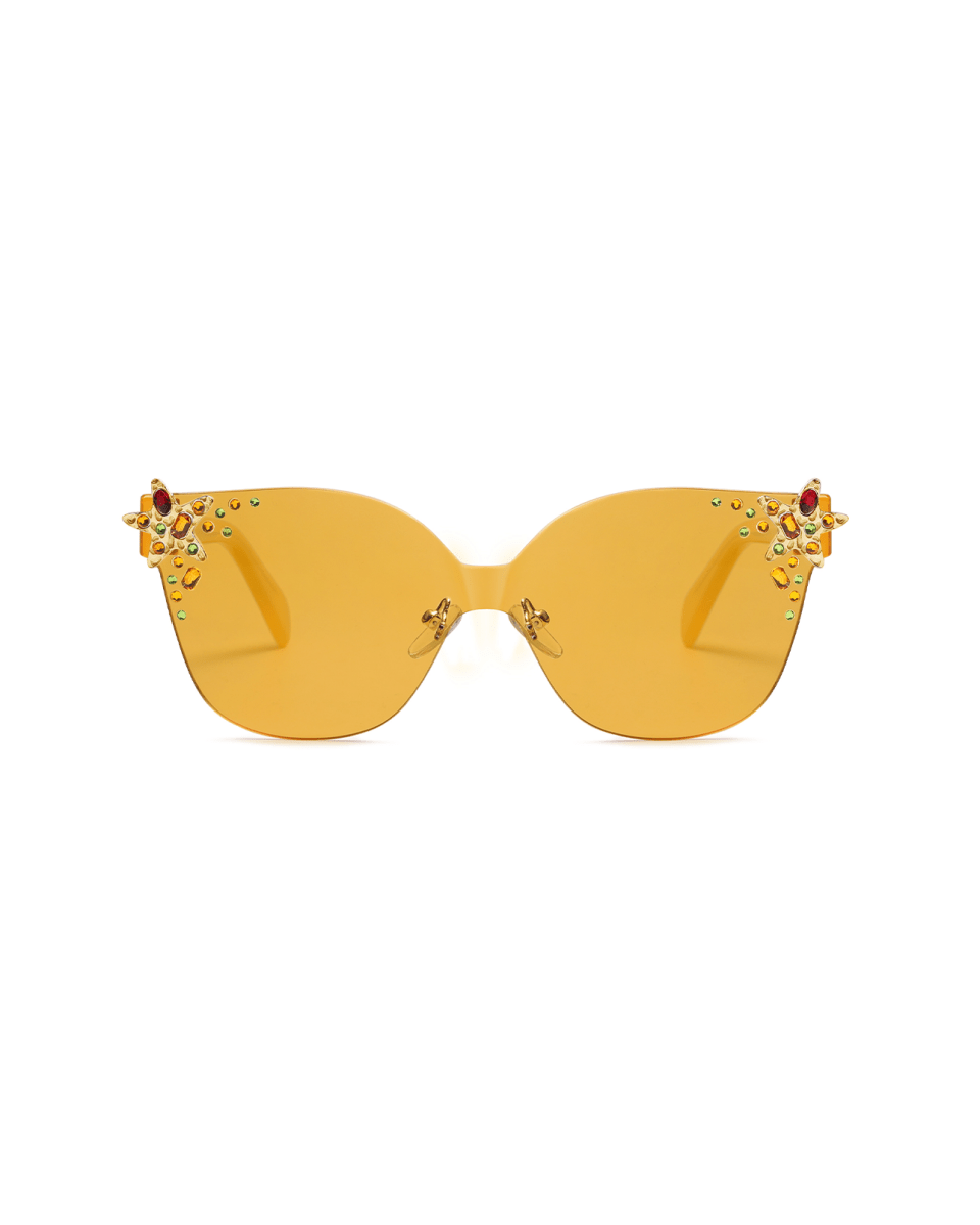 Shine bright with the Oceanus x SOJOS Glowheart Sunglasses in Yellow. Featuring sunny yellow tinted lenses, starfish metal embellishments, and hand-applied rhinestones, these statement sunglasses are perfect for pool parties, summer vacations, and bold street style.