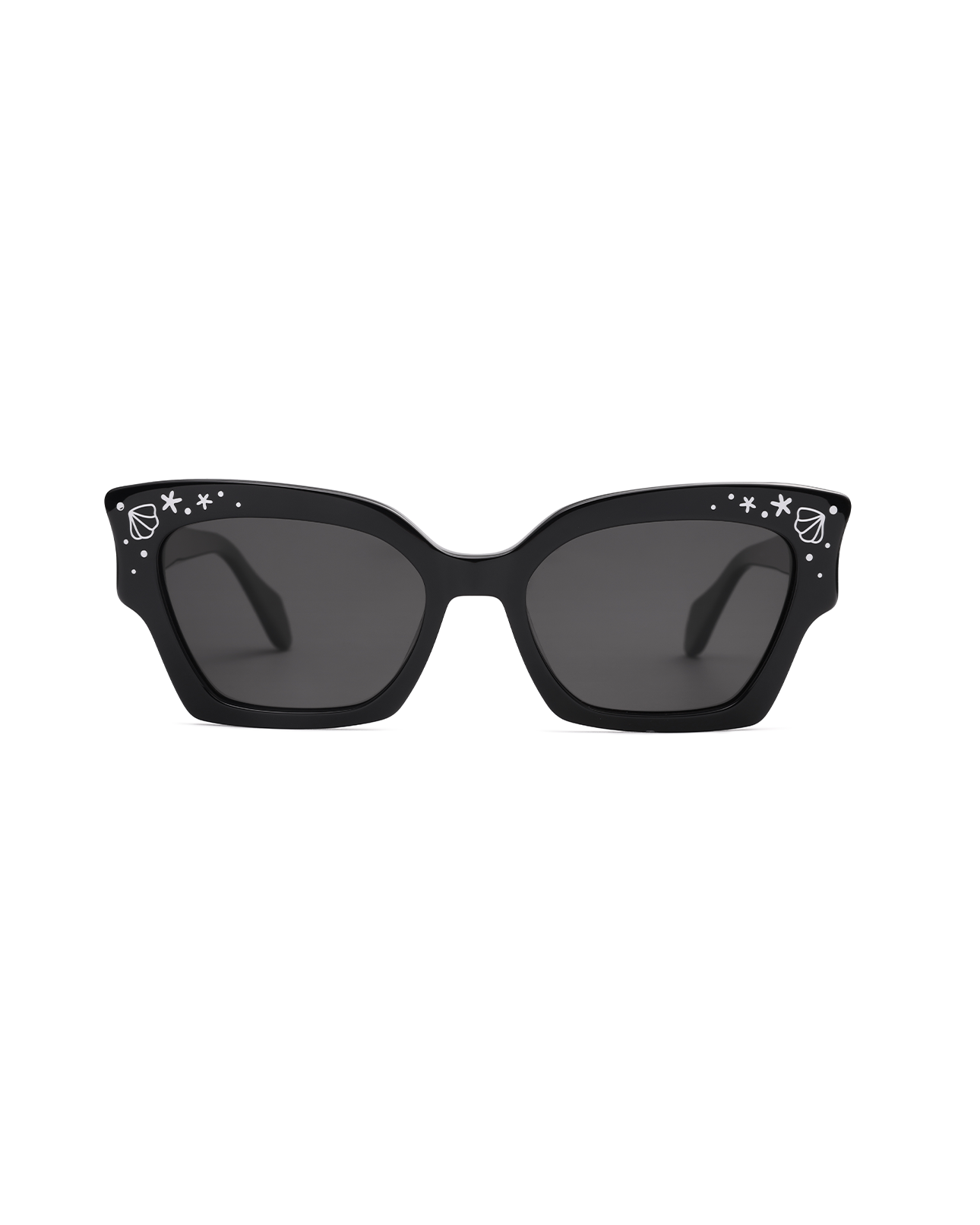 Classic noir with a splash of sea magic — the Oceanus x SOJOS collaboration turns timeless square frames into a cosmic beach fantasy with shell, star, and crystal accents.