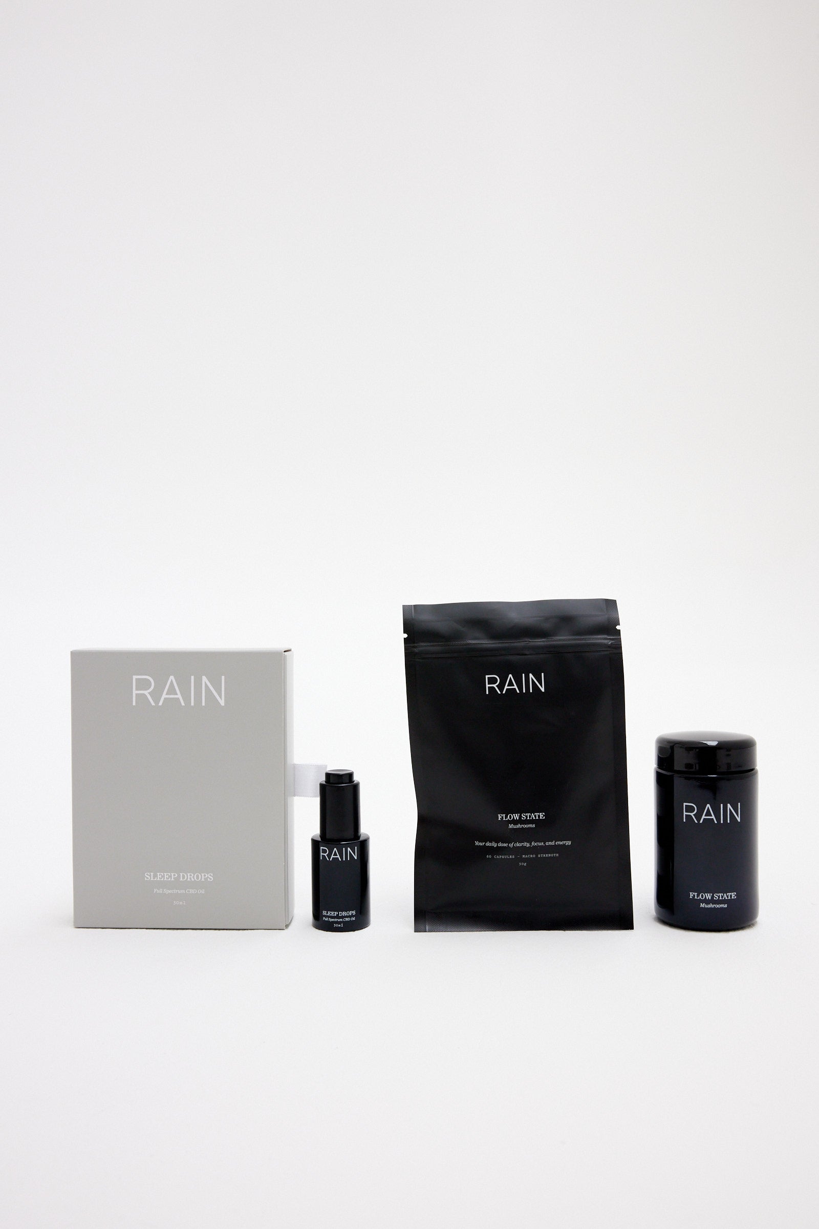 Our Optimal Day & Night Combo includes a Flow State Mushrooms sachet and jar and a new, limited product, Sleep Drops.
