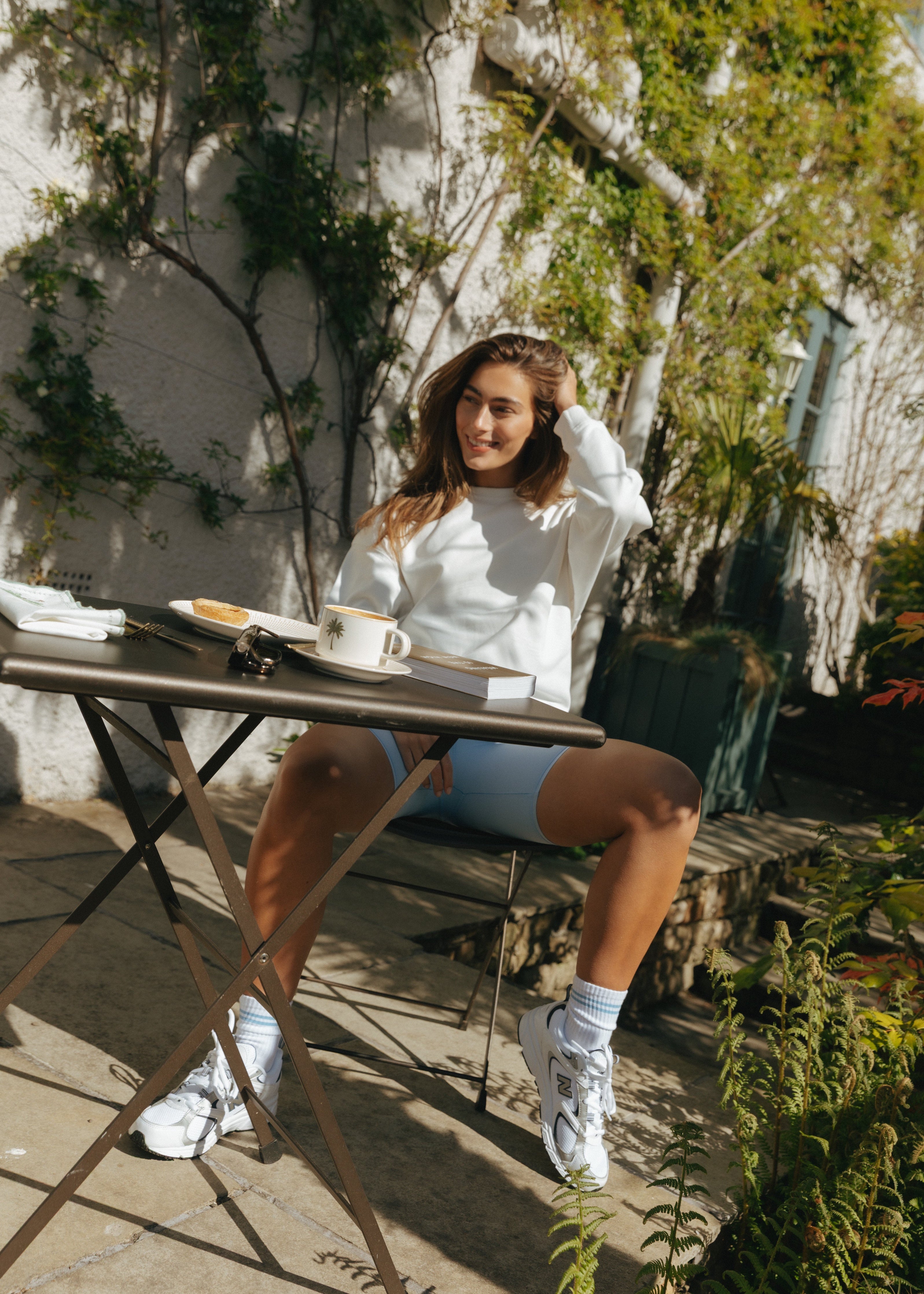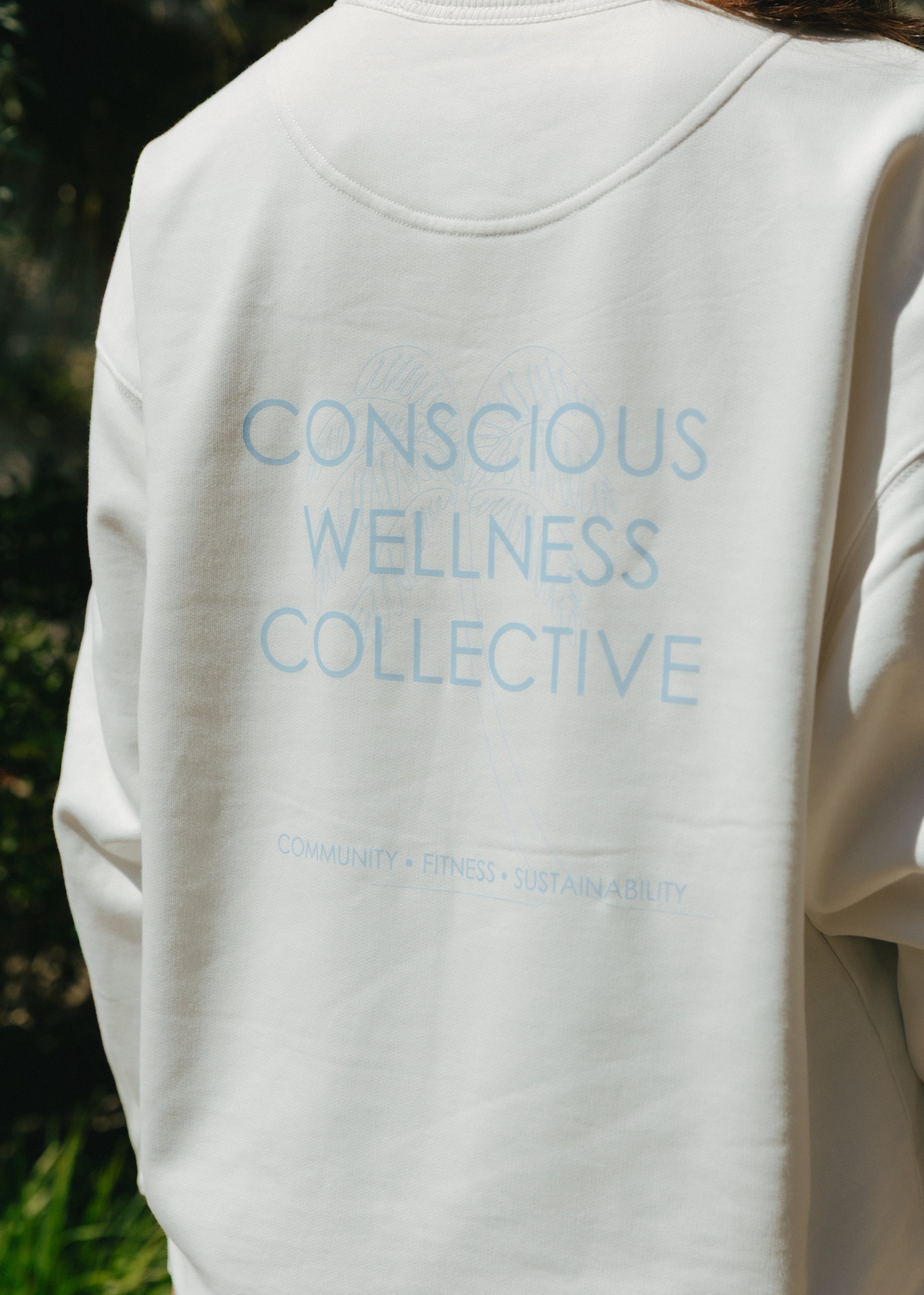 Crafted from 100% Organic Cotton, the Palmaire Off-White Sweatshirt offers a refined oversized fit with dropped shoulders and a classic crew neck. Featuring the Conscious Wellness Collective print on the back and subtle YANA embroidery on the sleeve, this statement piece blends comfort with thoughtful design—perfect for a fresh, sophisticated summer look.