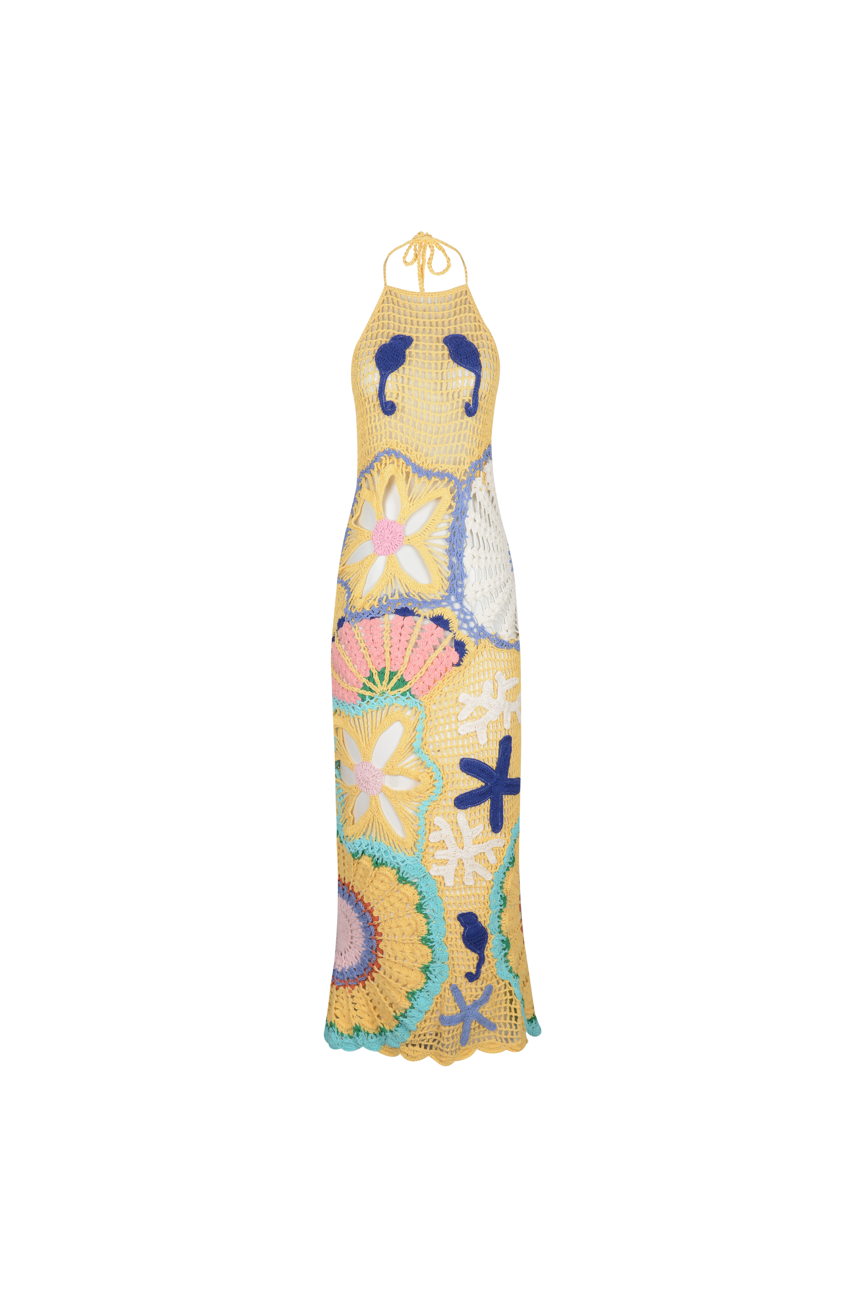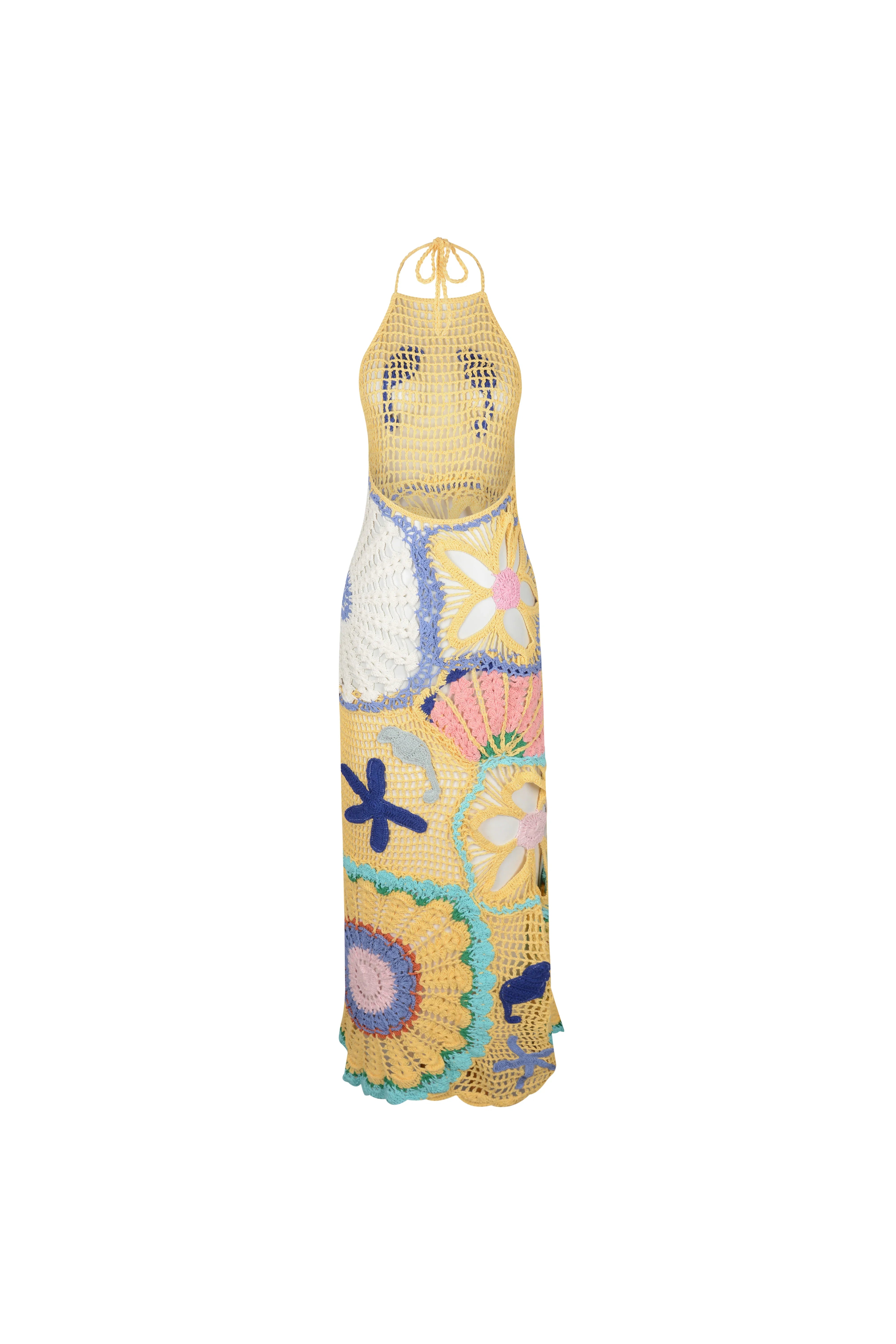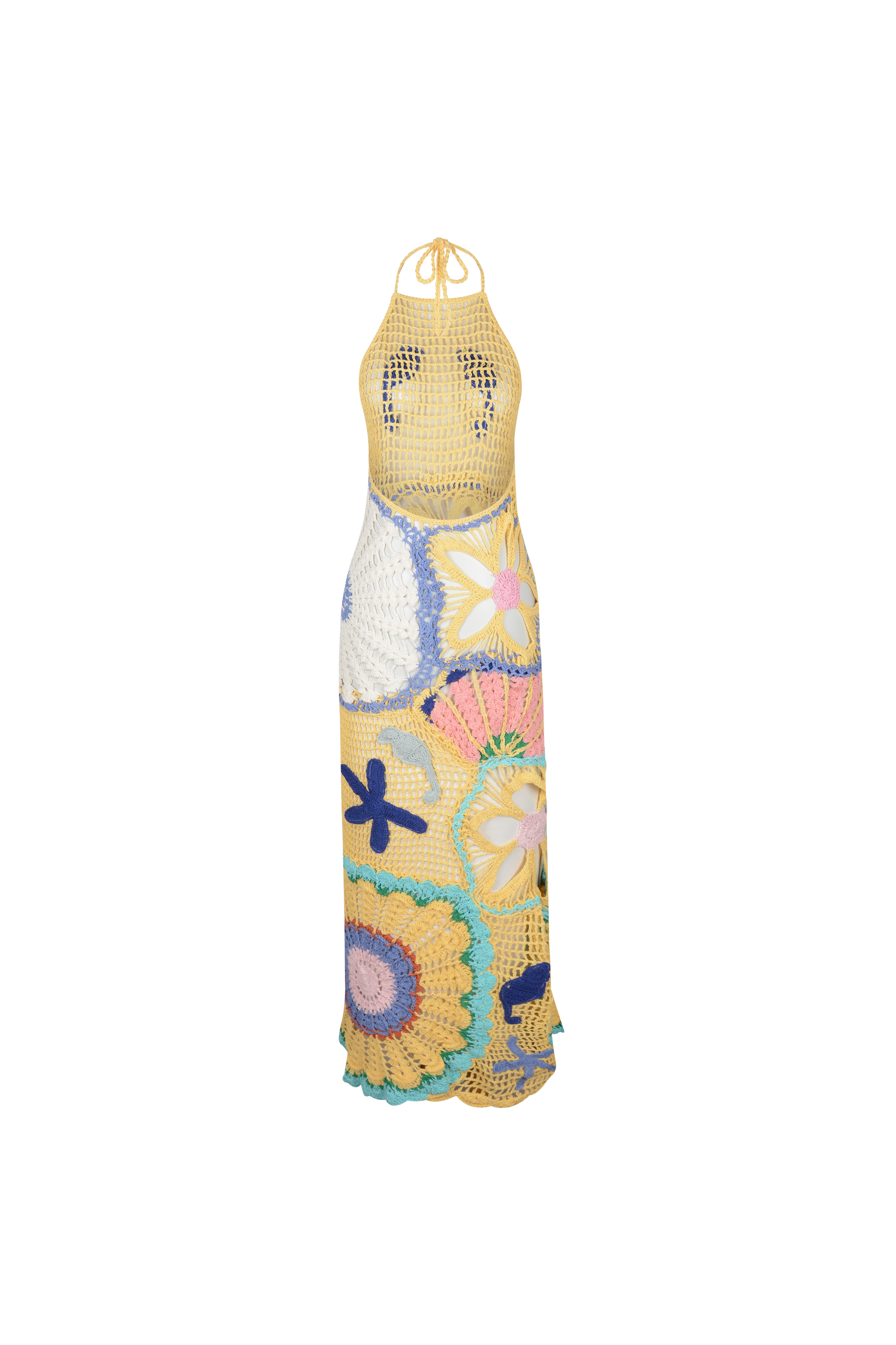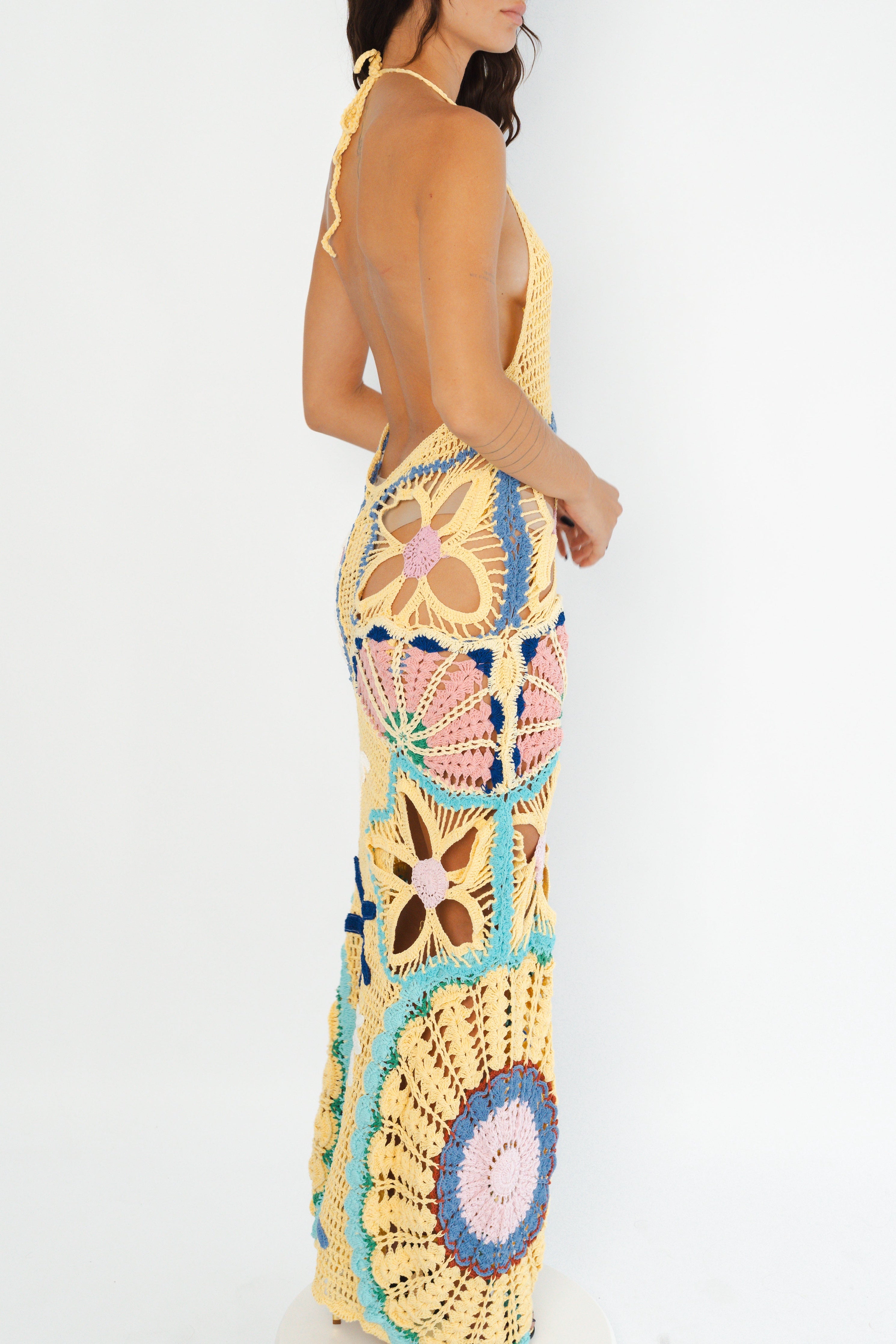 The Pearl multicolored crochet maxi dress includes an intricate crochet design features