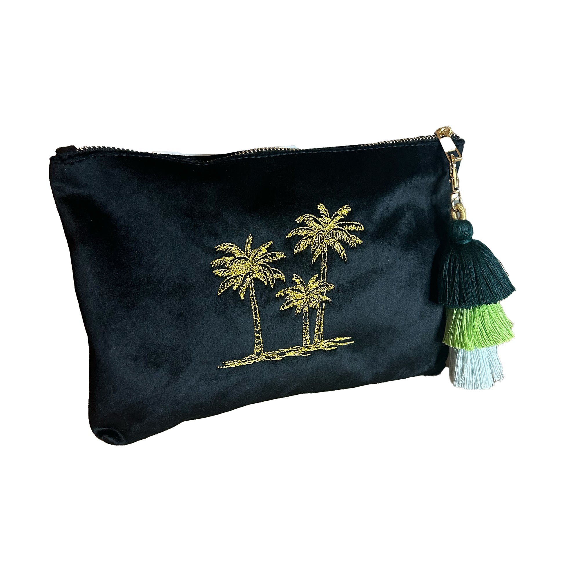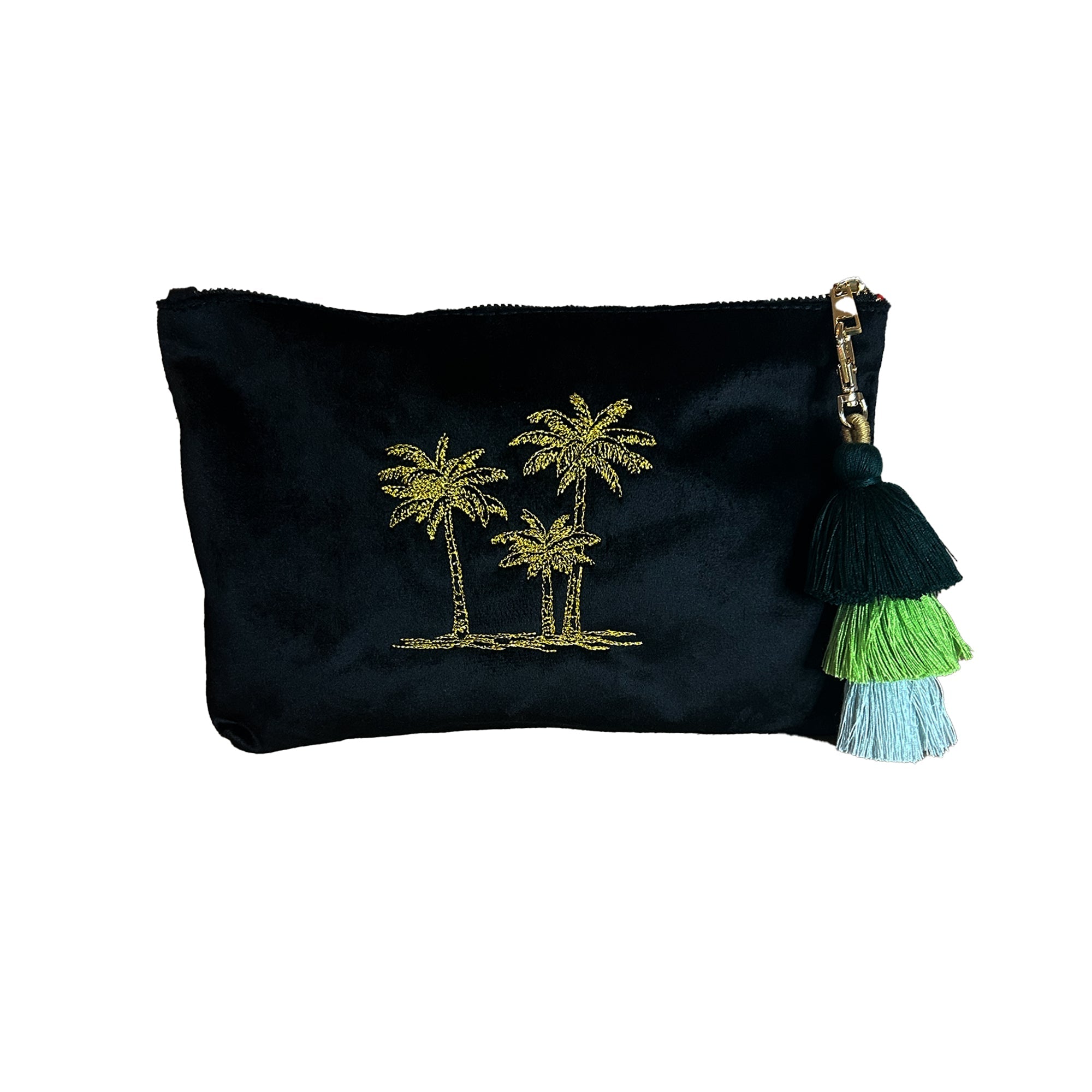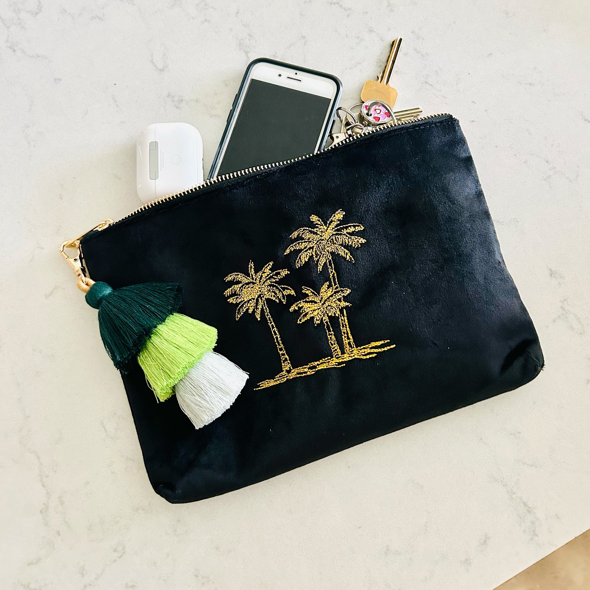 Give her a reason to smile with our Monogrammed Palm Tree Cosmetic Bag! This embroidered pouch is perfect for storing her favorite essentials and every day must-haves in style. Crafted with gold embroidery and personalized initials that can be added on the other side, it's the ideal gift for her birthday, bridal shower, or any special occasion.