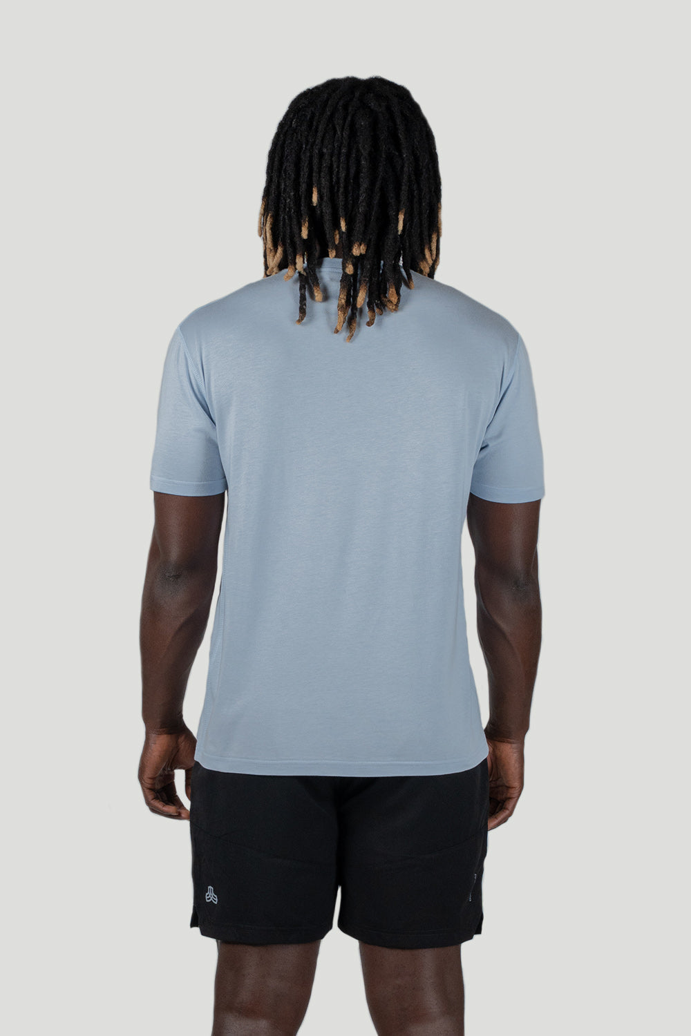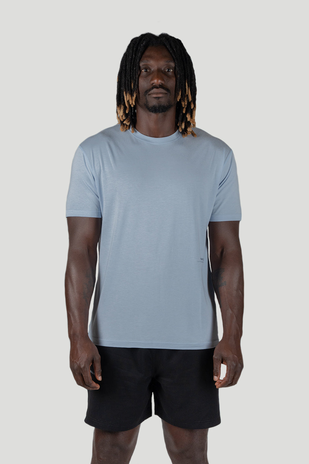 For the design, we’re introducing a new color: Arctic Blue. inspired by the cold hues of icy landscapes, with a slight warm undertone. The t-shirt has a regular fit, with accentuating, fitted sleeves for optimum movability. To finish off the design, we’ve added an iteration of our logo and material print on the front, emphasizing the origin of the product.
