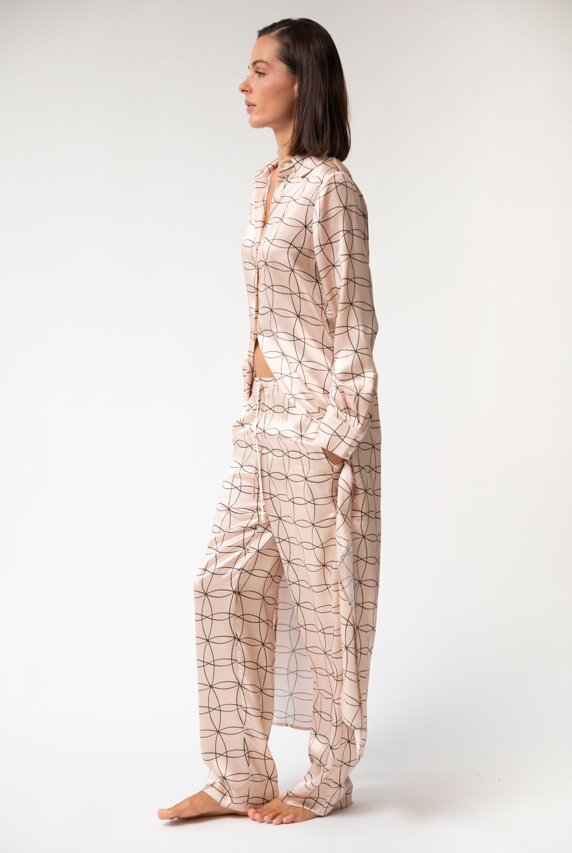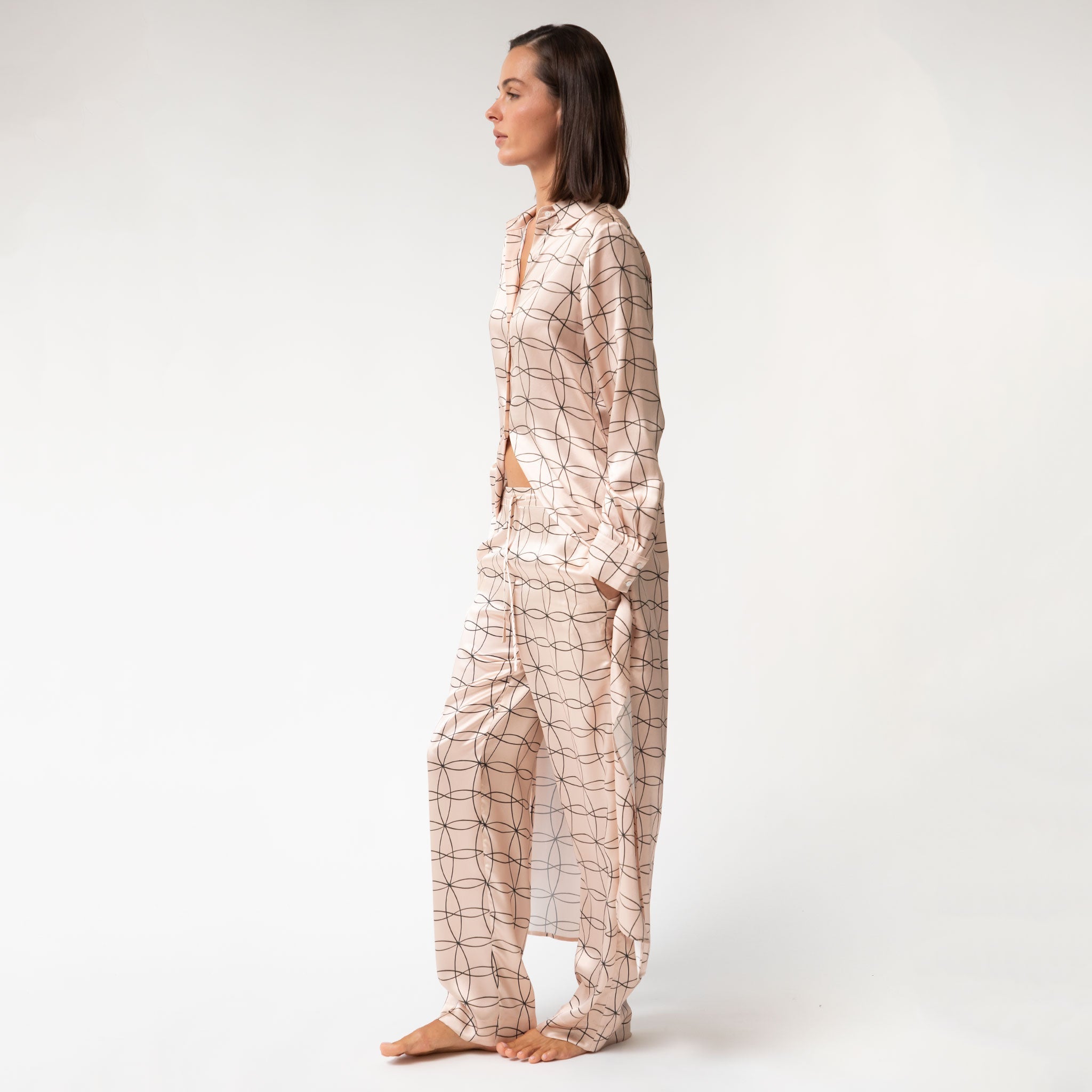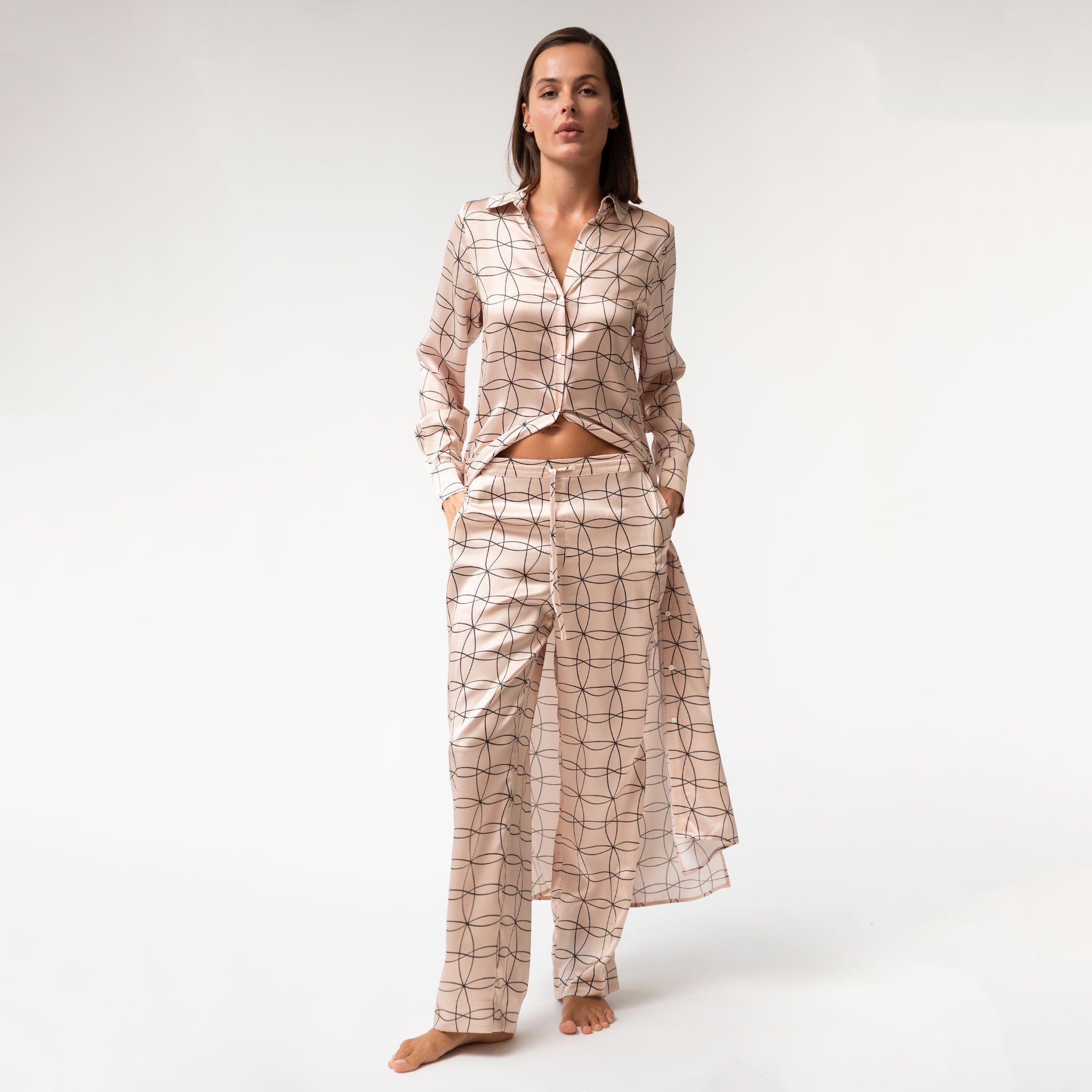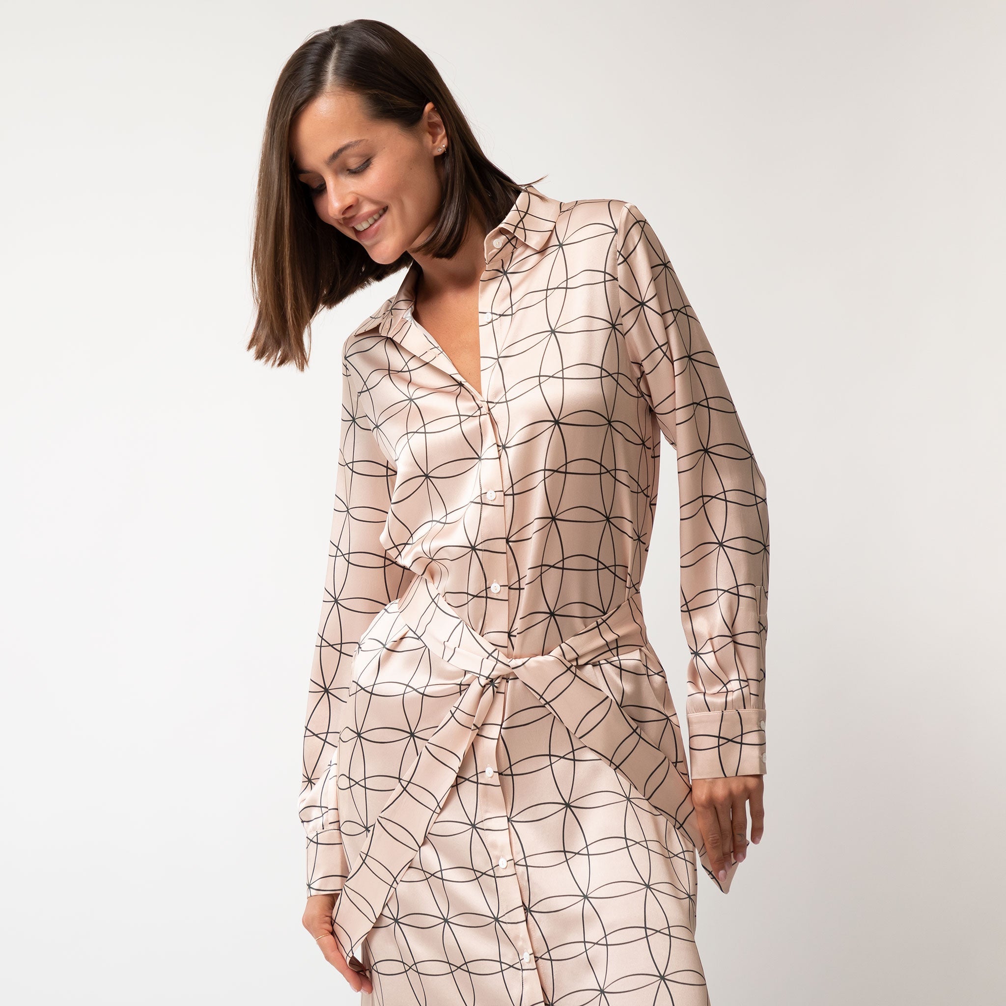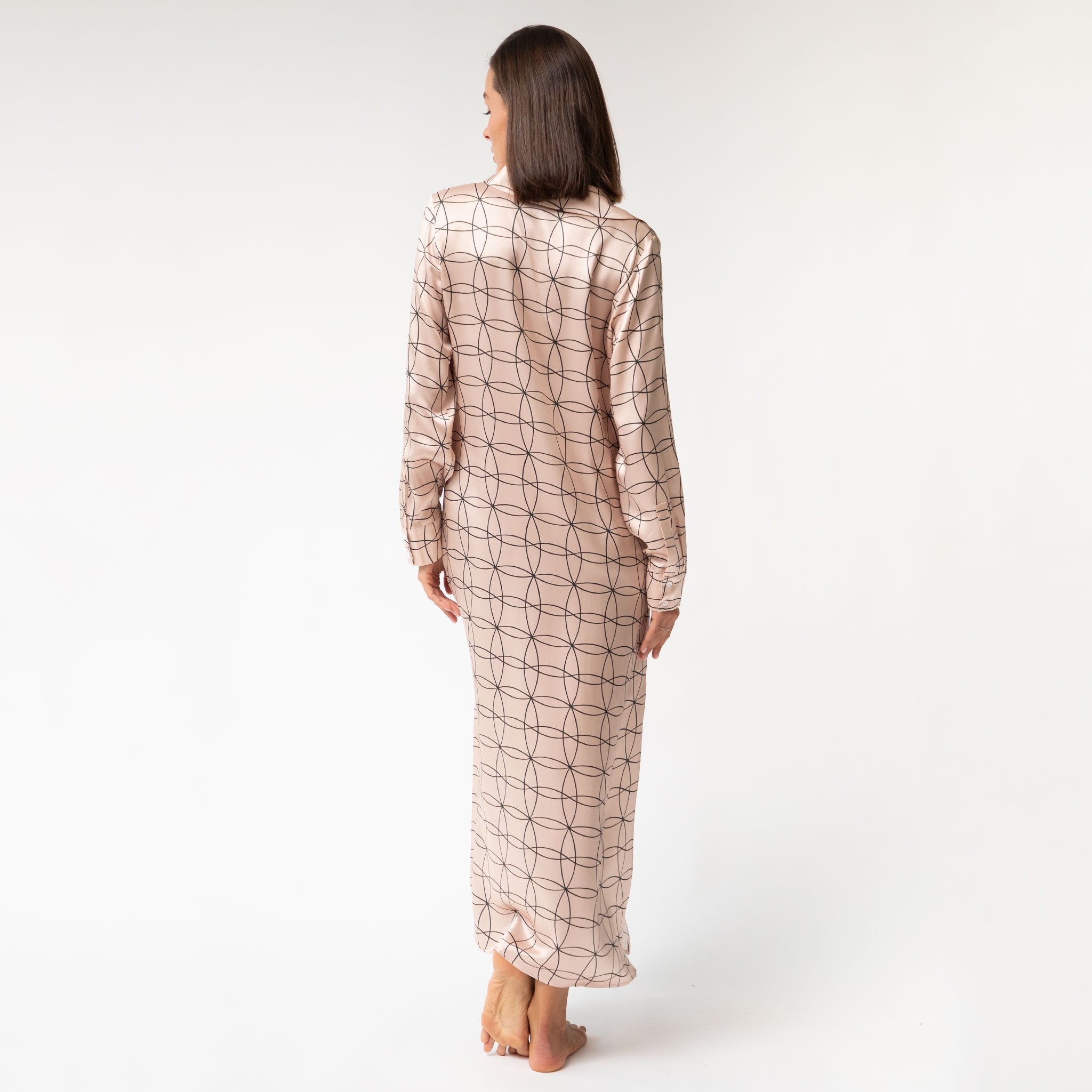 The Neo Geo Silk Long Shirt Dress is designed from 100% washable Mulberry Silk, offering both luxury and practicality. The print’s fixed placement ensures a consistent and striking design, while the button-down front provides a touch of timeless elegance and comfort. Designed for a slim fit, if you prefer a looser fit, consider sizing up.
