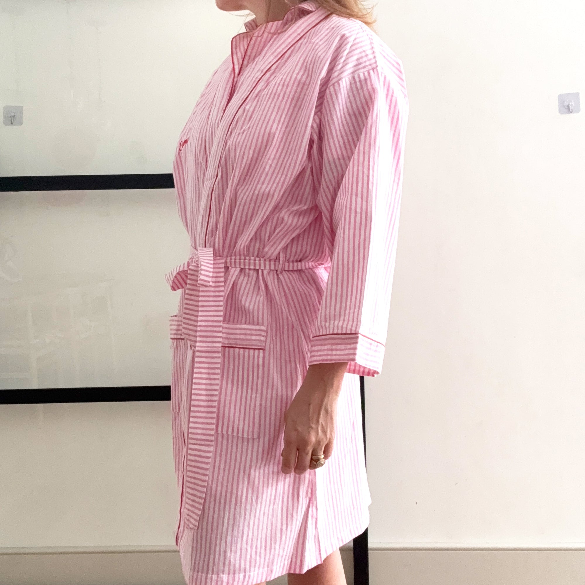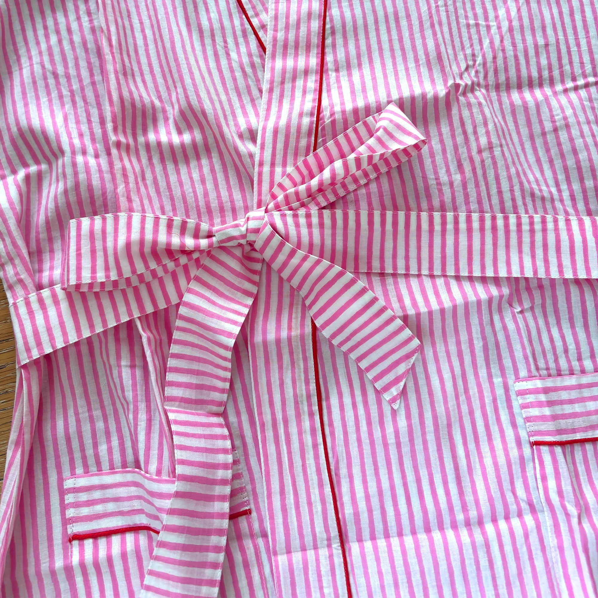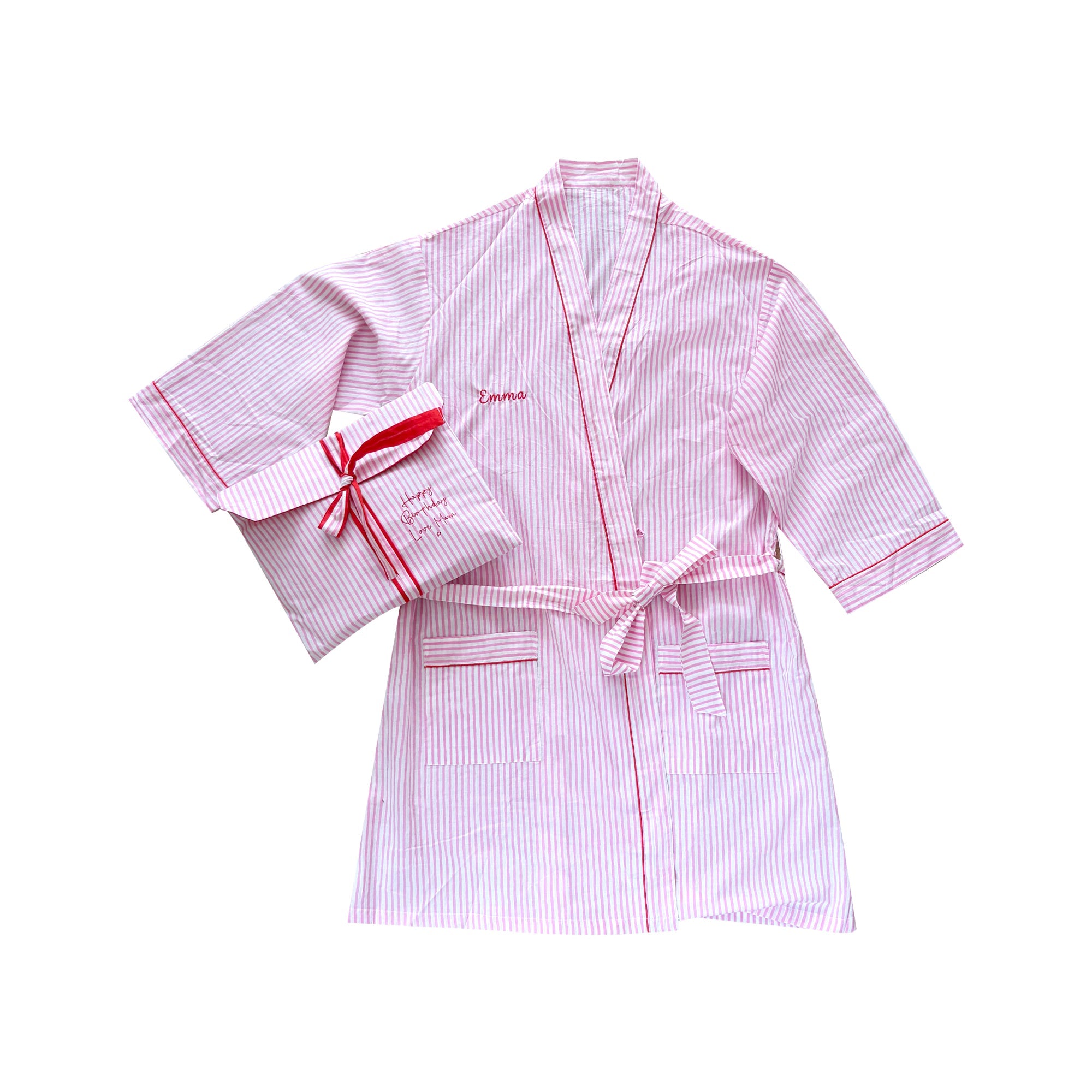 Pink Stripe Kimono Robe Bridesmaid Stripe Pyjamas Set, Stripe gown Bridesmaid, Bridesmaid PJs Cotton,