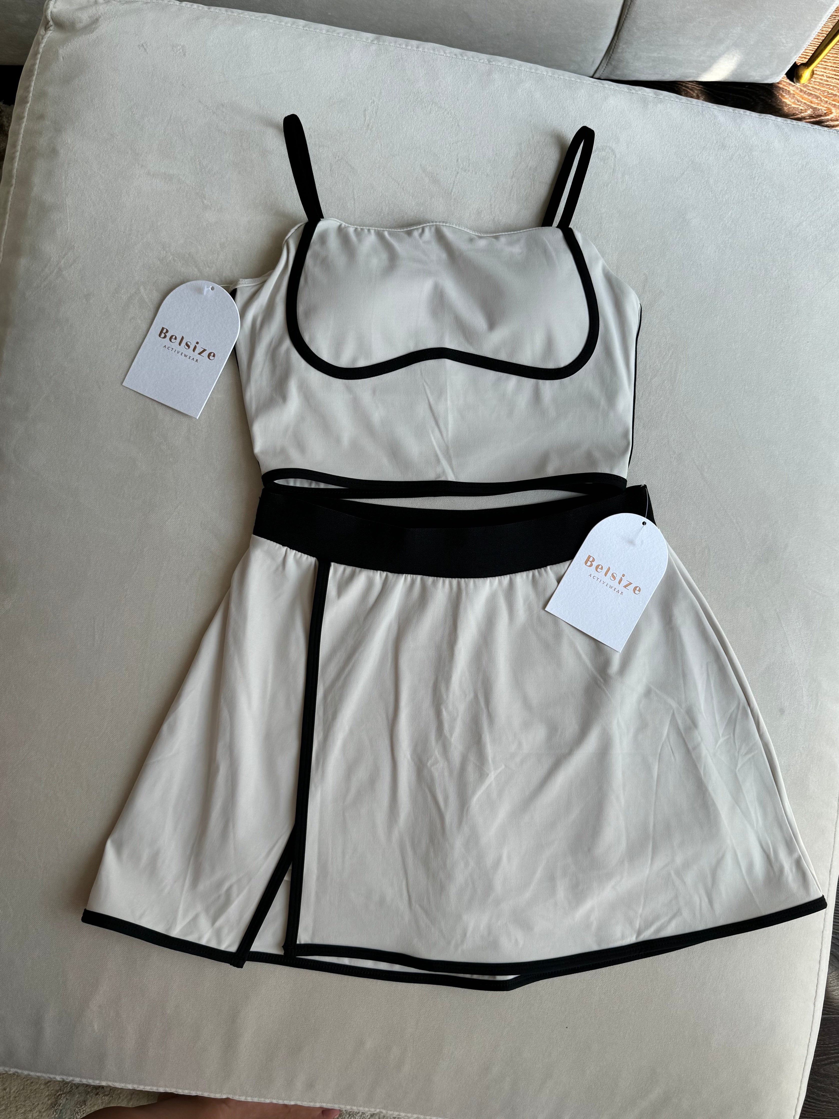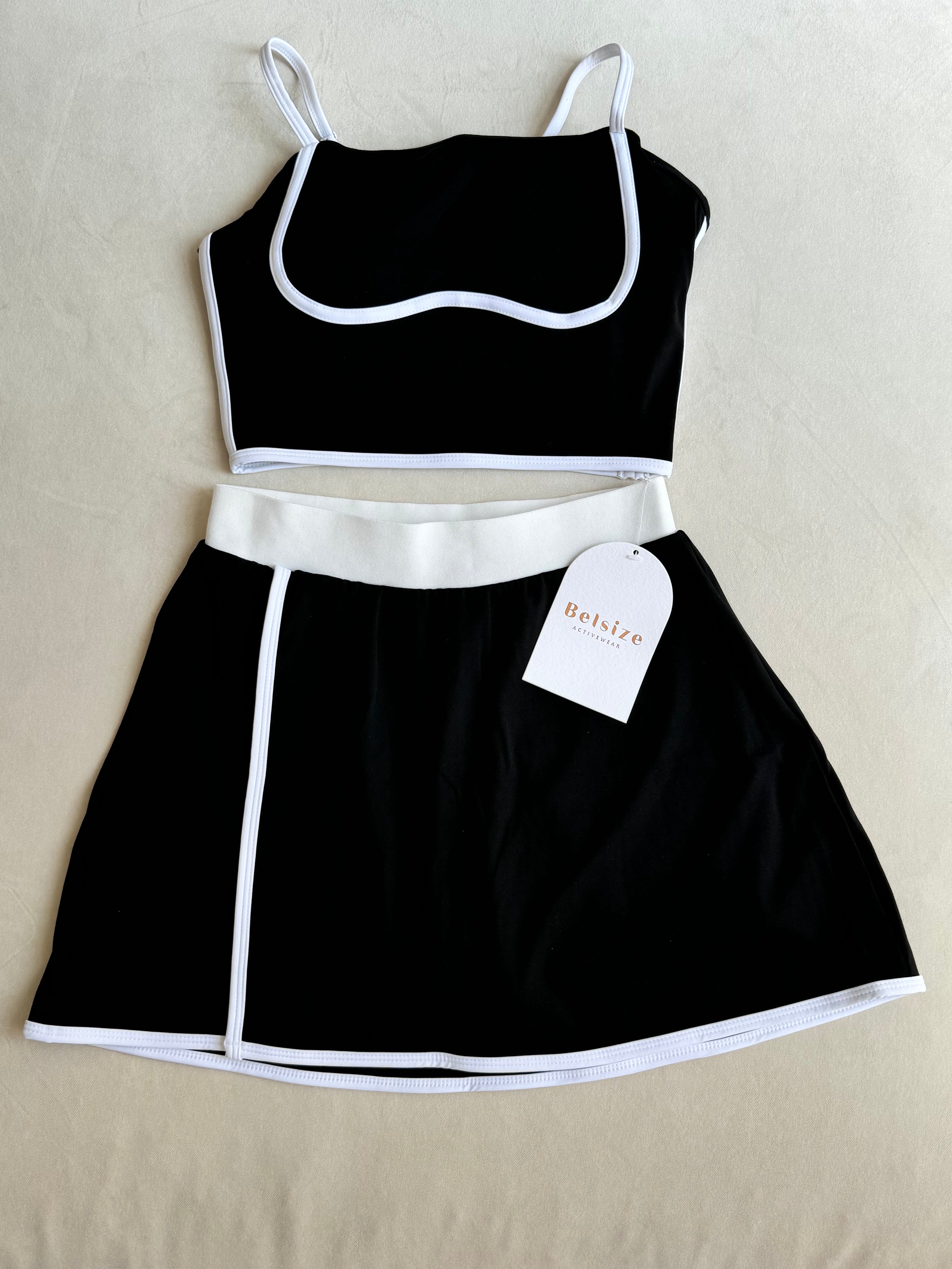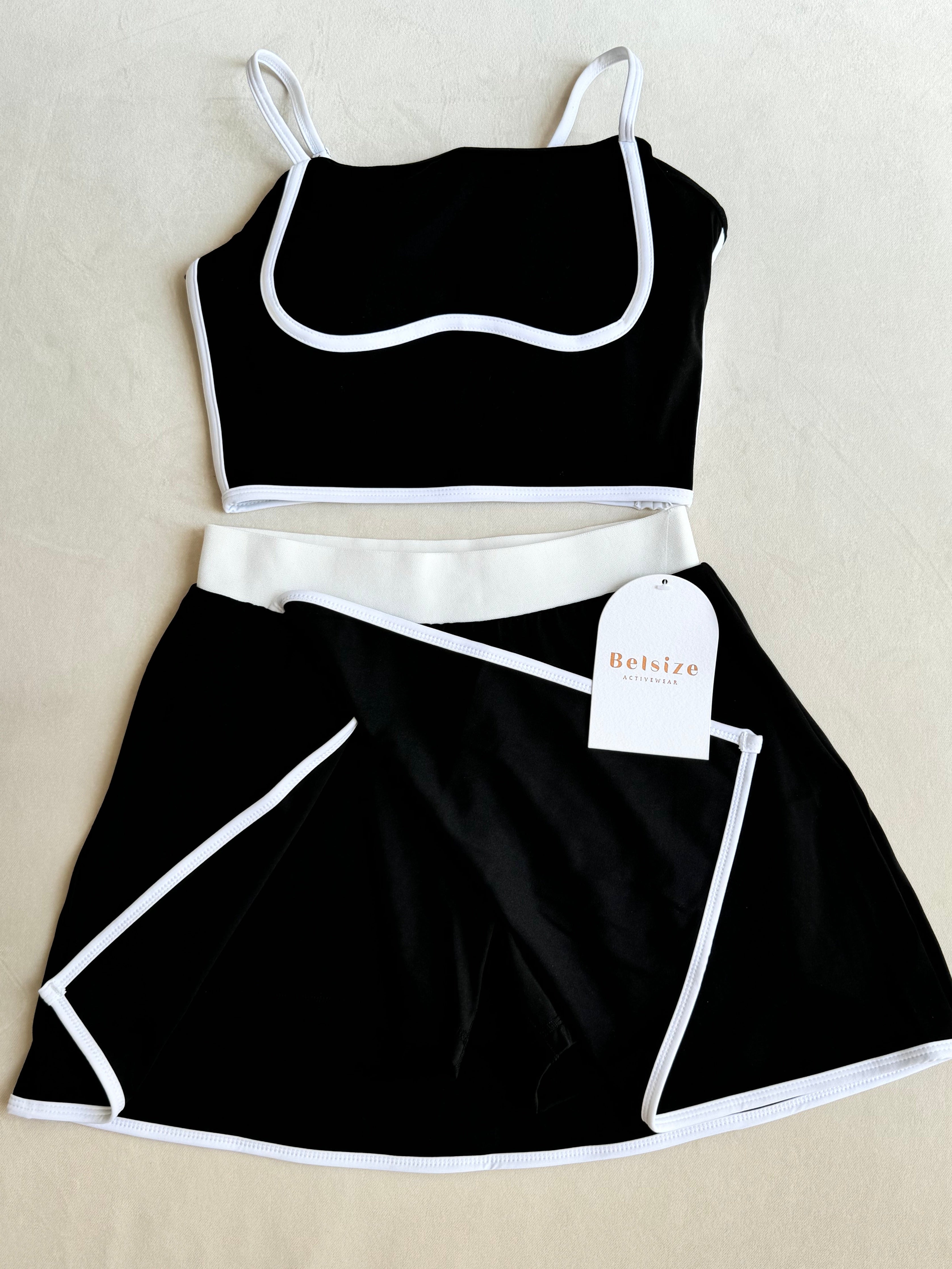 •The matching skirt provides a chic and comfortable option for any holiday or sports activity. Elevate your style and elevate your confidence with this elegant set.