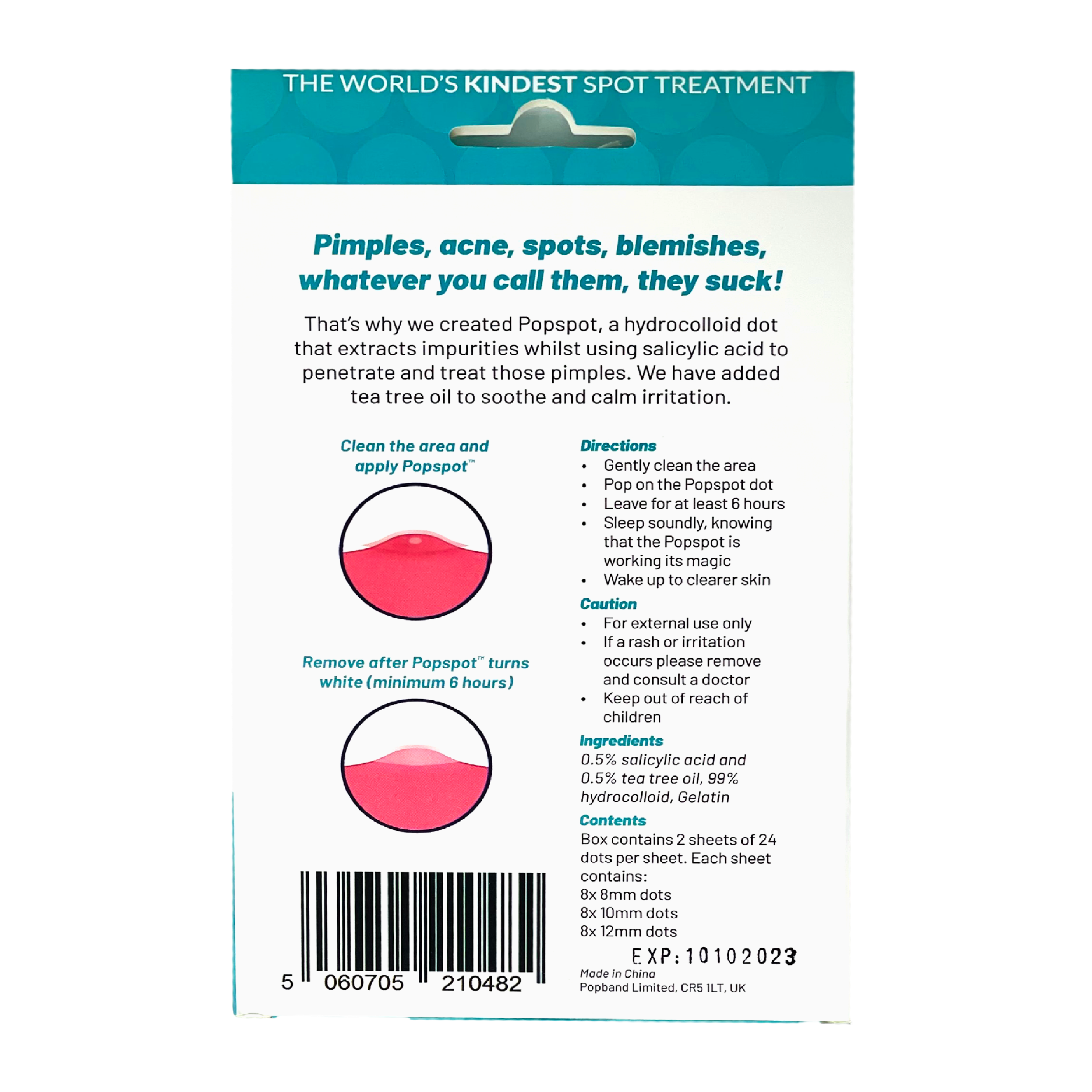 Hydrocolloid: This ingredient creates a moist environment that helps speed up the healing process while drawing out impurities from the pimple. Hydrocolloid patches are known for their ability to absorb excess fluid, making them ideal for treating spots while keeping the surrounding skin hydrated and protected.
