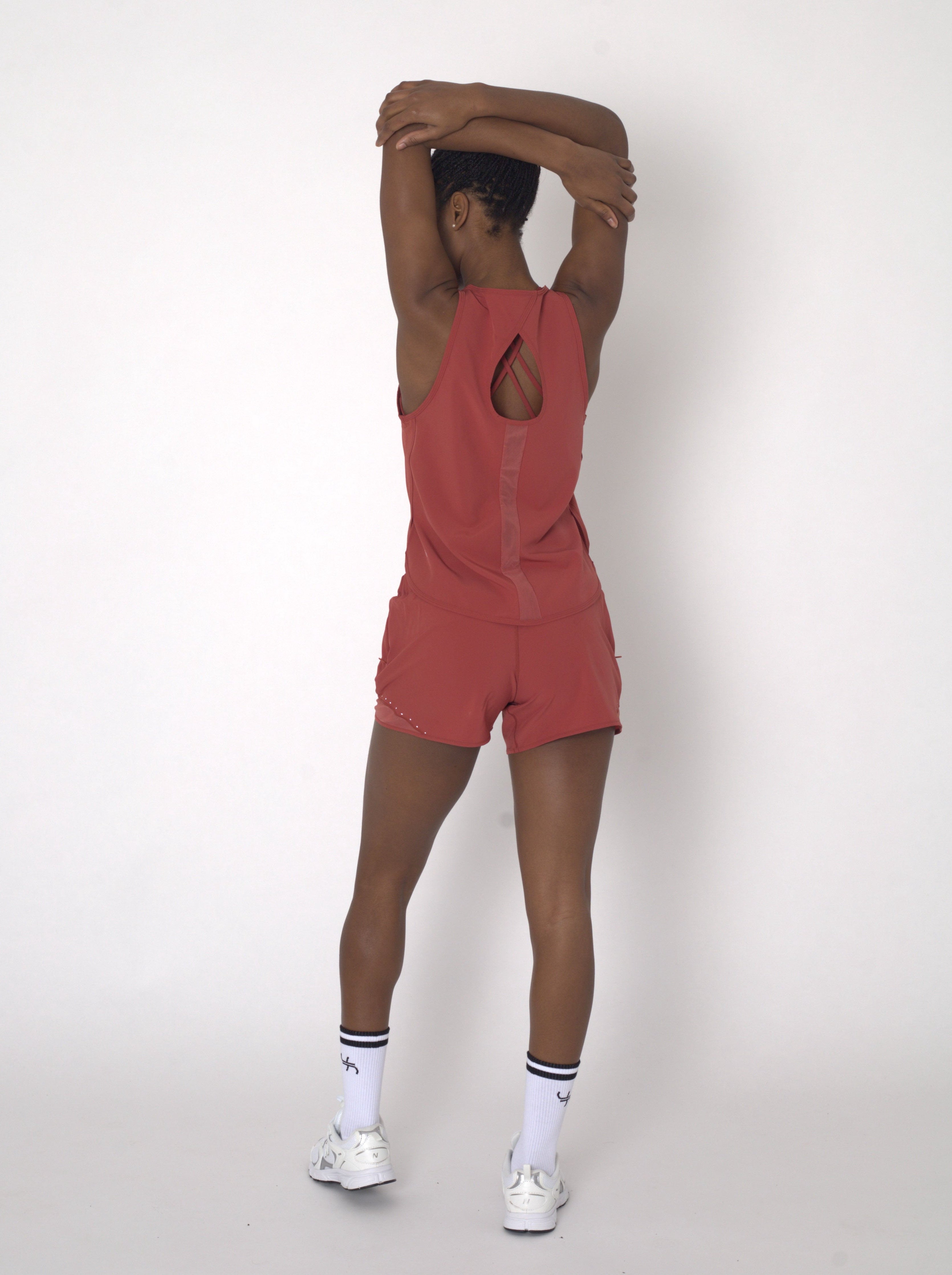 Stay cool, comfortable, and effortlessly stylish with the POWERFLOW High-Rise Running Shorts in Burnt Orange, made to empower every stride.