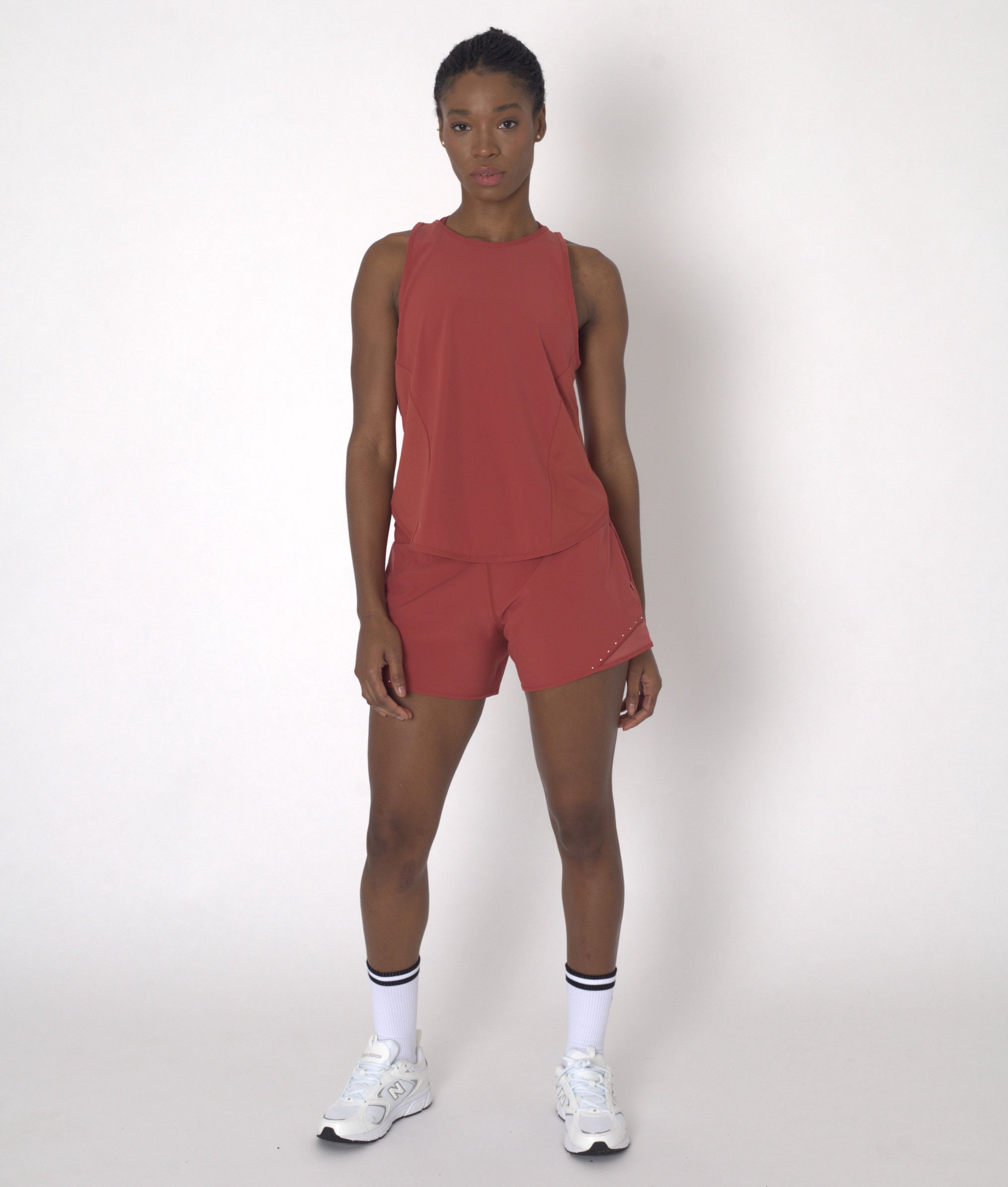 The POWERFLOW High-Rise Running Shorts in Burnt Orange are crafted to combine style, comfort, and performance seamlessly. Made from a sustainable blend of regenerated polyester and elastane, these shorts offer a breathable, lightweight feel that keeps you cool and comfortable on every run. Designed with a high-rise waist for a supportive and flattering fit, these shorts provide the coverage and confidence you need to perform at your best.