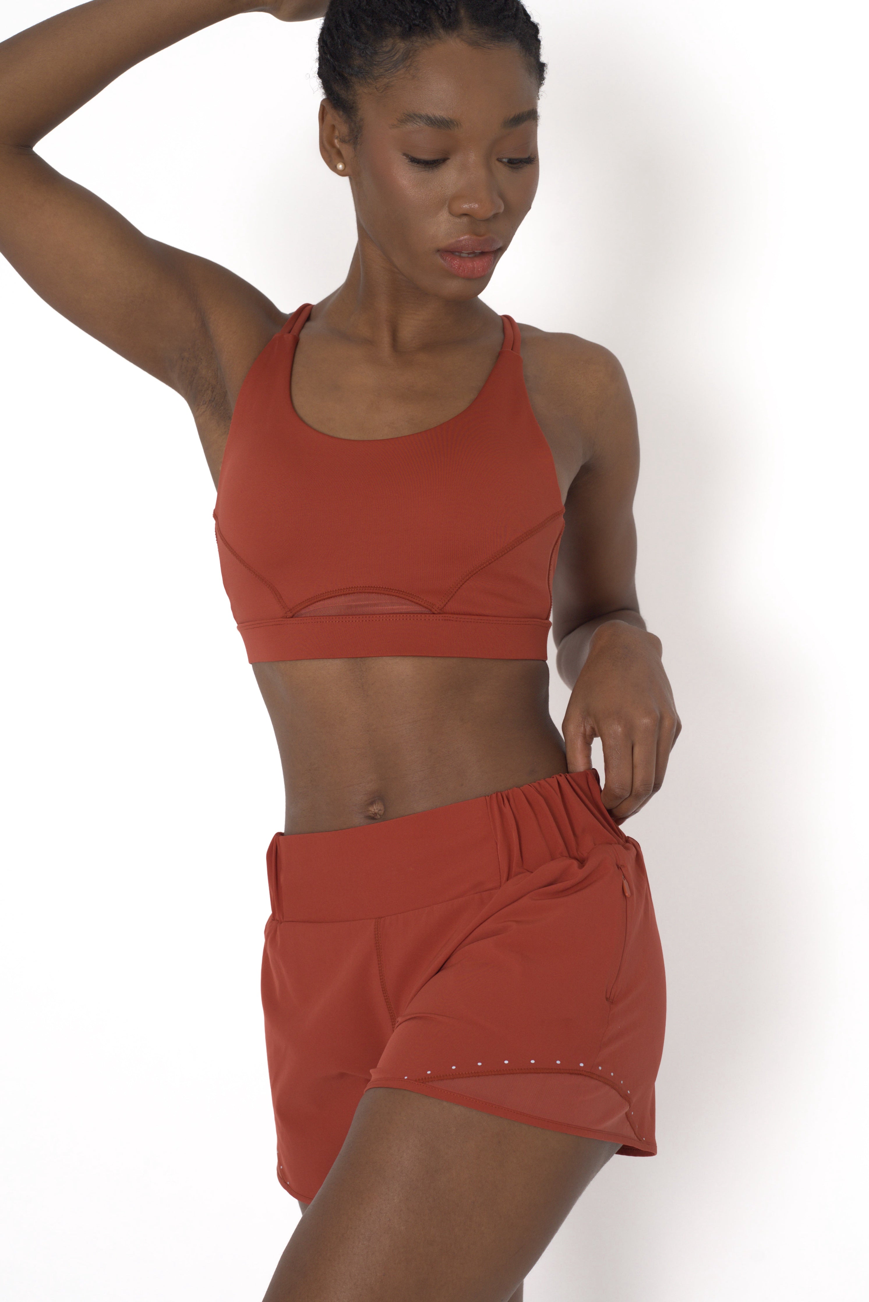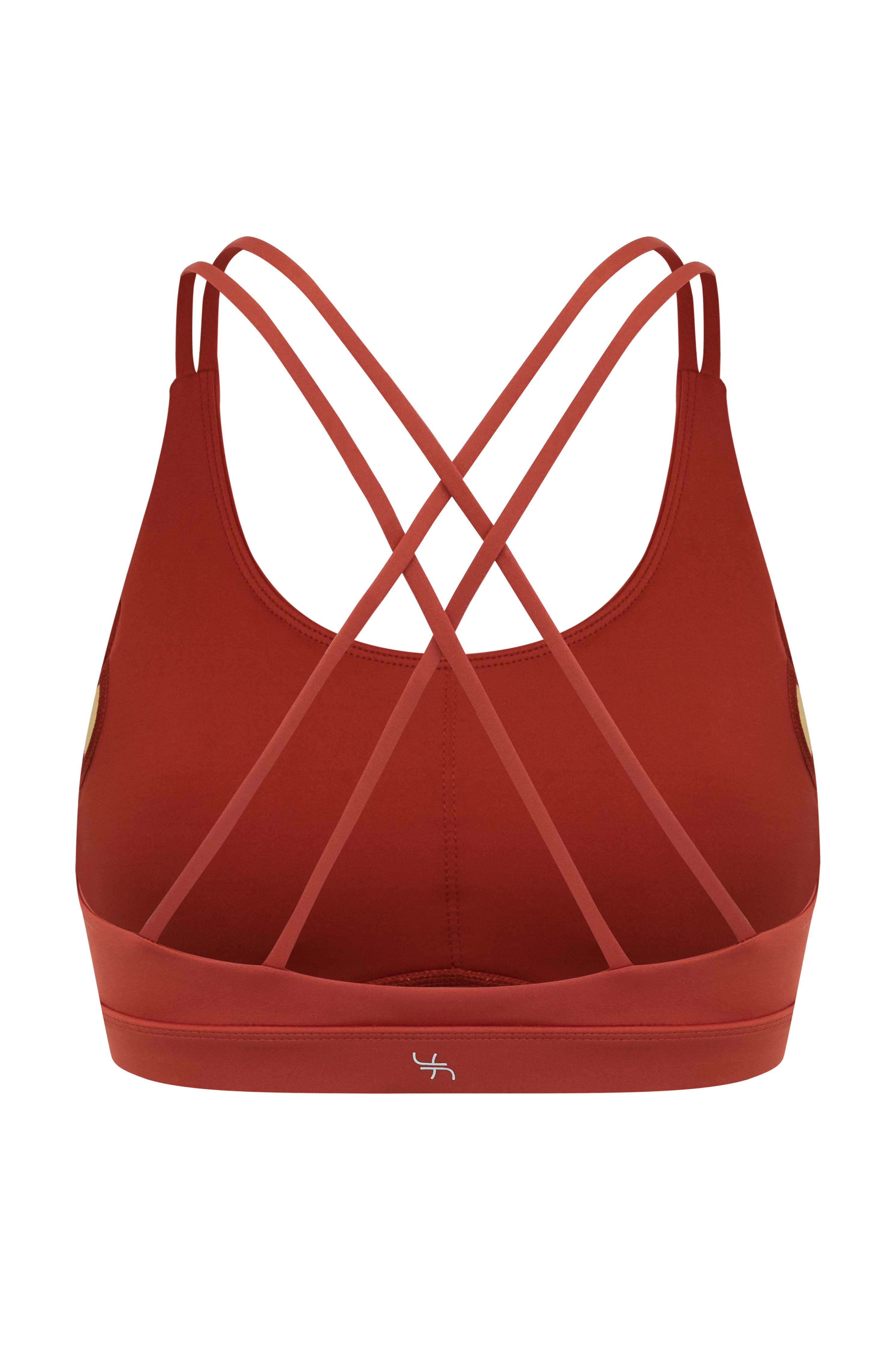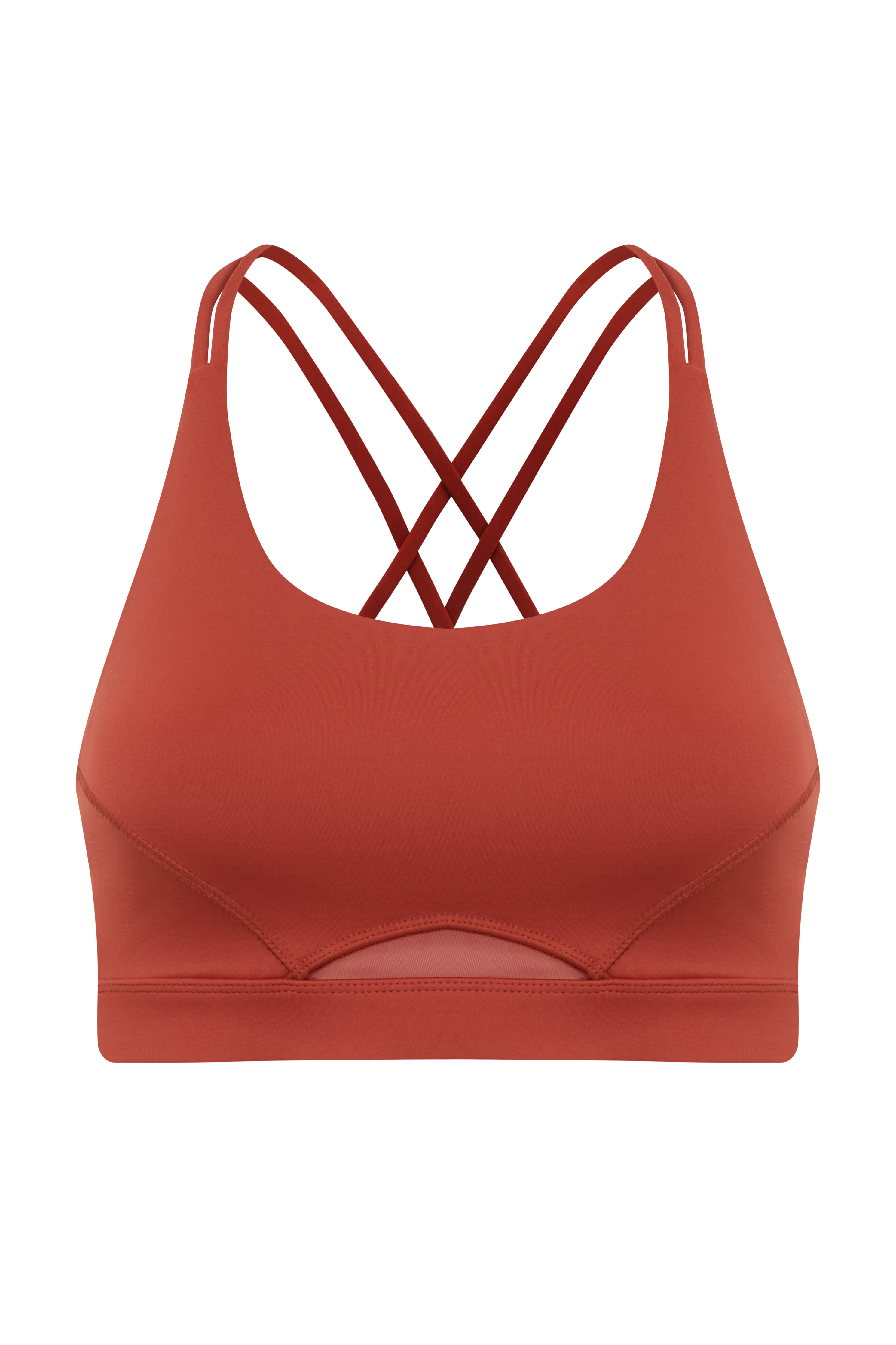 The POWERFLOW Light Support Strappy Sports Bra in Burnt Orange is designed to offer comfort, style, and sustainability in one elegant package. Made from eco-conscious regenerated nylon, this bra provides a breathable, lightweight feel, ideal for workout or casual wear. With removable cups, you can customize the fit and support to suit your needs.