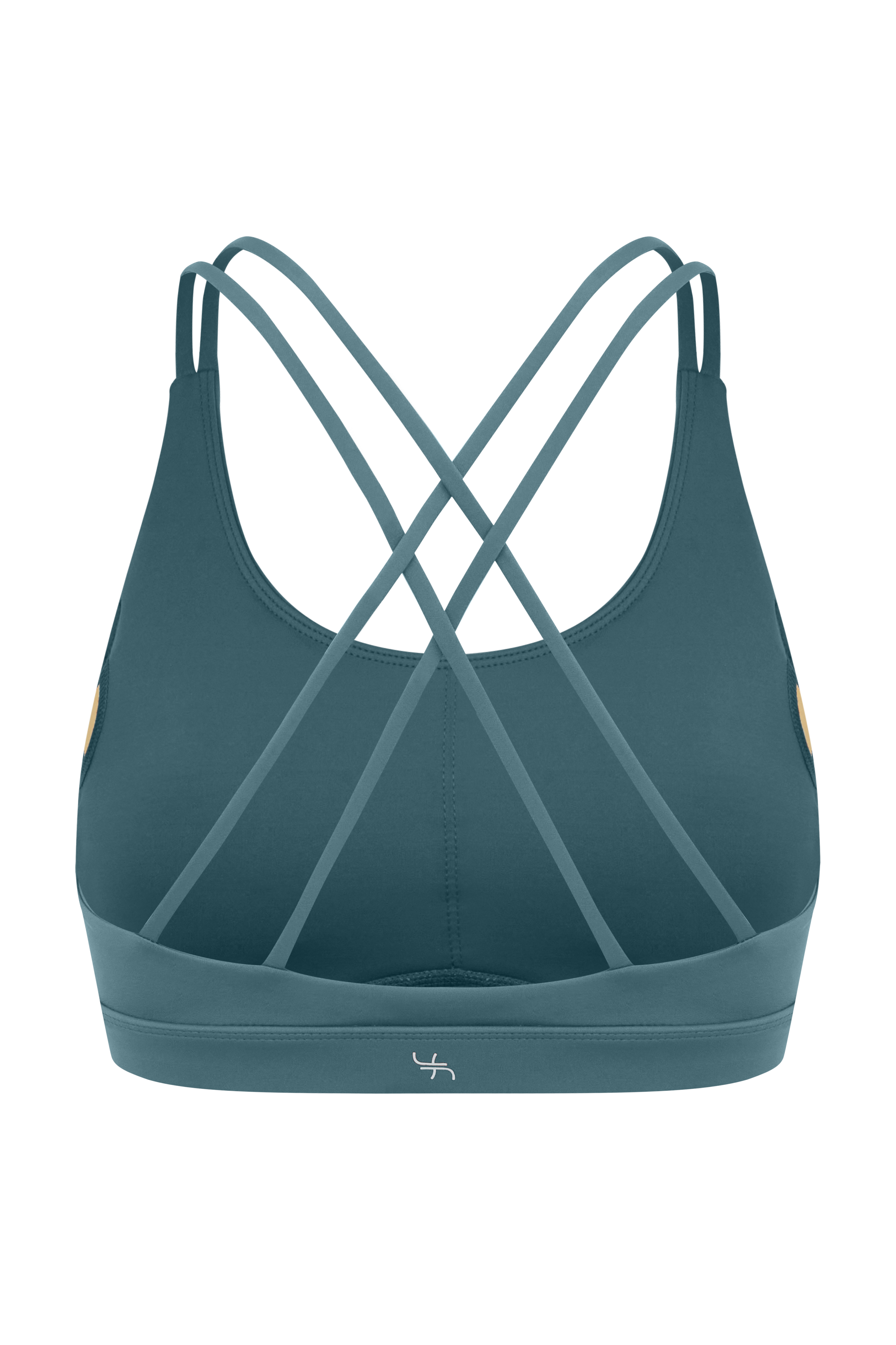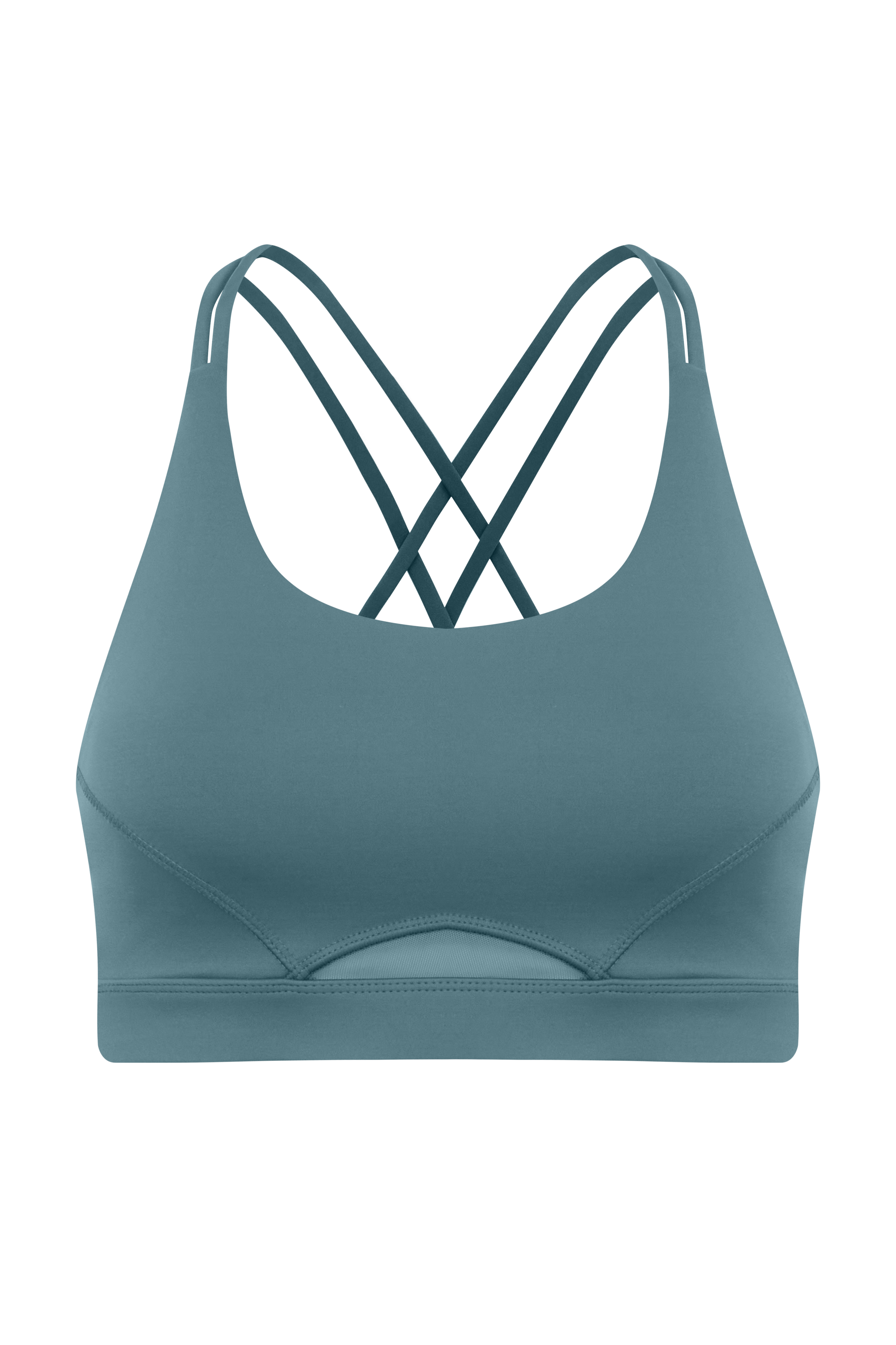The POWERFLOW Light Support Strappy Sports Bra in Burnt Slate Blue is designed to offer comfort, style, and sustainability in one elegant package. Made from eco-conscious regenerated nylon, this bra provides a breathable, lightweight feel, ideal for workout or casual wear. With removable cups, you can customize the fit and support to suit your needs.