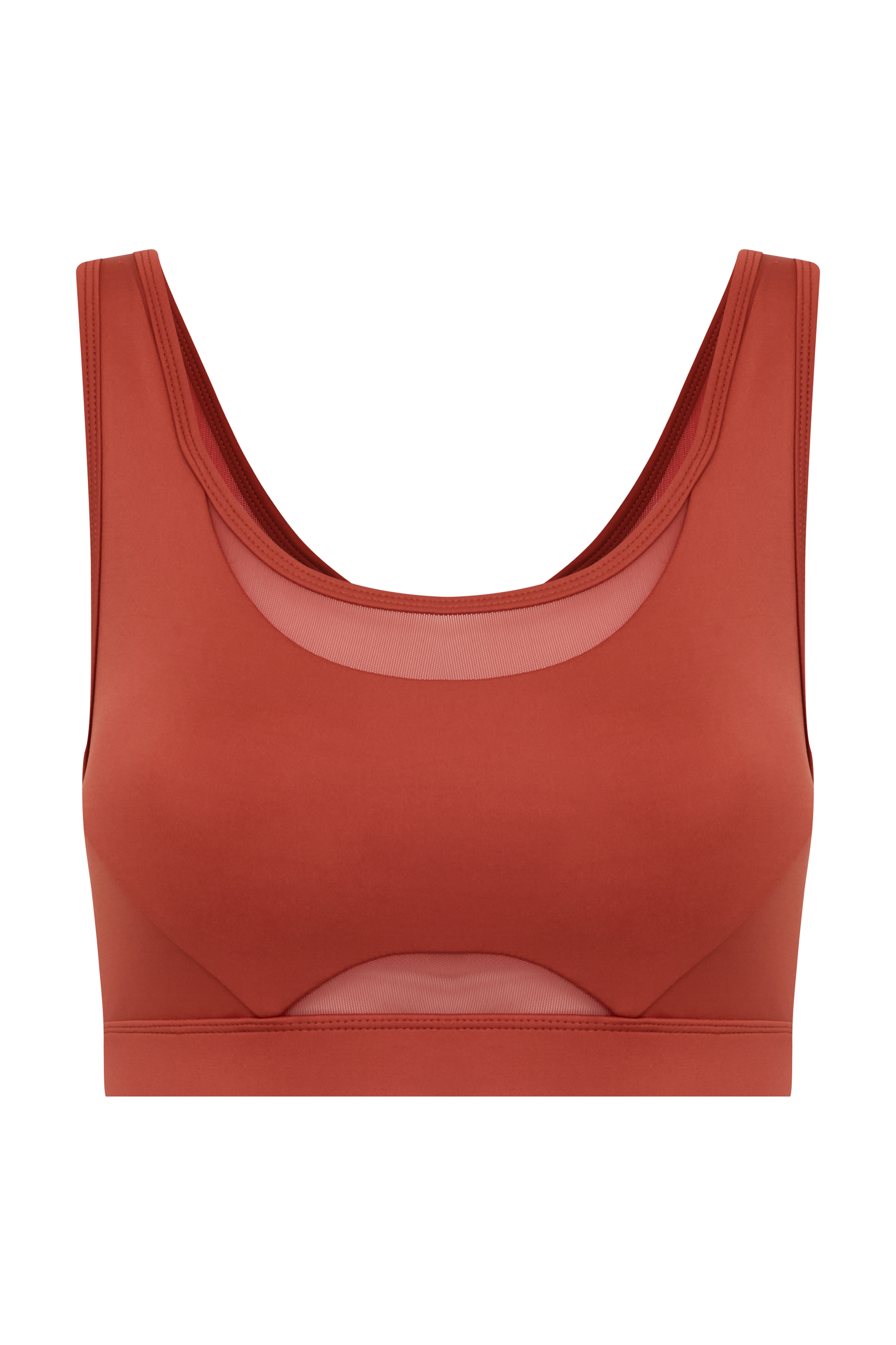 The POWERFLOW Medium Support Sports Bra in Burnt Orange is crafted to keep up with your every move, delivering both comfort and performance in a sustainable design. Made from high-quality regenerated nylon, this sports bra is designed to support you through all activities, offering a secure yet flexible fit that’s ideal for everything from yoga to strength training.
