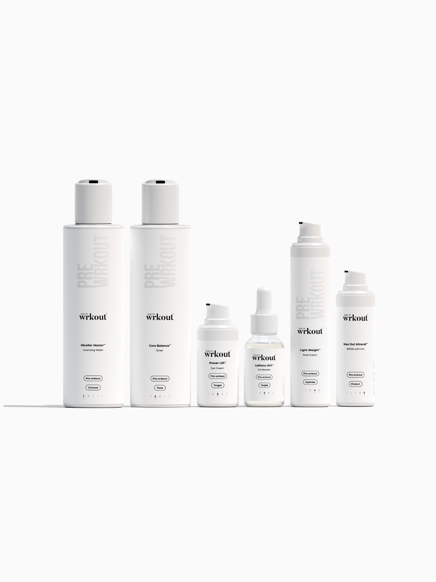 Welcome to our Pre-wrkout™ skincare routine set, designed to elevate your skincare game before you hit the gym or engage in any physical activity. We understand the importance of prepping your skin for the challenges ahead and that's why we've created a range of products to Cleanse, Tone, Target, Hydrate and Protect your skin. From our Micellar Master™ Cleansing Water to our Max Out Mineral™ Sunscreen, each product is carefully formulated to ensure your skin stays hydrated, nourished and ready to take on any workout. Discover the ultimate Pre-wrkout™ skincare routine and unlock your skin's full potential.