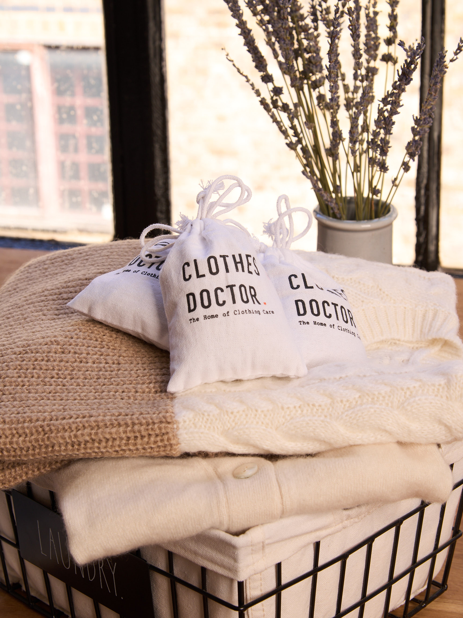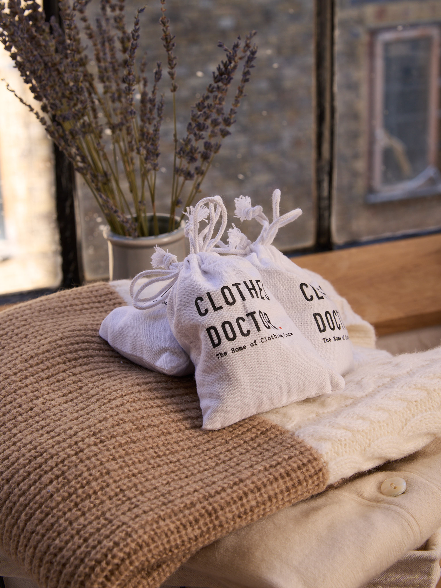 Clothes Doctor's bestselling fragrance bags act as both a natural moth repellent and a wardrobe refresher. Scented with Lavender, Patchouli, Lemongrass, and Eucalyptus, either hang the bag in your wardrobe or leave in your drawers to repel moths and scent your clothes.