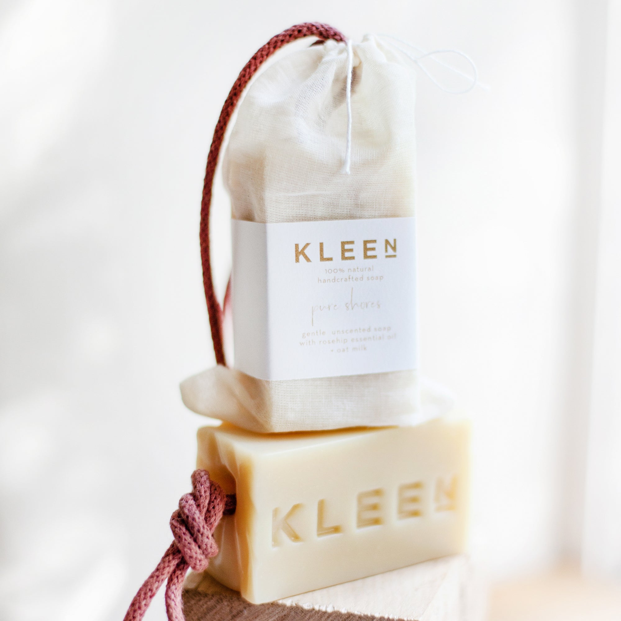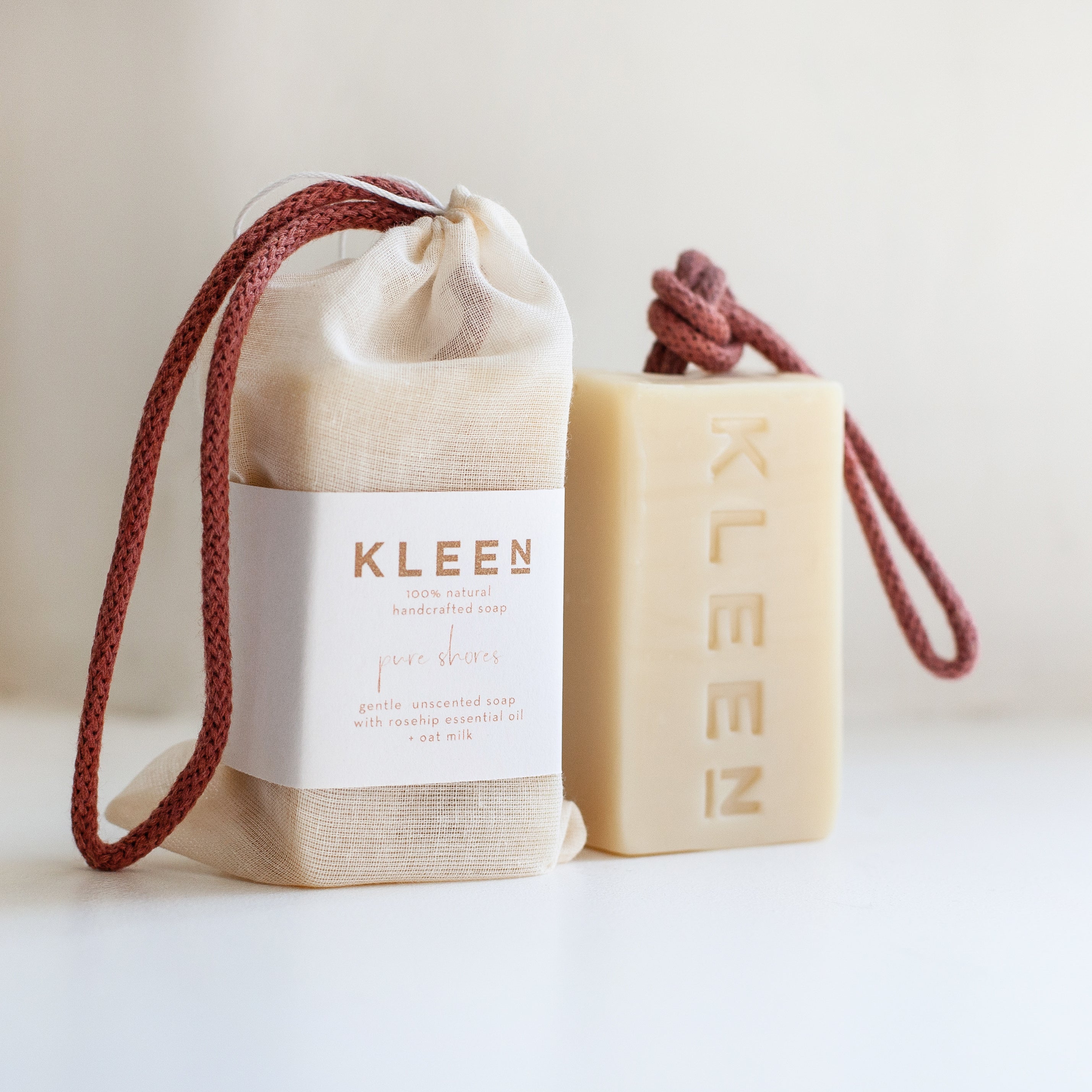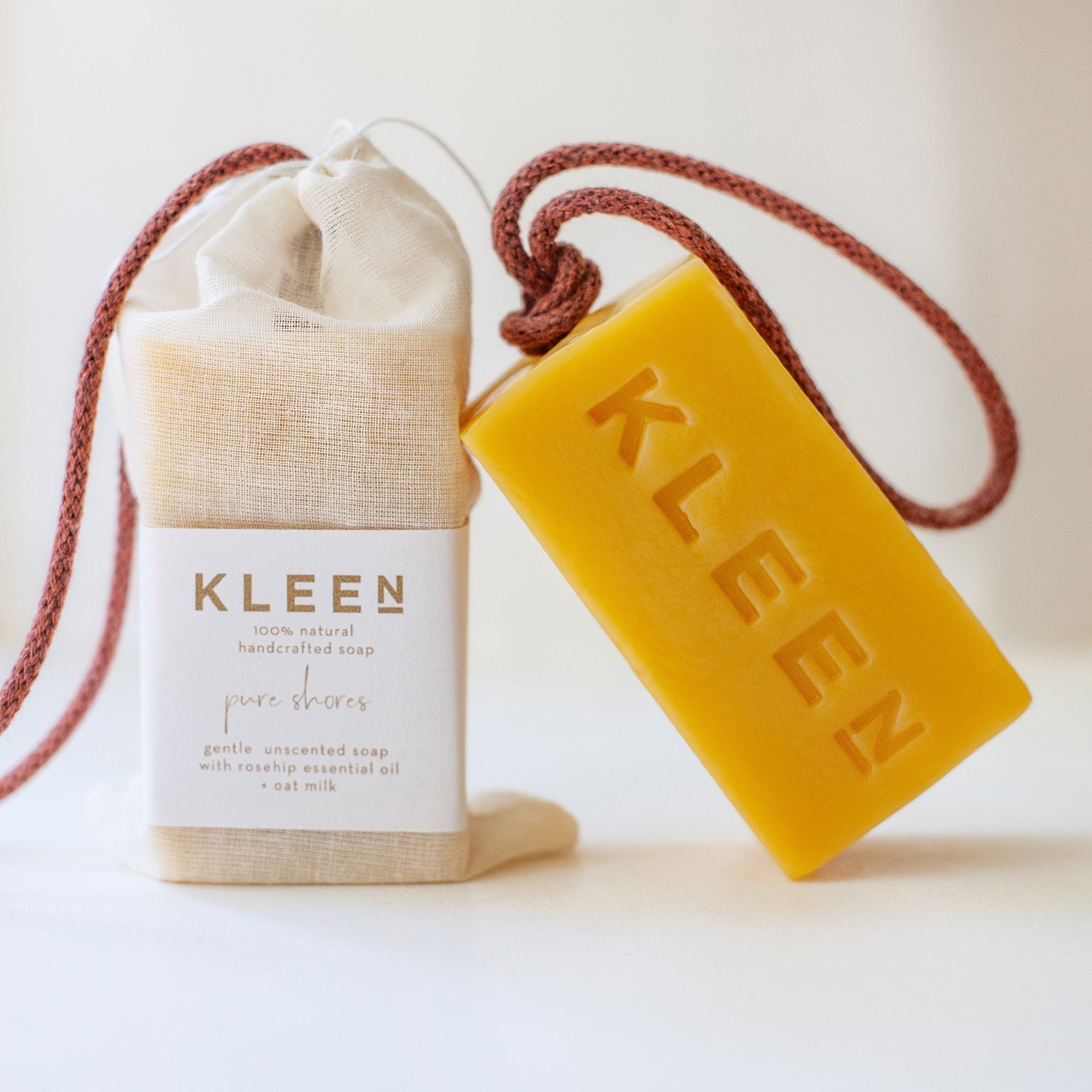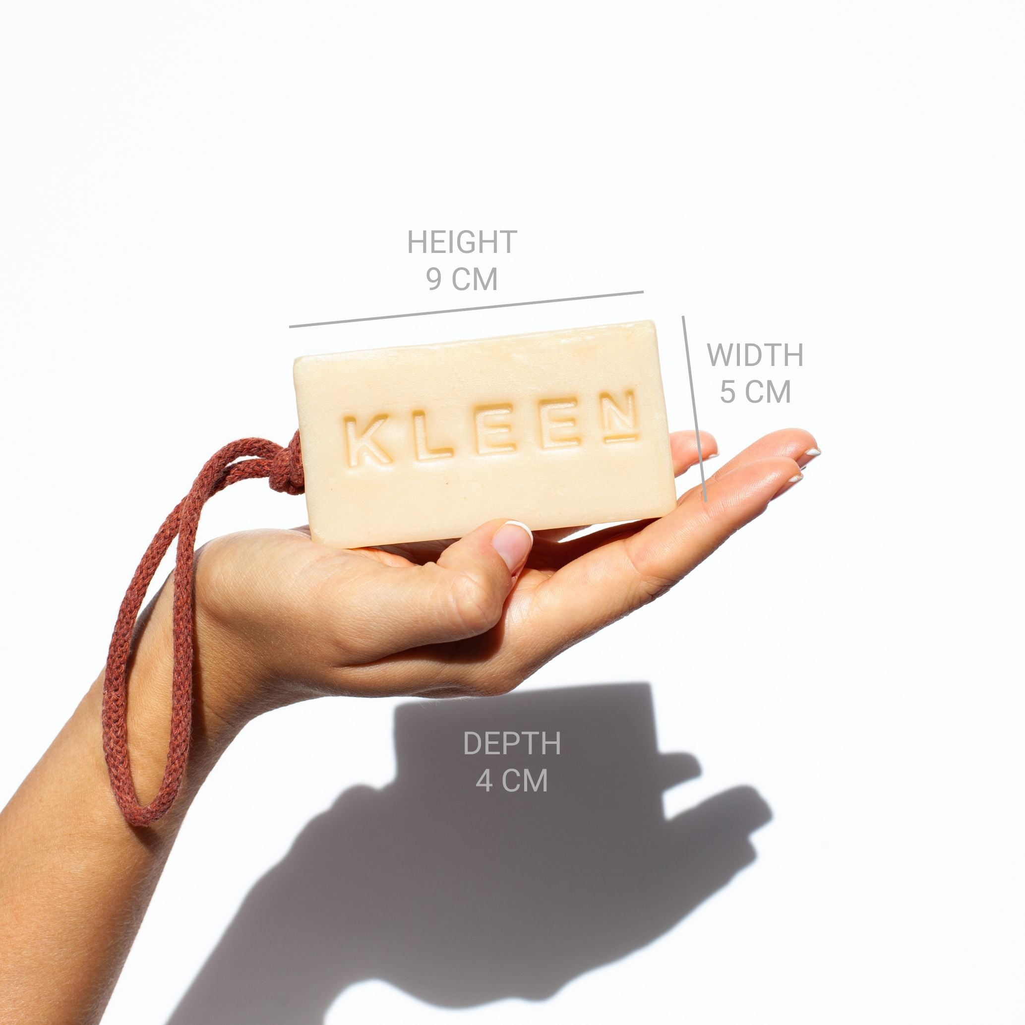 Free from artificial colours, scents or preservatives all KLEENSOAPS are 100% natural and designed to be as clean and green as possible. Each one is centred with a cotton rope to give you a long lasting, waste-free, plastic-free shower experience.