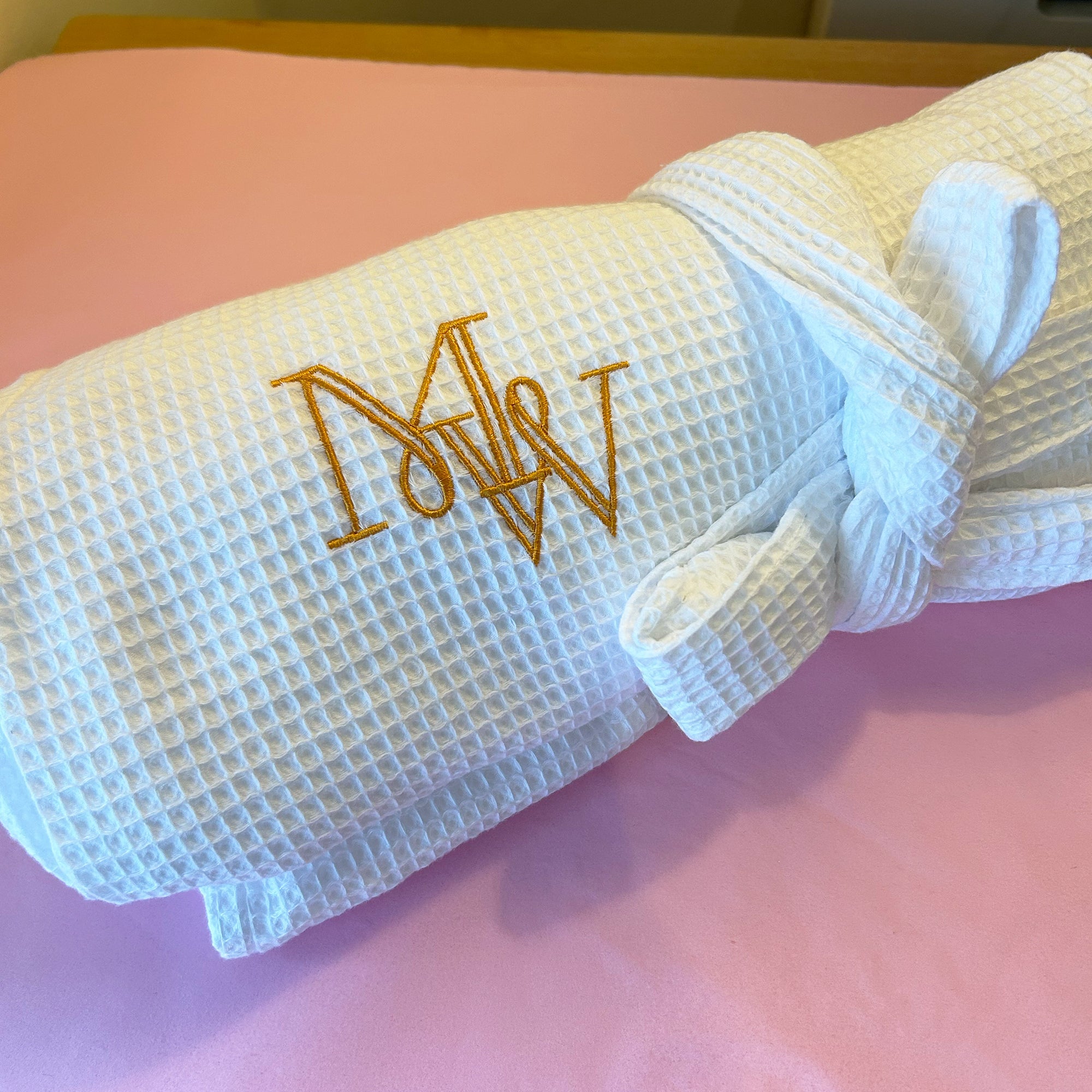 Add a touch of elegance to her daily routine with our Monogrammed Dressing Gown. Perfect for bridesmaids or as a thoughtful bridal shower gift, each bag is beautifully embroidered with her initials for a personalized touch. These versatile makeup cases are ideal for storing beauty essentials or as stylish toiletry bags for travel. Crafted with quilted fabric and attention to detail, they make for a chic and practical gift that she'll love. Make her special day even more memorable with our Monogram Quilted Cosmetic Bags!