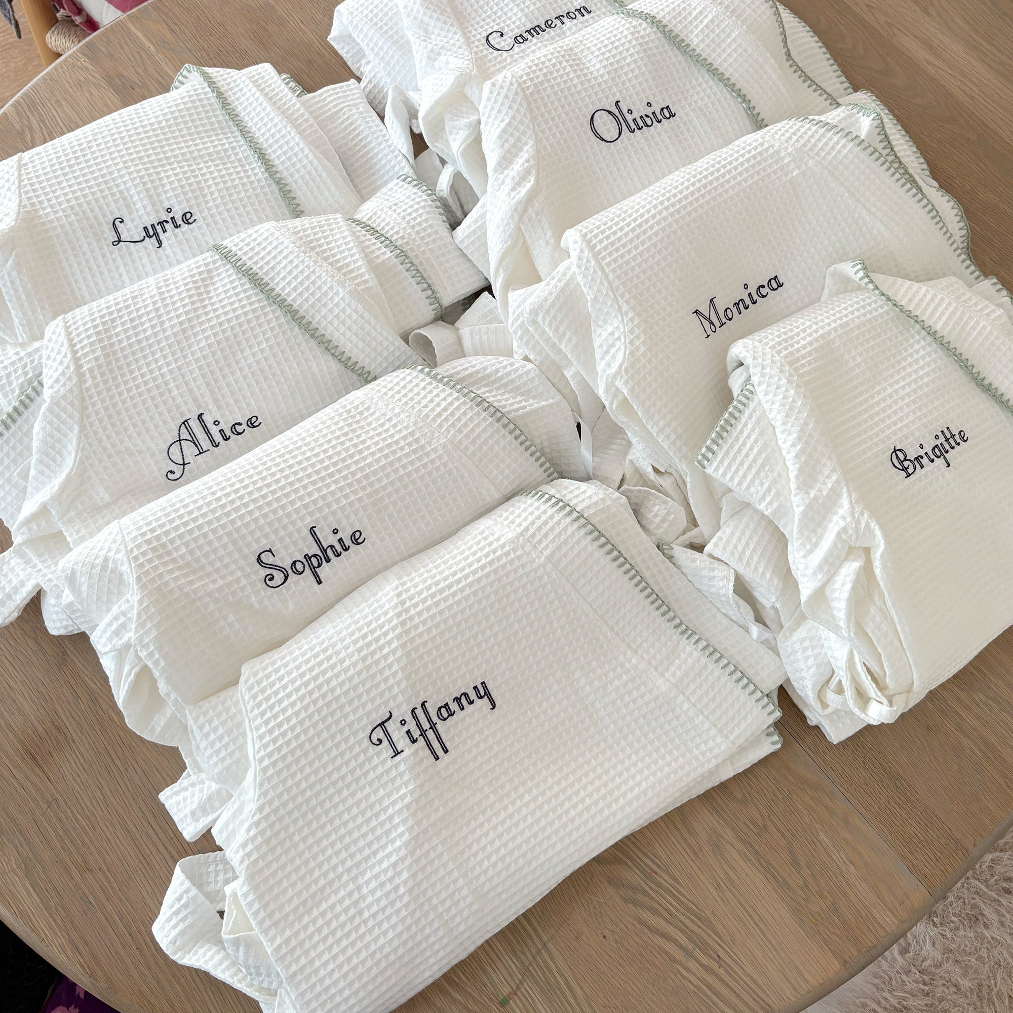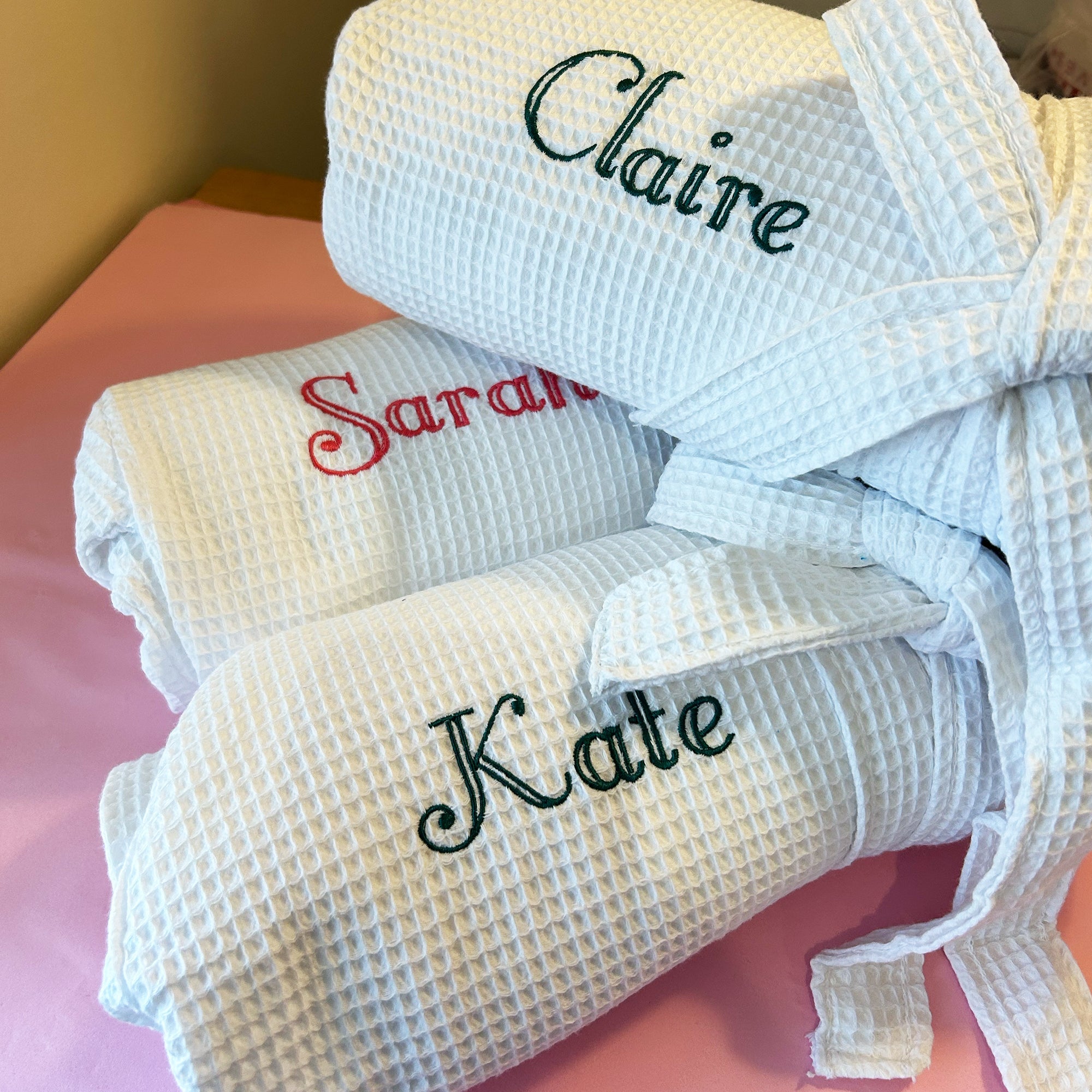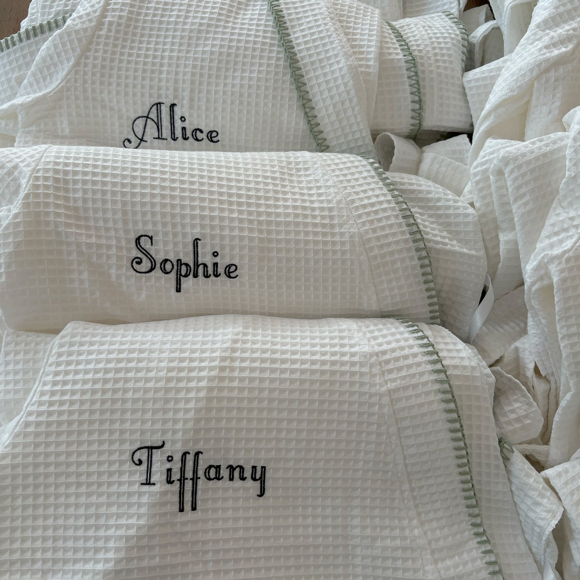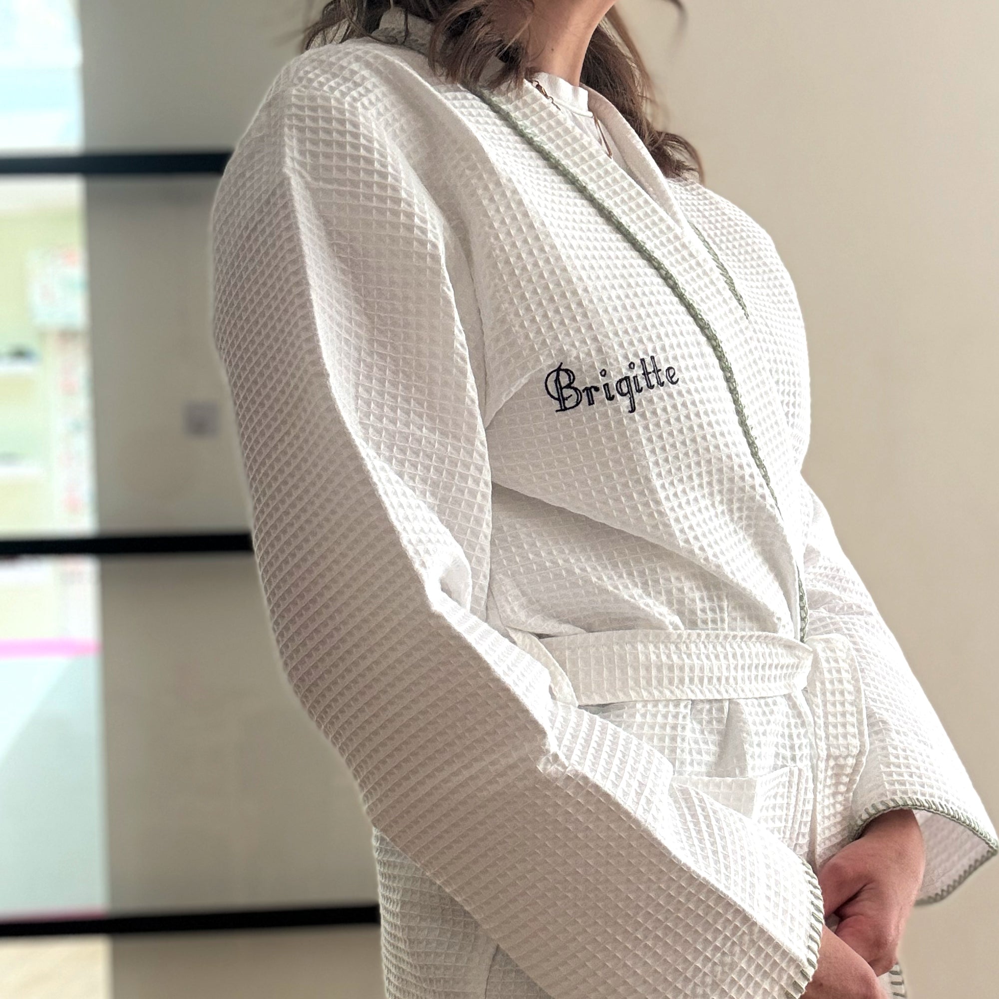 Our new dressing gowns all come with a beautiful green stitch edging.