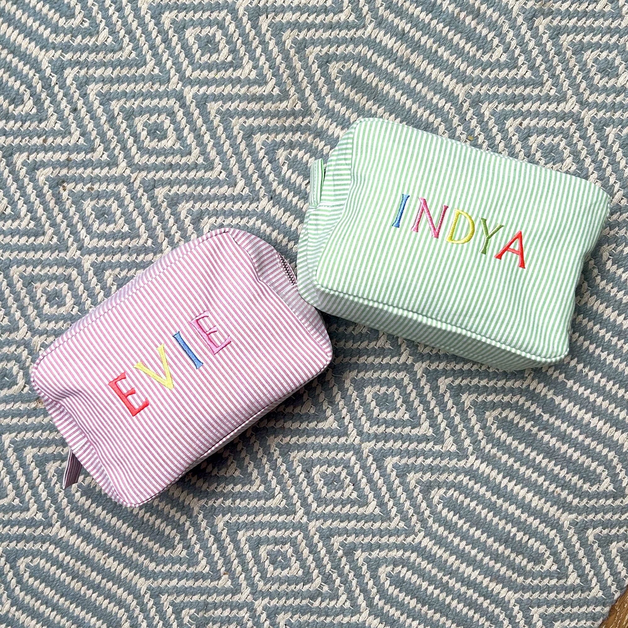 Indulge in girly charm with our Candy Stripe Monogrammed Makeup Bag! Personalized with your name, this delightful cosmetic pouch is perfect for bridal showers, weekend getaways, or as a sweet Mother's Day surprise. Adorned with vibrant candy stripes and your custom monogram, it's both stylish and practical. Treat yourself or a loved one to a touch of luxury with our Personalized Name Cosmetic Pouch. Organize your beauty essentials in style and make every day feel like a celebration!