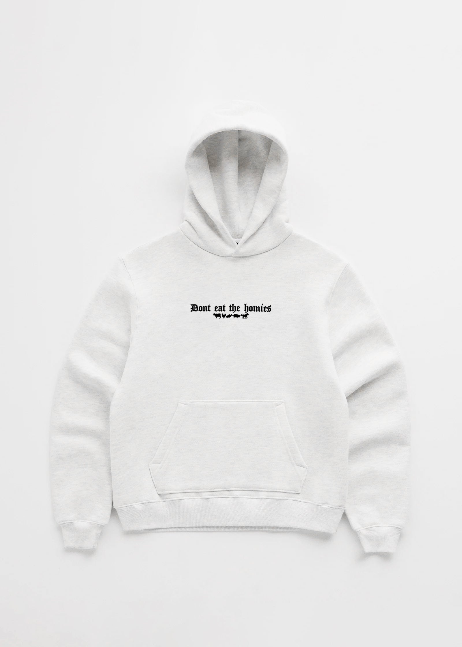 This hoodie features the original Dont Eat The Homies Logo on the front and the original "Ransom" design on the back. The unisex fit & soft brushed fleece fabric is perfect for everyday wear and is designed with fashion, comfort, and the planet in mind. Made with 20% recycled polyester from plastic bottles and 80% sustainably sourced cotton fibers. Oek-Tex Standard 100 certified.