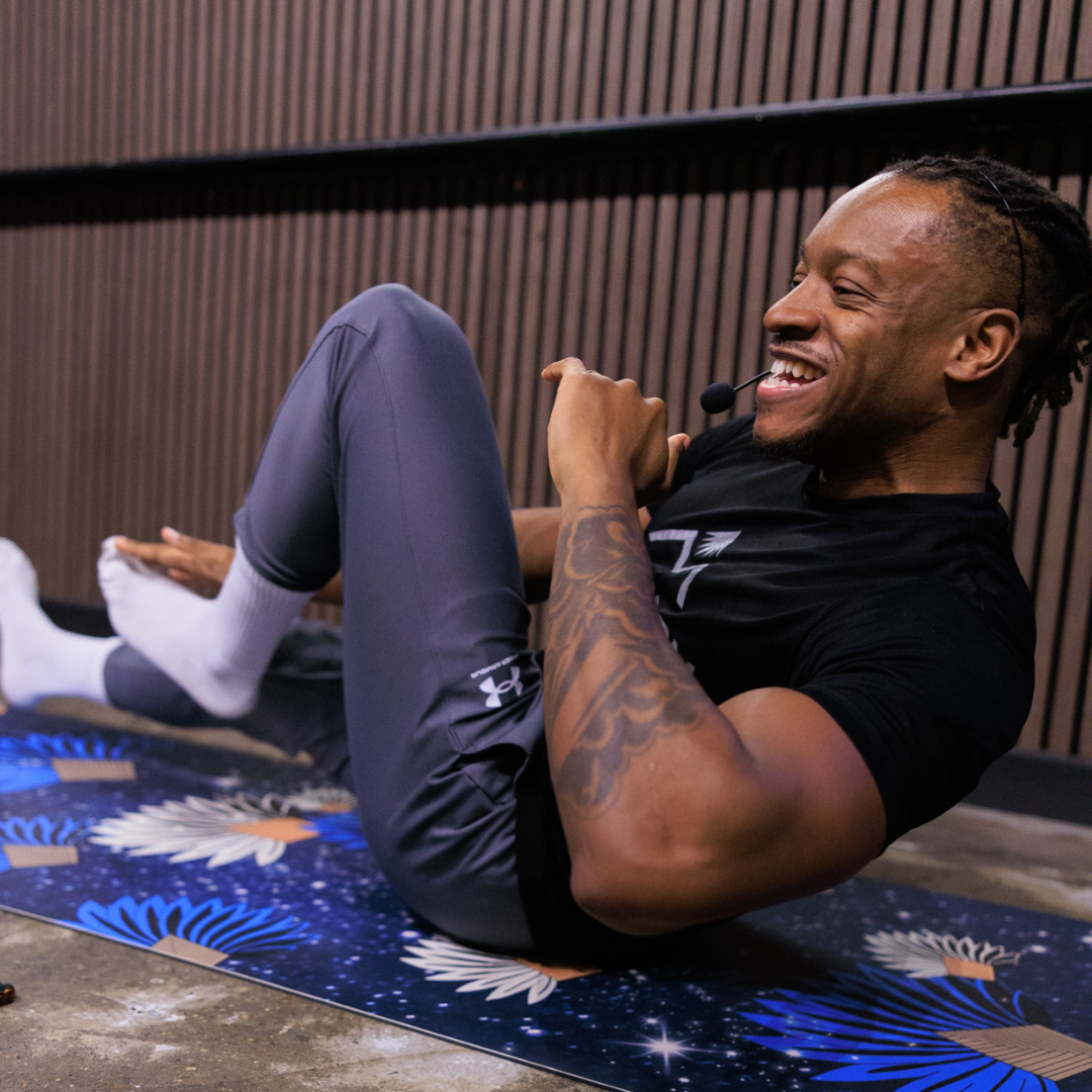 1. Place your mat the other way around with the design on the floor and the natural rubber side upwards.