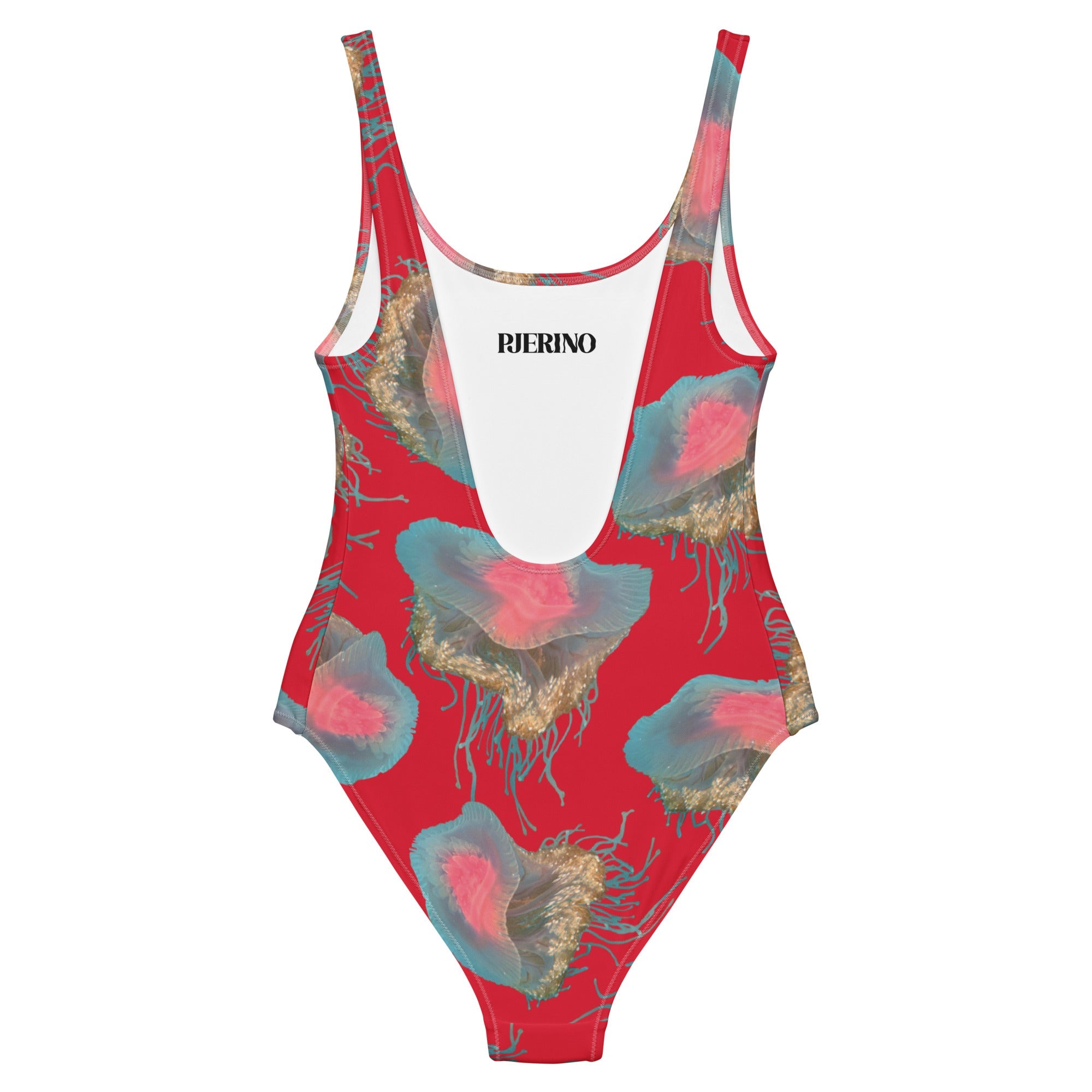 Make a bold statement with our Red One Piece Swimsuit, designed to capture attention from every angle. Featuring an exclusive Medusa-inspired print with floating jellyfish in soft blues and pinks, this swimsuit brings the magic of the deep sea to life against a vibrant red backdrop.