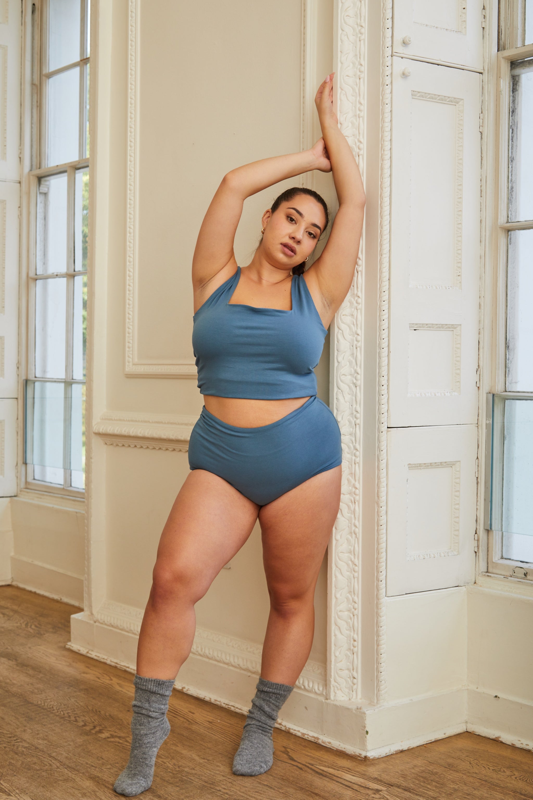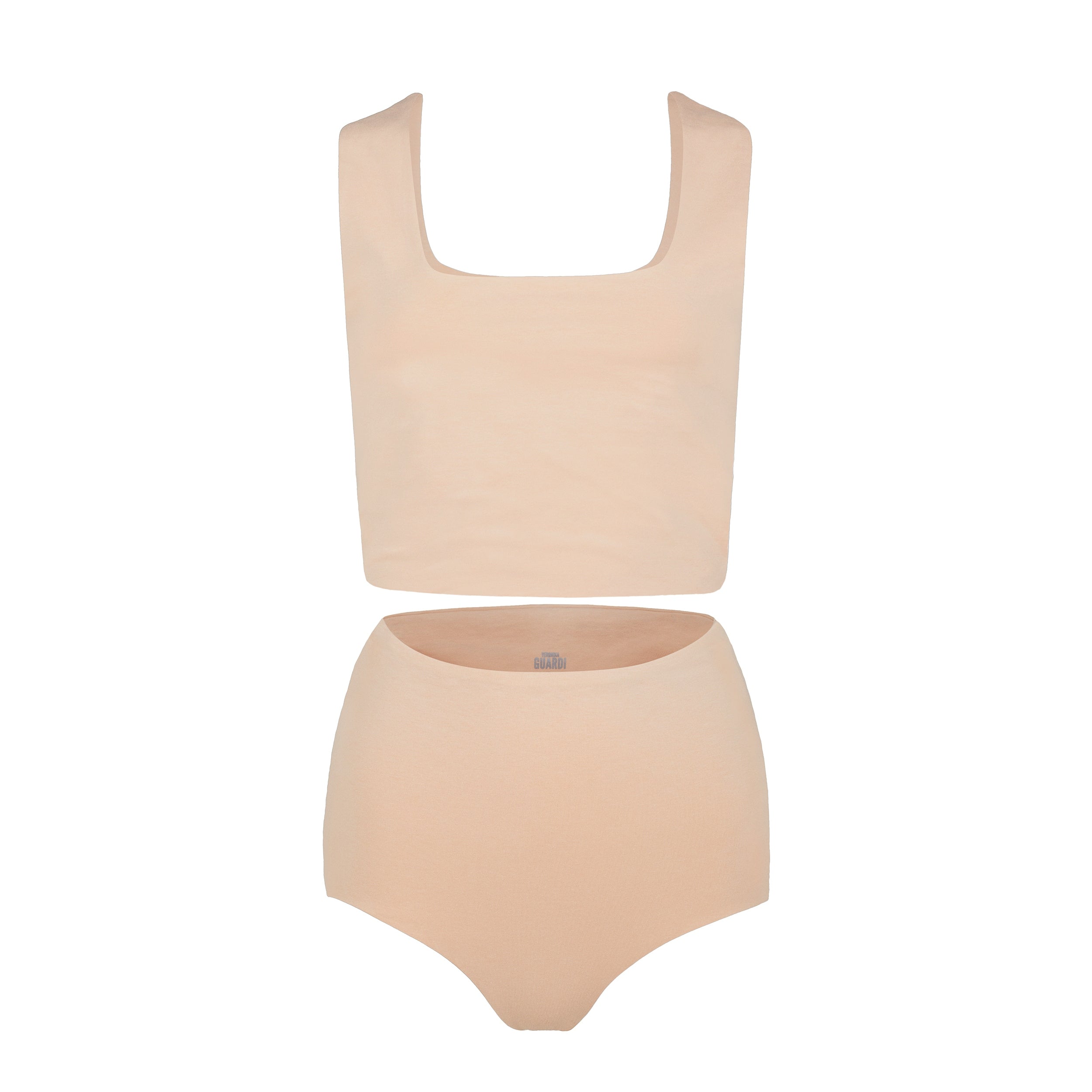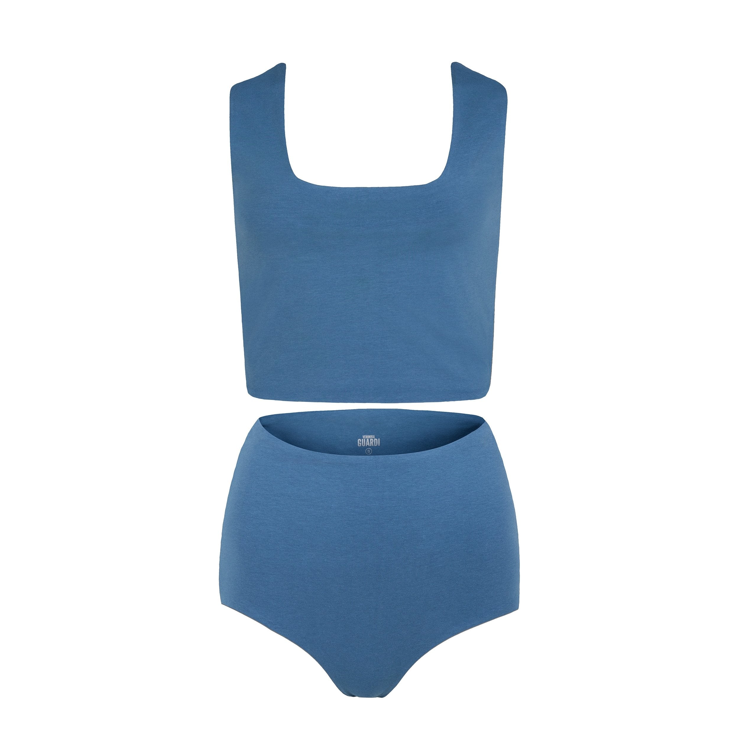 Easy wearing for daily living. The Remi matching set is cut from organic cotton, with a buttery smooth feel that is kind to your skin. The top features a flattering square neckline that suits all types of figures, double layered for extra support and has a long-line fit. The shorts are fully-lined with a high waisted shaping fit, hugging your waist perfectly.
