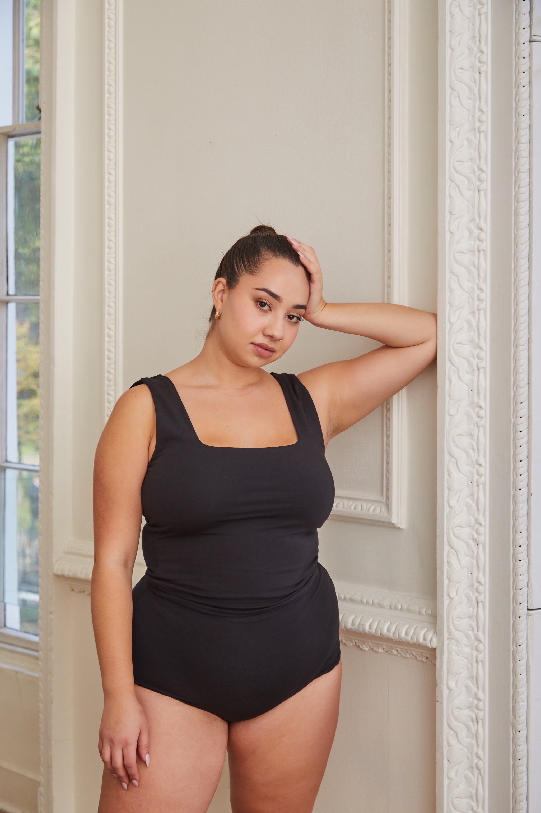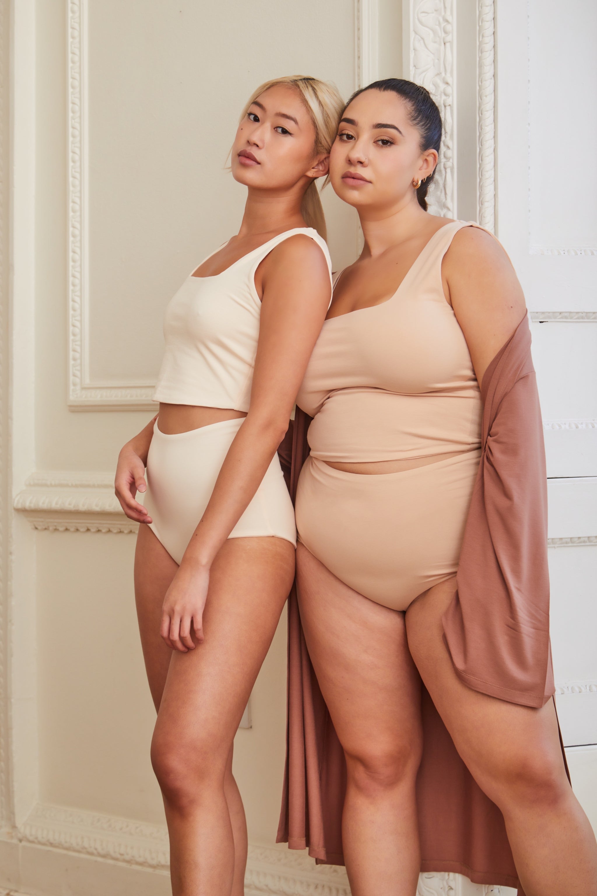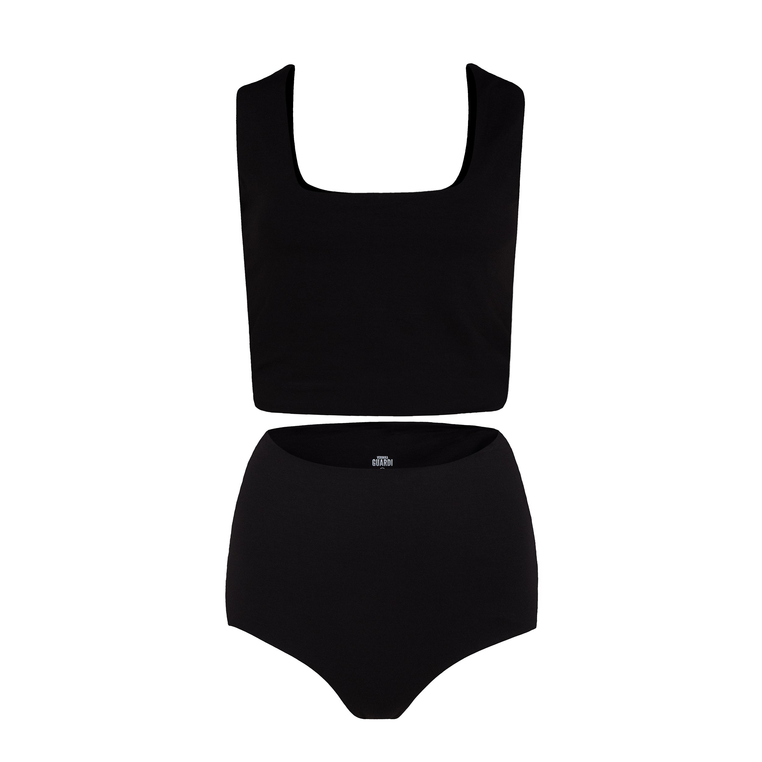 Easy wearing for daily living. The Remi matching set is cut from organic cotton, with a buttery smooth feel that is kind to your skin. The top features a flattering square neckline that suits all types of figures, double layered for extra support and has a long-line fit. The shorts are fully-lined with a high waisted shaping fit, hugging your waist perfectly.