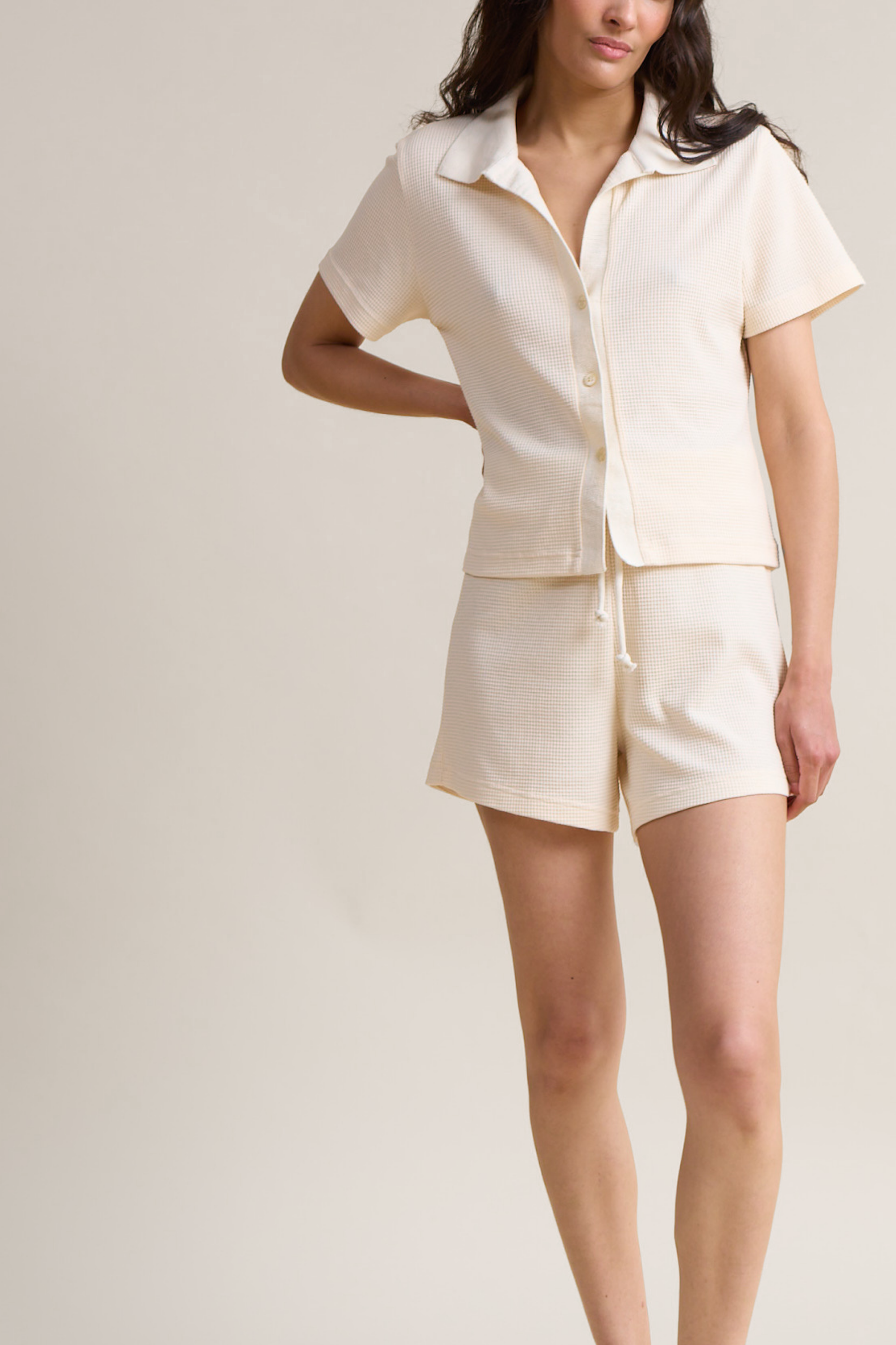 The Resort Waffle Shorts are designed for all-day comfort and versatility. Cut from a lightweight waffle-textured fabric with a super soft hand feel, these relaxed shorts are the perfect throw-on style for layering over swimwear or activewear. The elasticated waistband with drawstring ensures a custom fit, while the slightly curved hem adds a flattering touch.