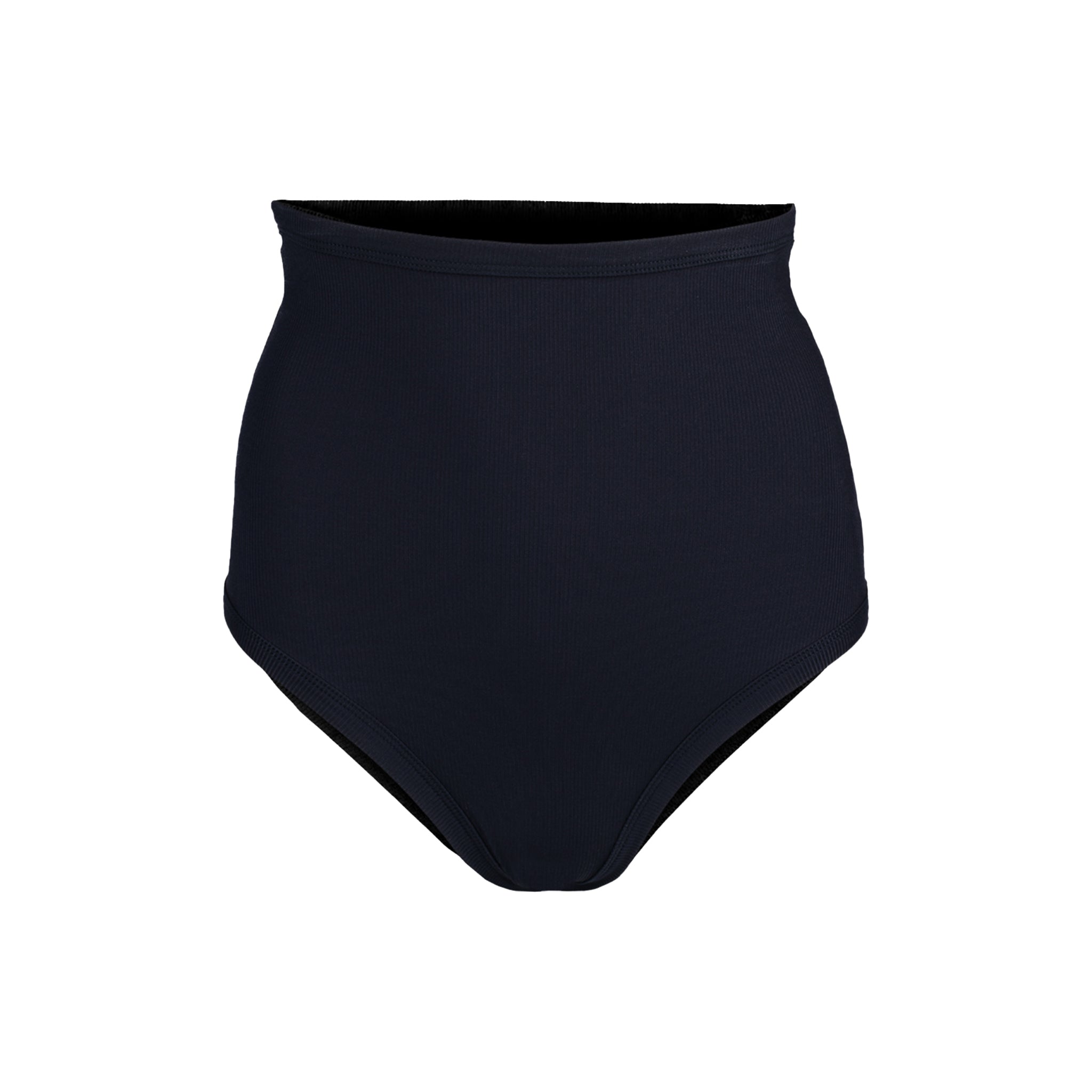 Introducing the Rhea High Waisted Panty in black ribbed fabric.