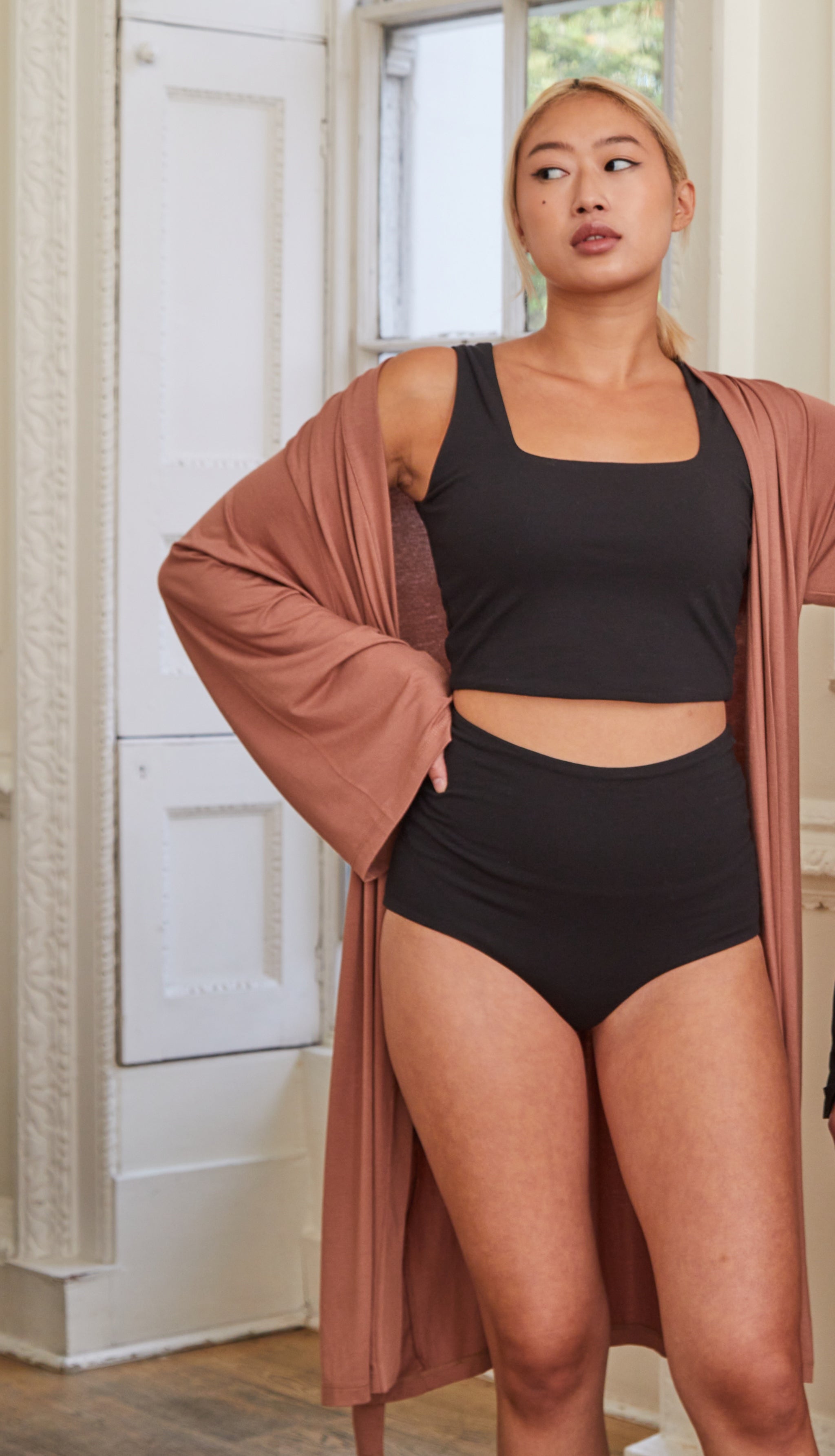 Suitable for lounging at home, wear as nightwear, underwear or even for practising yoga. Style yours with the matching Lorna Kimono.
