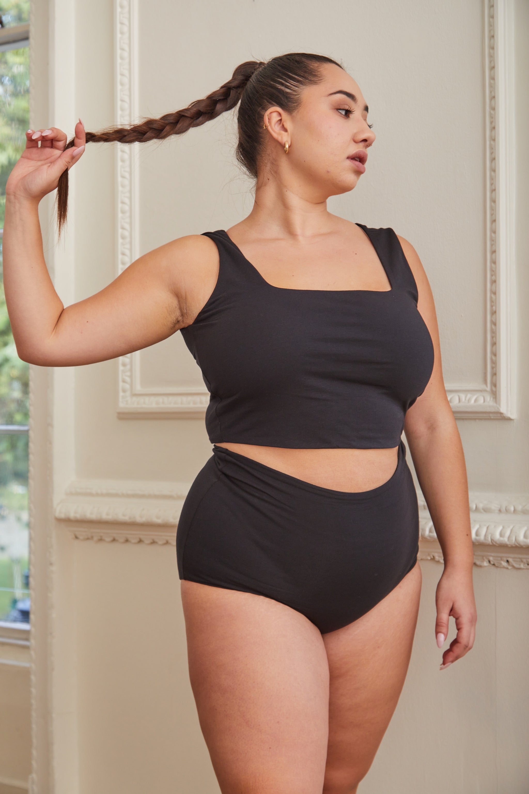 Limitless comfort wherever the day takes you. The Rosie matching set is cut from organic cotton, with a buttery smooth feel that is kind to your skin. The top features a flattering square neckline that suits all types of figures, double layered for extra support and a cropped fit. The shorts are fully-lined with a high waisted shaping fit, hugging your waist perfectly.