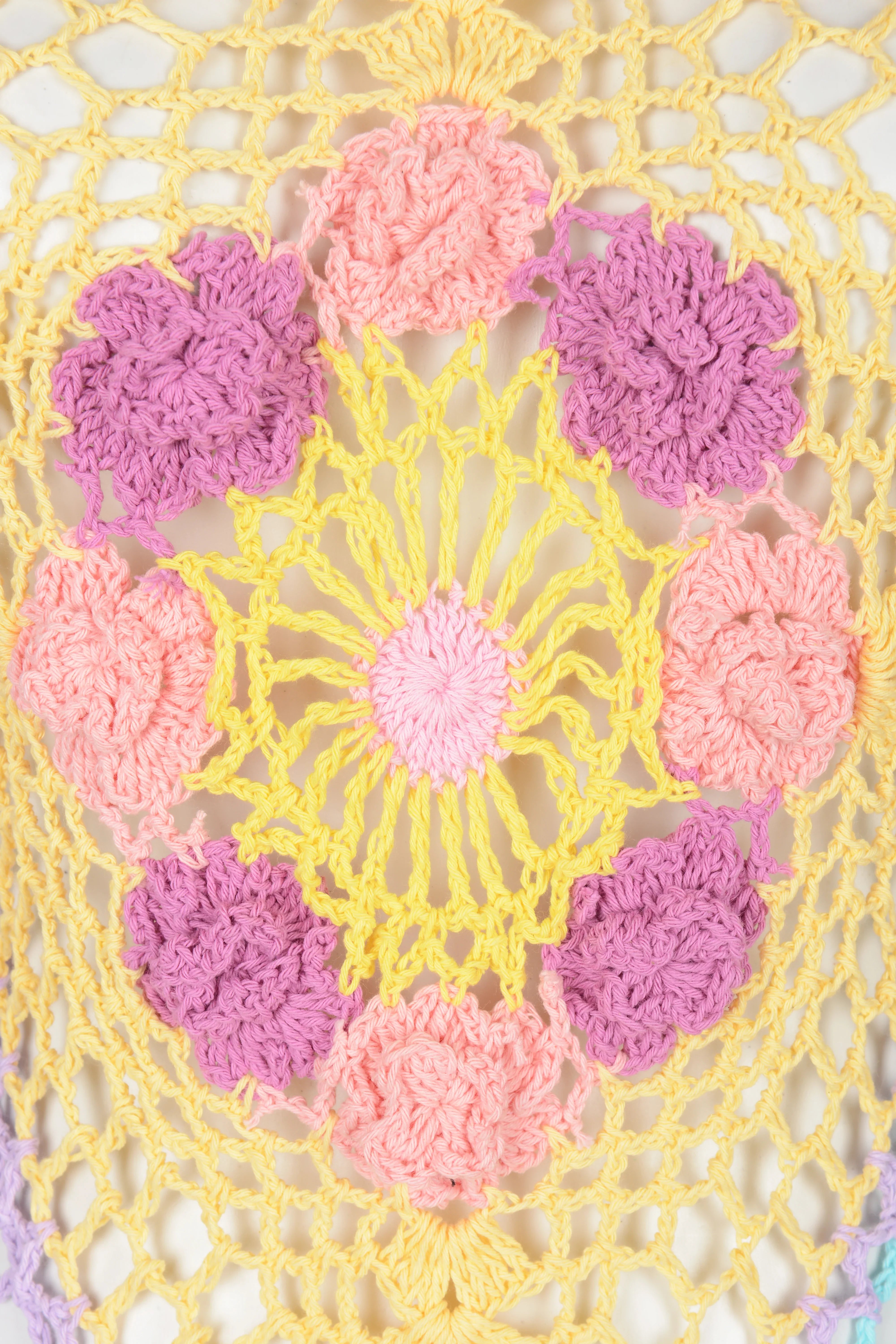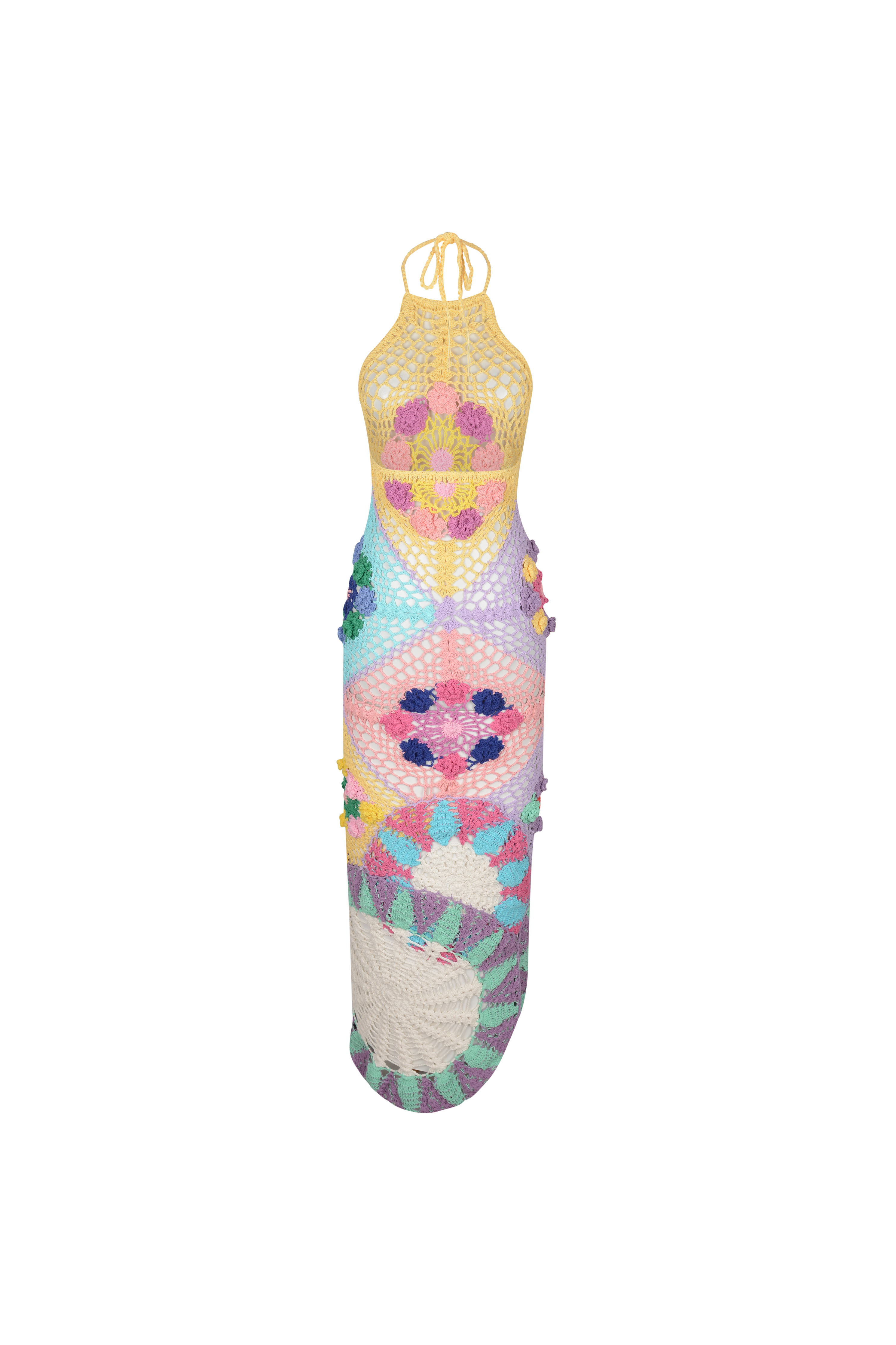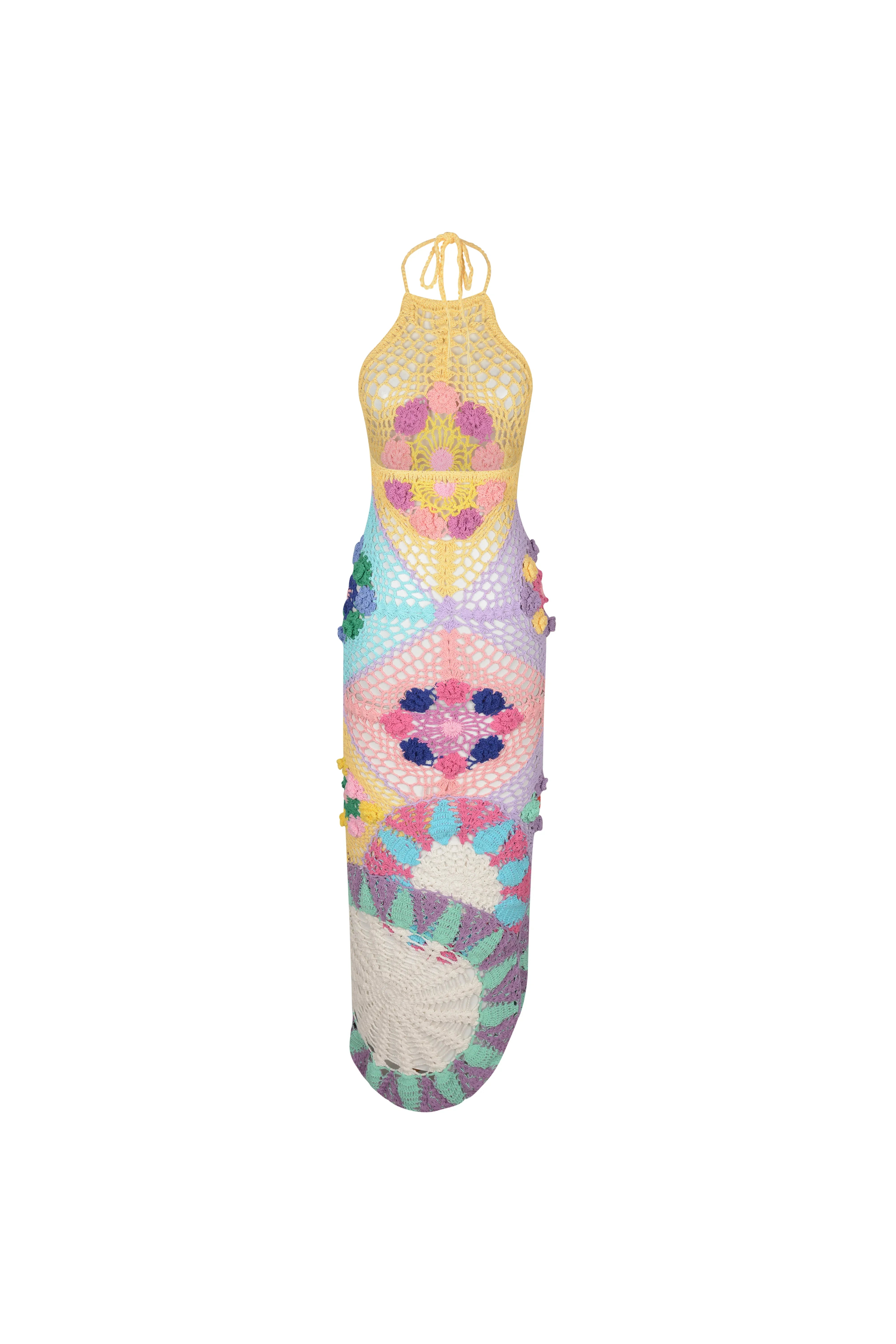 Embrace the beauty of the ocean with our stunning multicoloured Rowan crochet maxi dress. The intricate crochet design features a vibrant mix of colors, creating an eye-catching and dynamic pattern. This dress is adorned with delicate seashell and reef embellishments, capturing the enchanting essence of the underwater world. The maxi length offers a graceful and flowing silhouette, perfect for beach outings and summer parties.