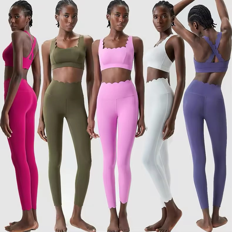 Expertly crafted with an alluring scallop cross back design, this ensemble offers a perfect fit that embraces your curves and delivers superior support during any workout.