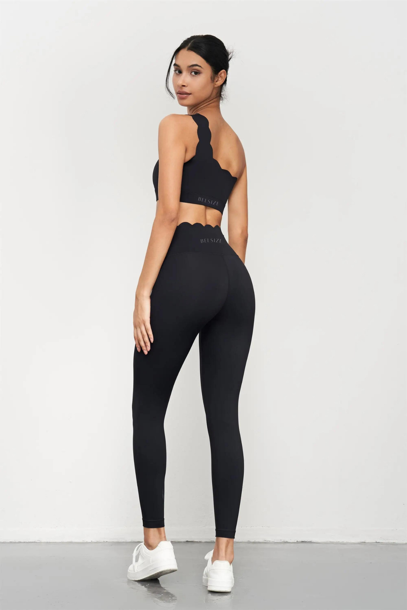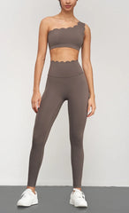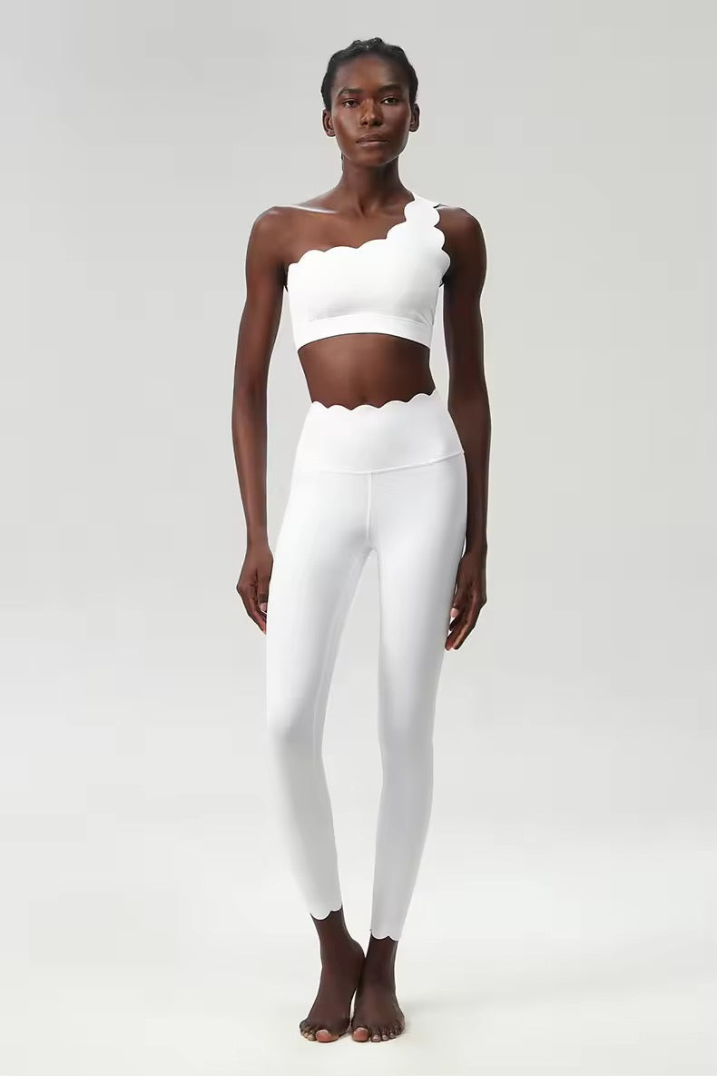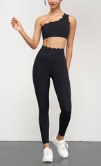 Designed with a seductive one-shoulder silhouette and elegant scalloped detailing, this ensemble offers a flawless fit that hugs your curves while providing excellent support during workouts.