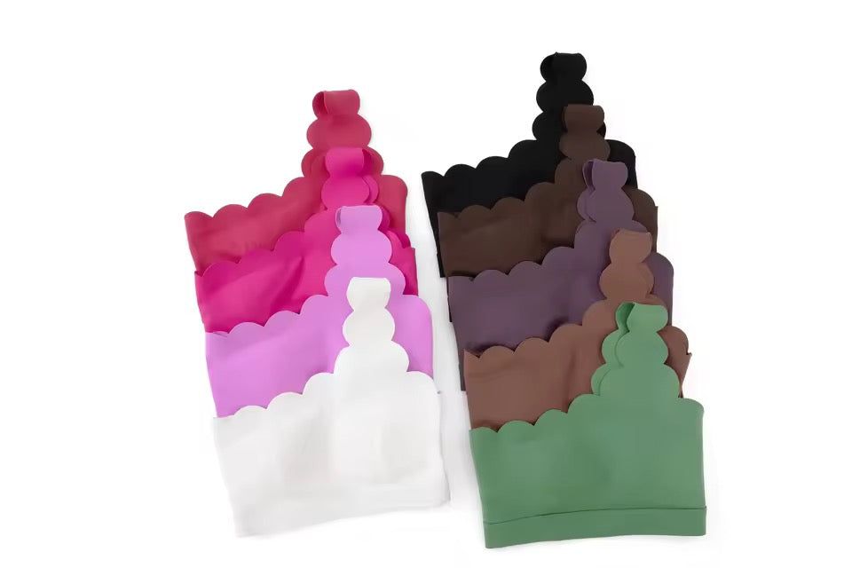 Elevate your yoga or pilates practice with our Scallop sports bra. This one shoulder beauty offers medium support and elegant scallop detailing. Removable pads provide customizable comfort. Experience a new level of grace and confidence in every movement with this sports bra.