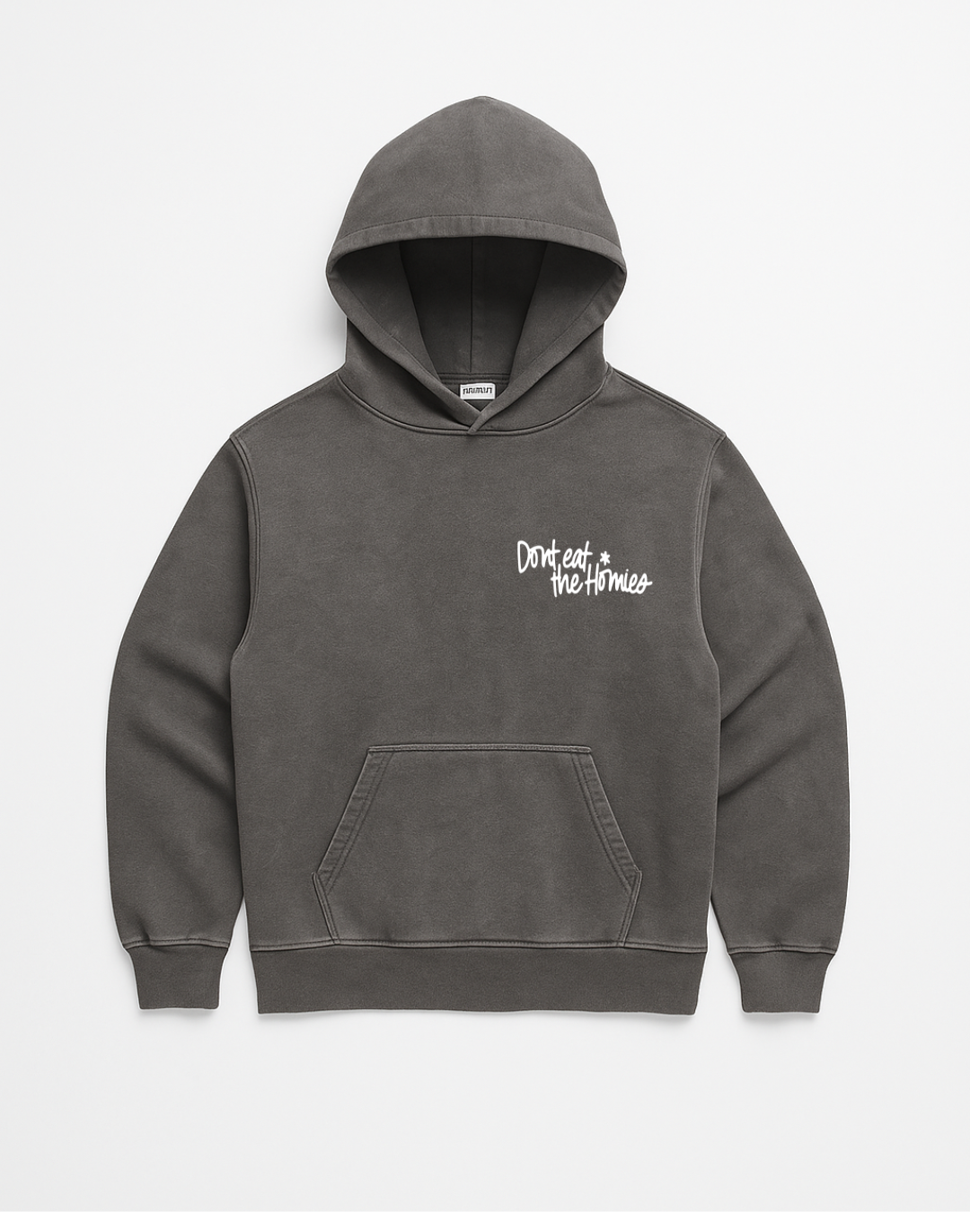 Our DETH Scribble Hoodie features a true to size fit and midweight feel for everyday wear - all year long. This hoodie features a new Dont Eat The Homies logo in a subtle puff print. The unisex fit & soft brushed fleece fabric is perfect for everyday wear and is designed with fashion, comfort, and the planet in mind. Made with 80% cotton and 20% recycled polyester.