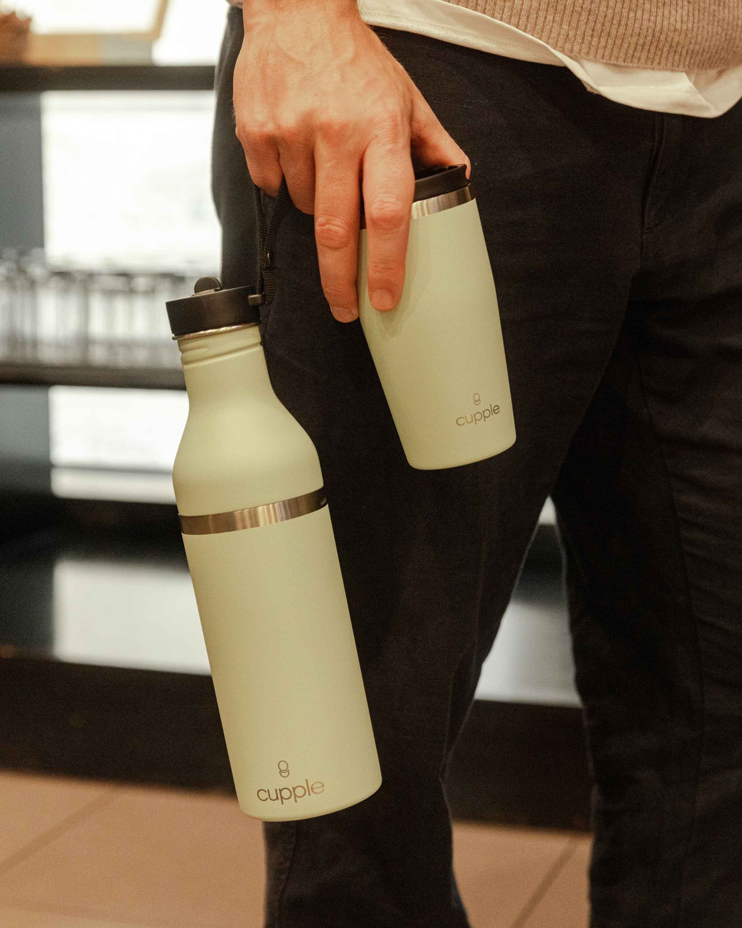 Discover Cupple’s 2-in-1 water bottle and insulated cup, designed to carry both water and hot drinks in one compact solution.