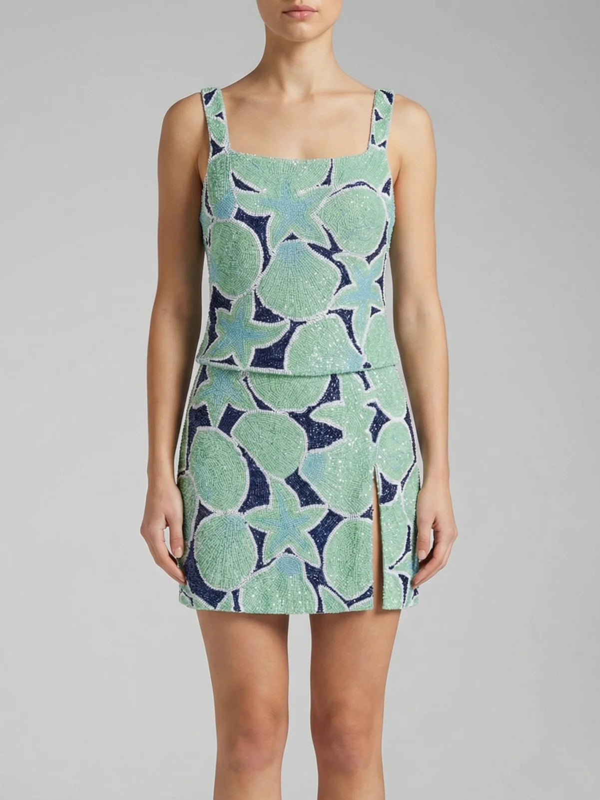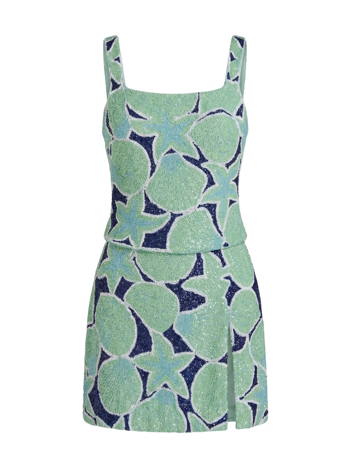 Sea Moscow Co-ord Top Crafted for the discerning traveller, this co-ord top channels oceanic elegance through hand-embellished detailing and refined tailoring.
