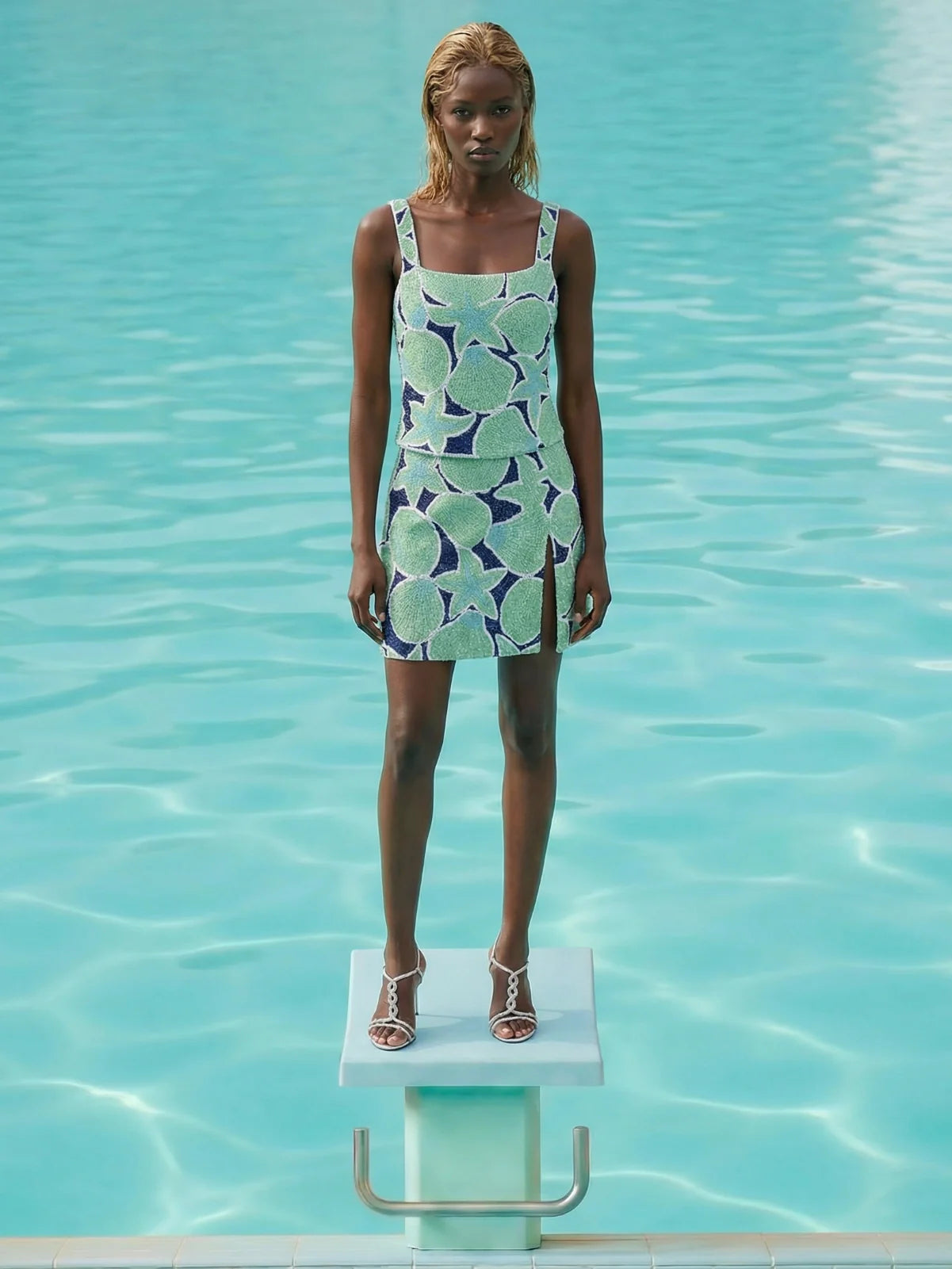 The structured silhouette pairs seamlessly with matching bottoms or layered pieces, offering versatility across resort settings and elevated casual occasions.