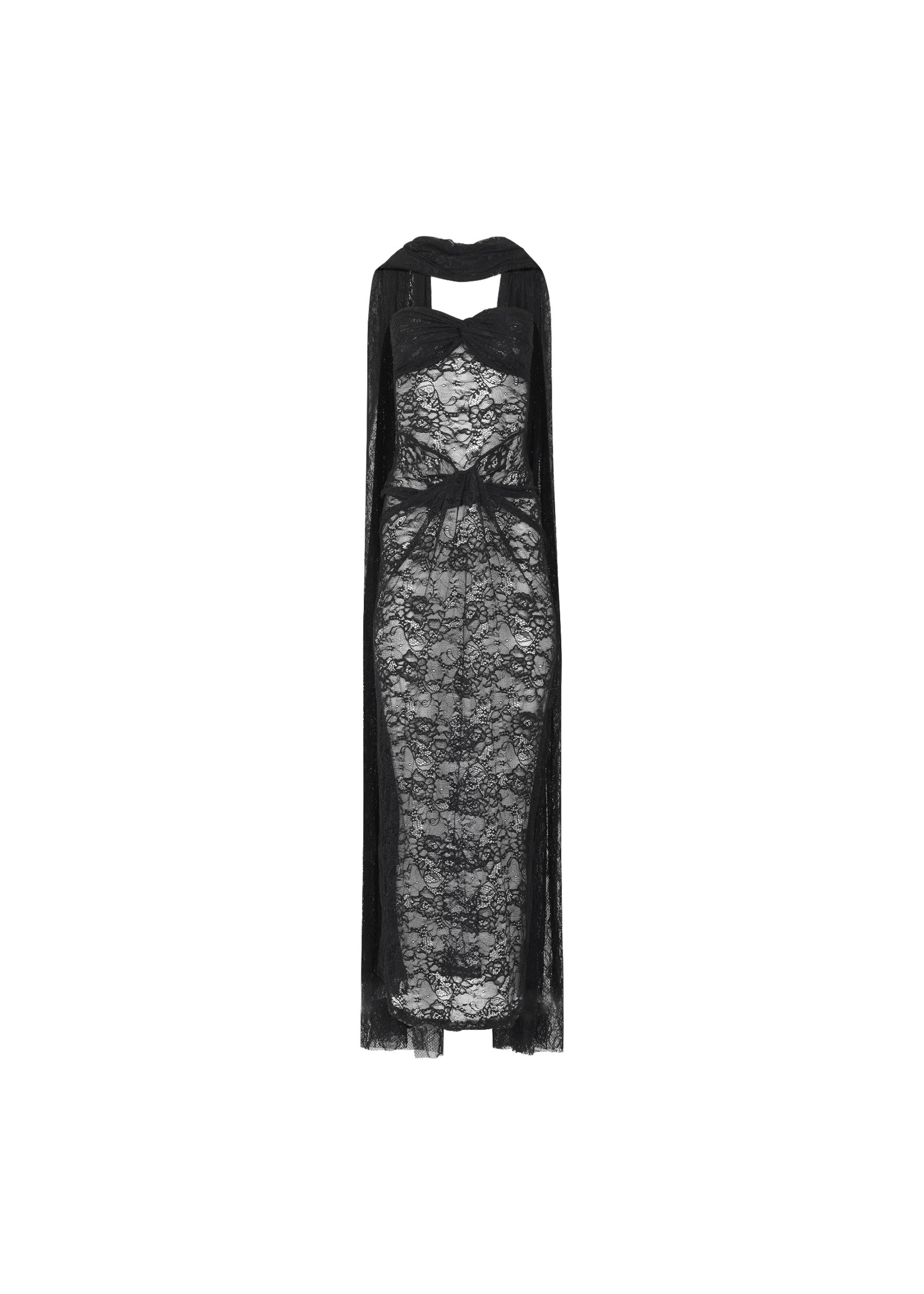 This versatile Selena lace dress transitions effortlessly from day to night. Wear it as a chic cover-up or elevate your evening look by styling it with the included lace train scarf for added drama. Featuring twist-knot details at the bust and waist, it beautifully enhances your silhouette, making it perfect for beachside soirées or glamorous events.