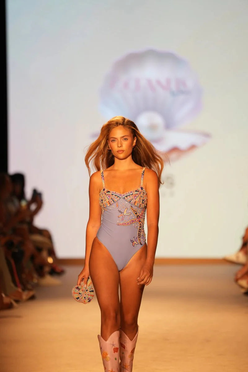 The Selene Sea Shell Swimsuit is a limited edition luxury one-piece crafted from premium Lycra. Featuring hand-beaded seashell detailing, a figure-flattering fit, and shimmering accents, this designer swimsuit exudes glamour. Perfect for beach holidays, poolside chic, and resort wear, complete the look with an elegant cover-up.