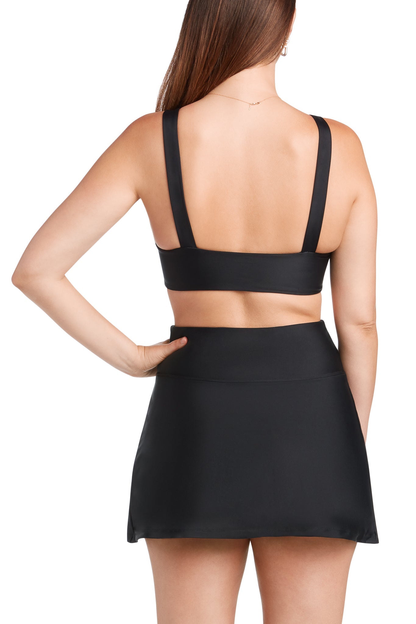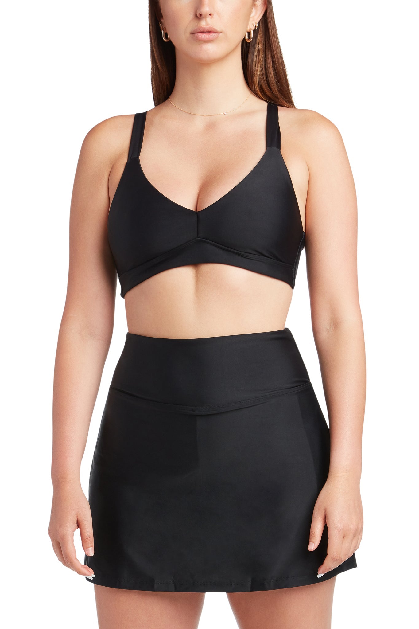 Suit your strength and suit your passion in the Shannon Top. This top is a more feminine take on a sports bra style top. The band below the bust offers support as do the wide straps. Wear this top under our Crystal or Camille long sleeve tops for the ultimate athletic combo.