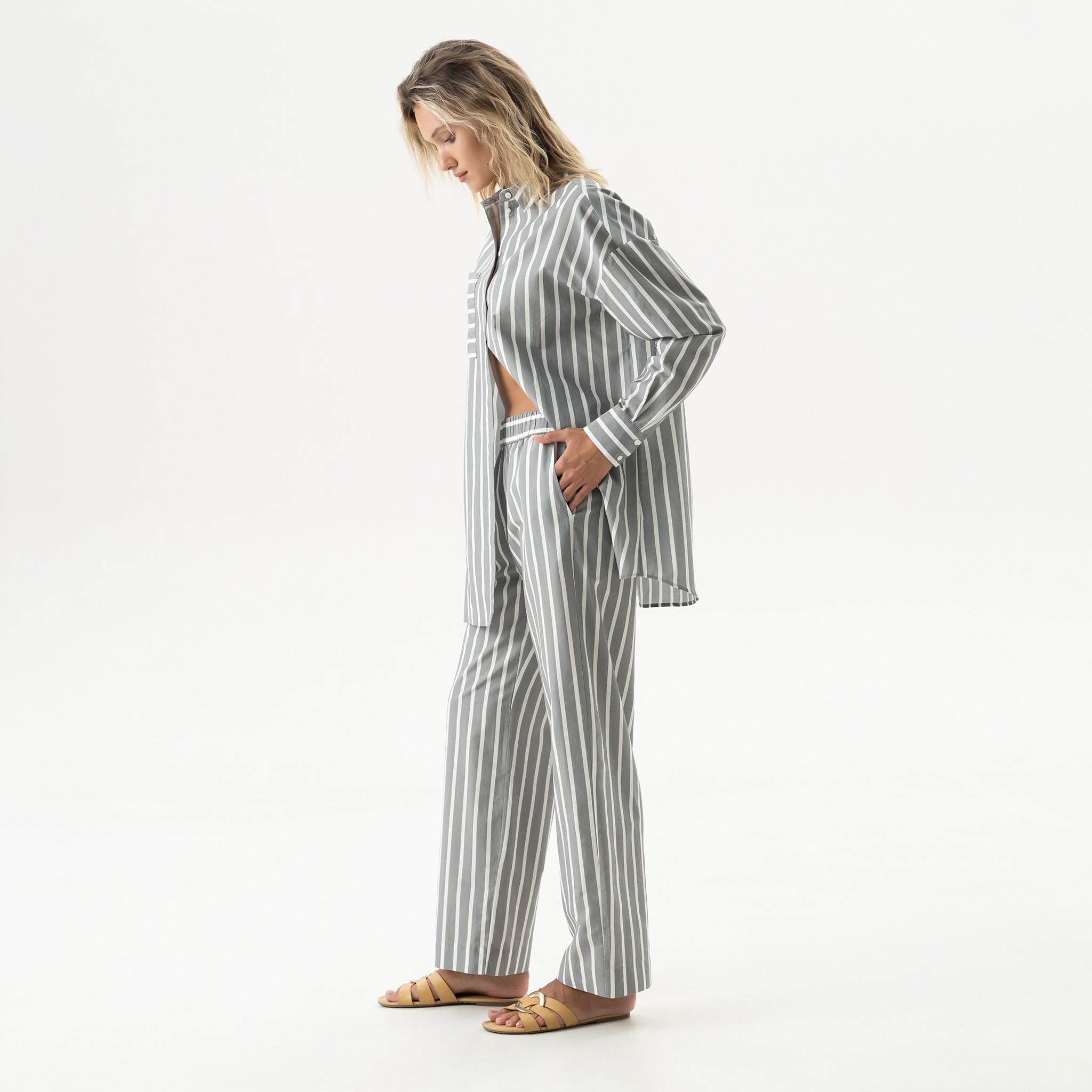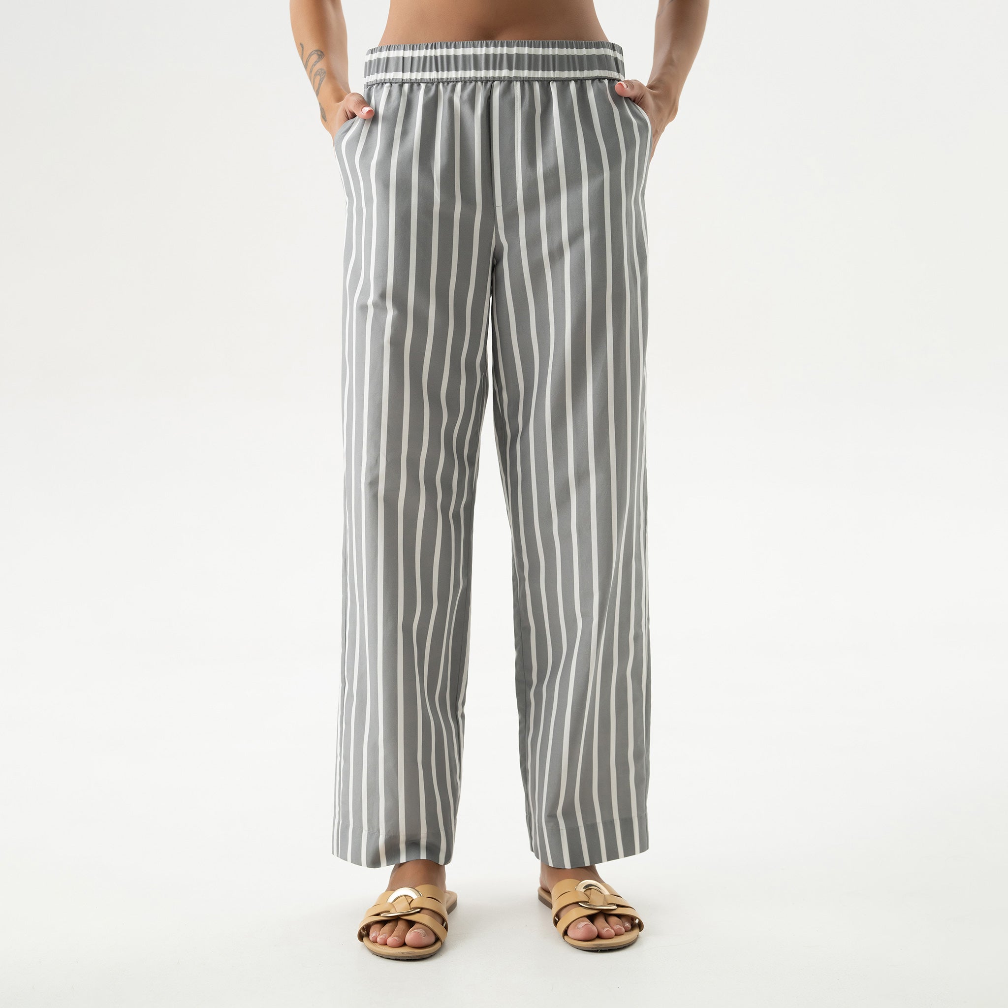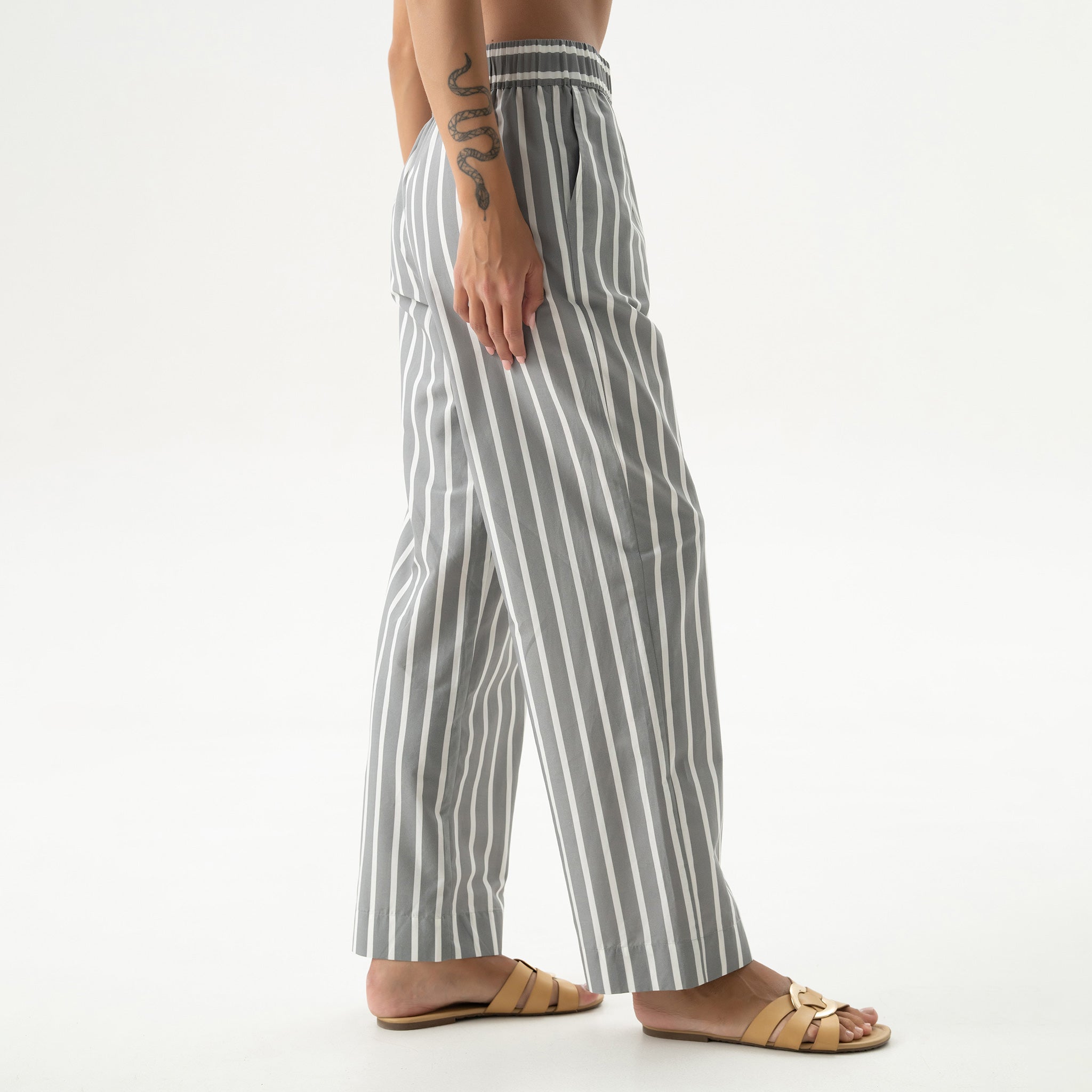 The Strapped Cotton unisex striped pants are crafted from soft, lightweight cotton, featuring a relaxed fit and an effortless, easygoing shape.